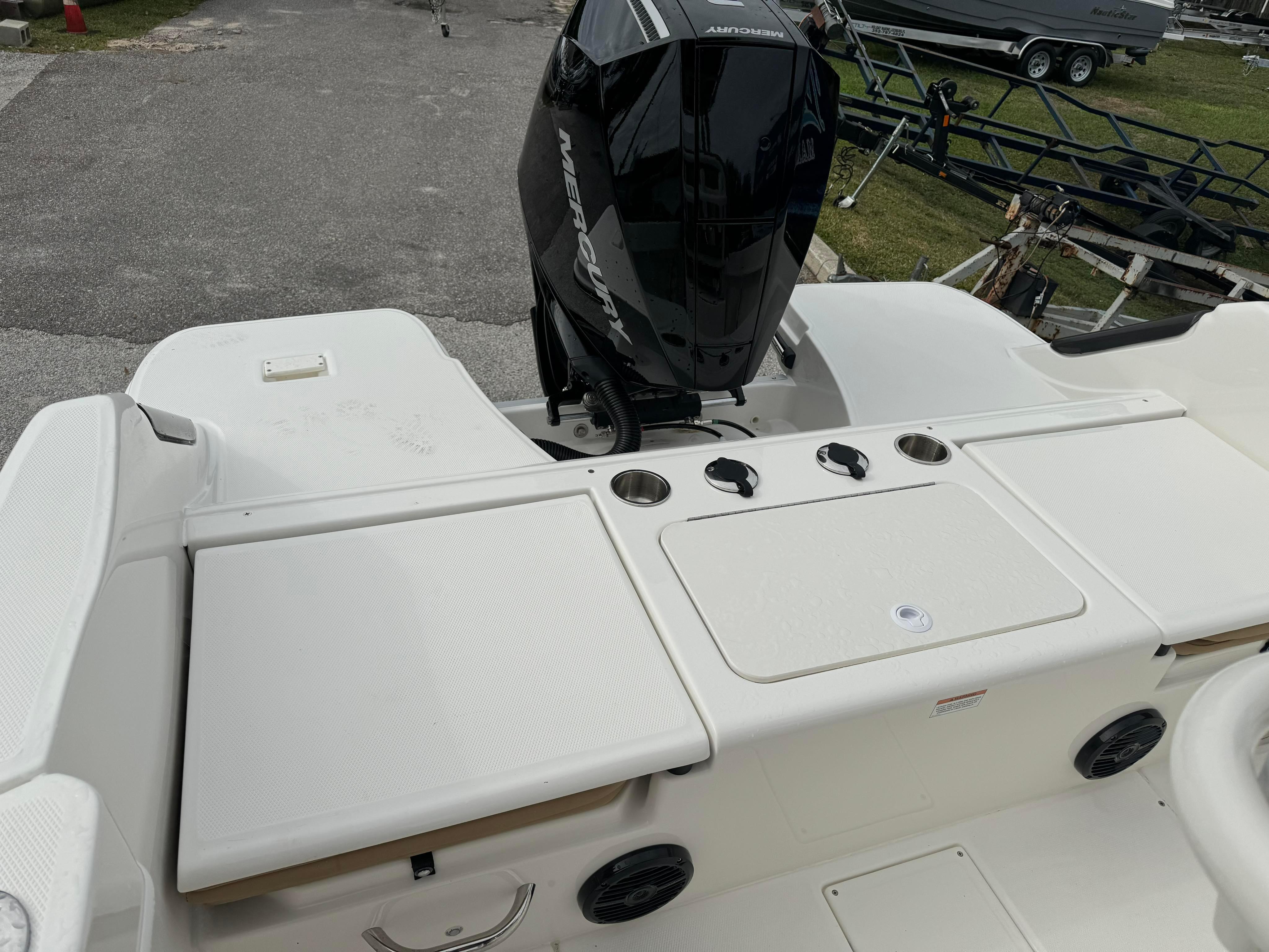 2024 T22CC Center Console EASY FINANCING AVAILABLE The 2024 T22CC Center Console combines deep-V hull performance with user-friendly features, making it the perfect boat for big water adventures. With ample room for fishing, lounging, and everything in between, this versatile boat is built for both serious anglers and recreational boaters alike. Deep V-Hull Design: The T22CC’s deep-V hull provides a smooth, dry ride even in rough waters, making every trip to your favorite fishing spot more enjoyable. Spacious Bow Area: The broad bow offers plenty of casting space for anglers and can easily be transformed into a comfortable lounge area with removable cushions, perfect for relaxing after a day on the water. Self-Bailing Cockpit: Designed with convenience in mind, the self-bailing cockpit makes cleanup quick and easy, keeping your boat ready for the next adventure. Enclosed Head Compartment: The center console features an enclosed head compartment, adding comfort and convenience for longer trips on the water. Versatile Features: With optional equipment like a ski tow pylon, the T22CC is ready for anything—from fishing to watersports. Options Include: 200HP Mercury Engine: Powered by a reliable and efficient 200HP Mercury outboard, this boat offers excellent performance for cruising, fishing, or watersports. Trailer Included: A custom-fit trailer is included, making transport and storage easy and secure. T-Top with Rail Mount Rod Holders: The T-Top provides shade and protection from the elements while featuring rail-mounted rod holders for added convenience while fishing. Power Steering: Enjoy effortless control and handling with the boat's power steering system, making maneuvering in tight spaces or rough conditions a breeze. Stainless Steel Package: This package includes premium stainless steel hardware, adding durability and a sleek, stylish finish to your boat. Interior Lighting Package: The interior lighting package enhances visibility and adds ambiance for evening cruises or early morning outings. Graphite Interior: The boat features a stylish and durable graphite interior that is both comfortable and easy to maintain. Bow Filler Cushion: The bow filler cushion creates a full lounging area in the bow, providing additional seating or a place to relax. Flip-Up Transom Seats: Flip-up transom seats add extra seating when needed, maximizing the boat's capacity for passengers. Automatic Bilge Pump: The automatic bilge pump ensures your boat stays dry and protected, automatically removing any unwanted water. NMMA Core Engine Charge: Certified for quality and safety, the NMMA core engine charge guarantees your boat meets the highest industry standards. Summary:The 2024 T22CC Center Console, powered by a 200HP Mercury engine and packed with features like a T-Top, stainless steel package, self-bailing cockpit, and a spacious bow area, is built for versatility and performance. Whether you're fishing, lounging, or enjoying watersports, this center console offers all the options you need for a great day on the water. With included features like the bow filler cushion, flip-up transom seats, and interior lighting package, this boat is designed to meet the needs of any water enthusiast.