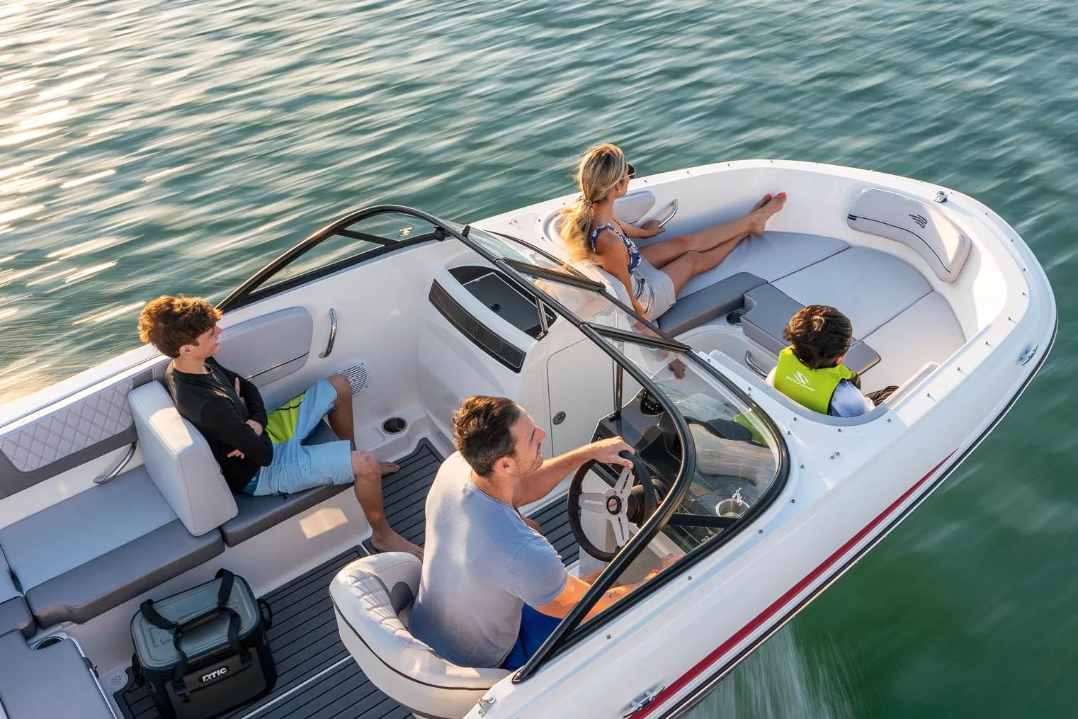The VR4 OB is easy to trailer, easy to launch, and easy to store without compromising any of the fun. The smallest of our VR Series outboard models delivers plenty of interior space thanks to our BeamForward design, which carries the fullest width farther into the bow for more comfort and capacity than traditional pointed bows. Our Aft Advantage design increases the rear seating area by allowing the swim platform to extend beyond the aft-most point of the running surface, which means more room for comforts like movable backrests for versatile seating configurations available bow wind block and optional filler cushion that together create an additional bow seat optional sun pad cushion inserts that expand the sunbathing area and plenty of convenient storage throughout BeamForward" design with high gunnels creates more passenger space, under-seat storage and safety Roomy cockpit thanks to our exclusive AftAdvantage" design Spacious bow seating converts to inviting lounge with addition of optional bow filler cushion Extra passenger seat created in bow by adding an optional bow wind block (requires bow filler cushion) Contoured backrests for comfortable lounging on the swim platform Optional sun pad inserts increase surface area for sunbathing comfort Standard sport style windshield or optional windshield with opening center panel and side wings Available water sports or fishing options to suit your family's needs