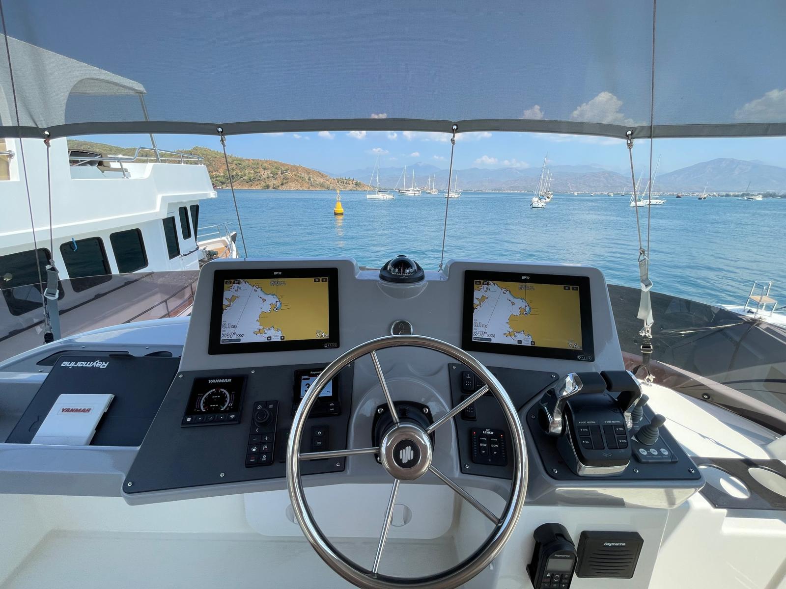 Raymarine 9 inch screens at both lower helm and Flybridge