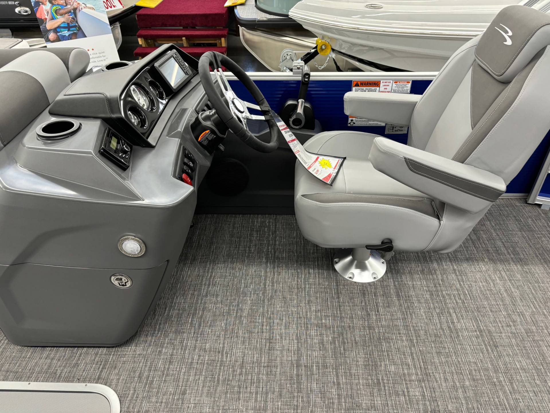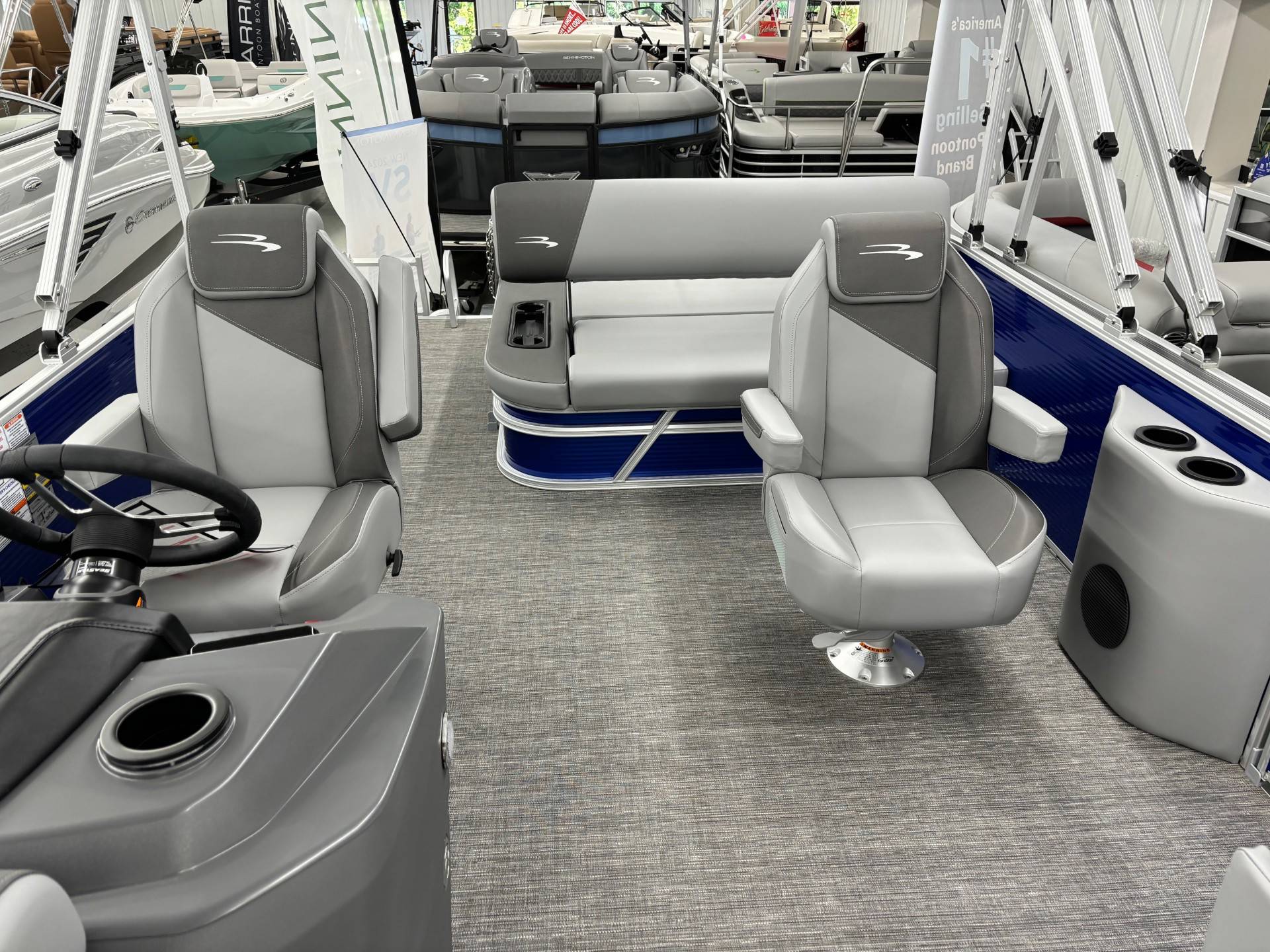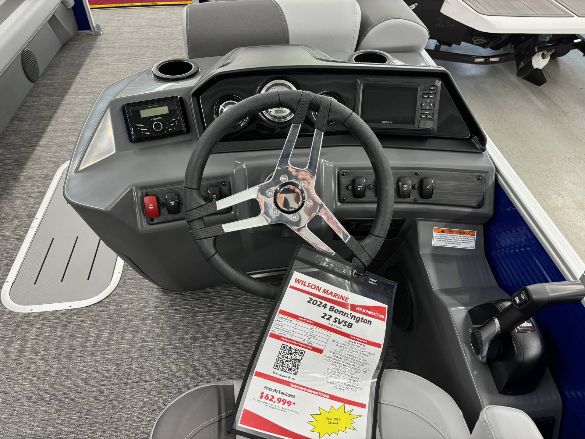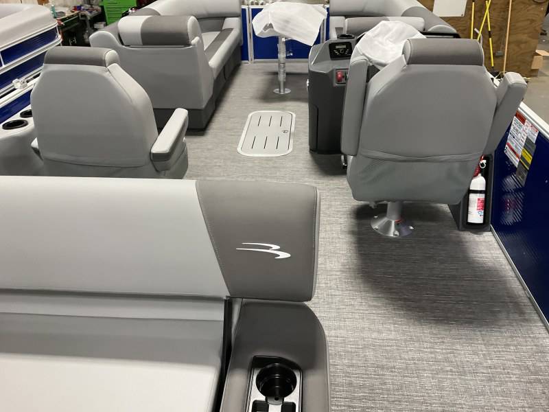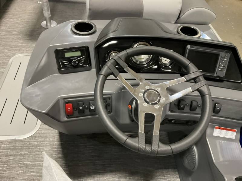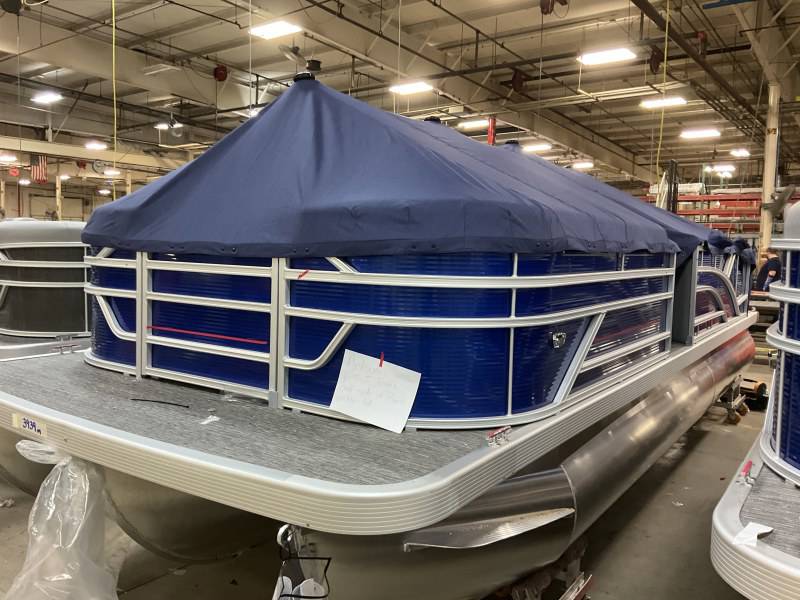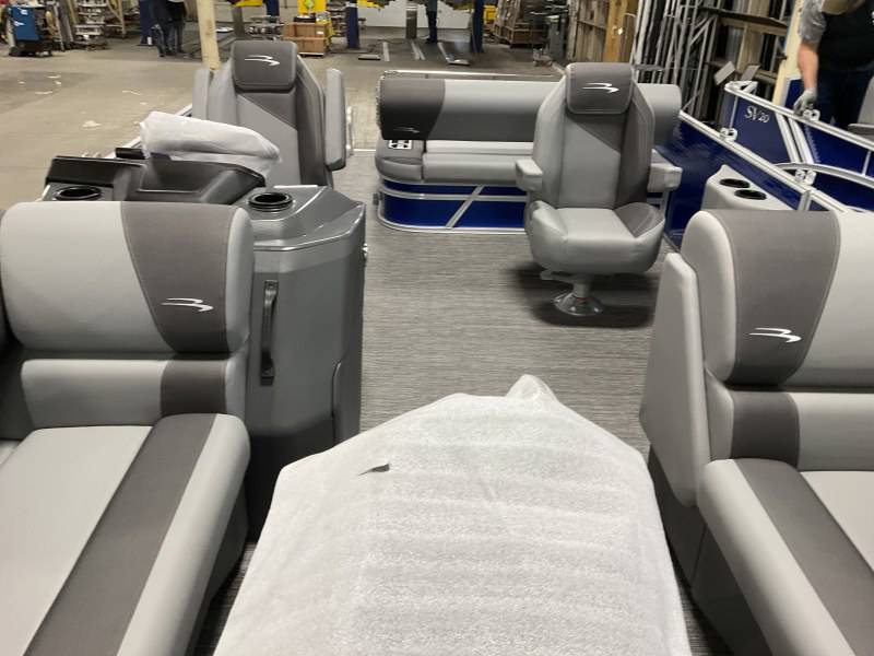 Factory Options:Yamaha F150XCPanel color- metallic luminous blueInterior- shadow gray with shadow gray/carbon accentCanvas- luminous blueTrim accent- ironwoodFlooring- grano shadow grayEchomapSwingback rail keeperCaptain & Co-captain reclinerIn floor storageSki tow
