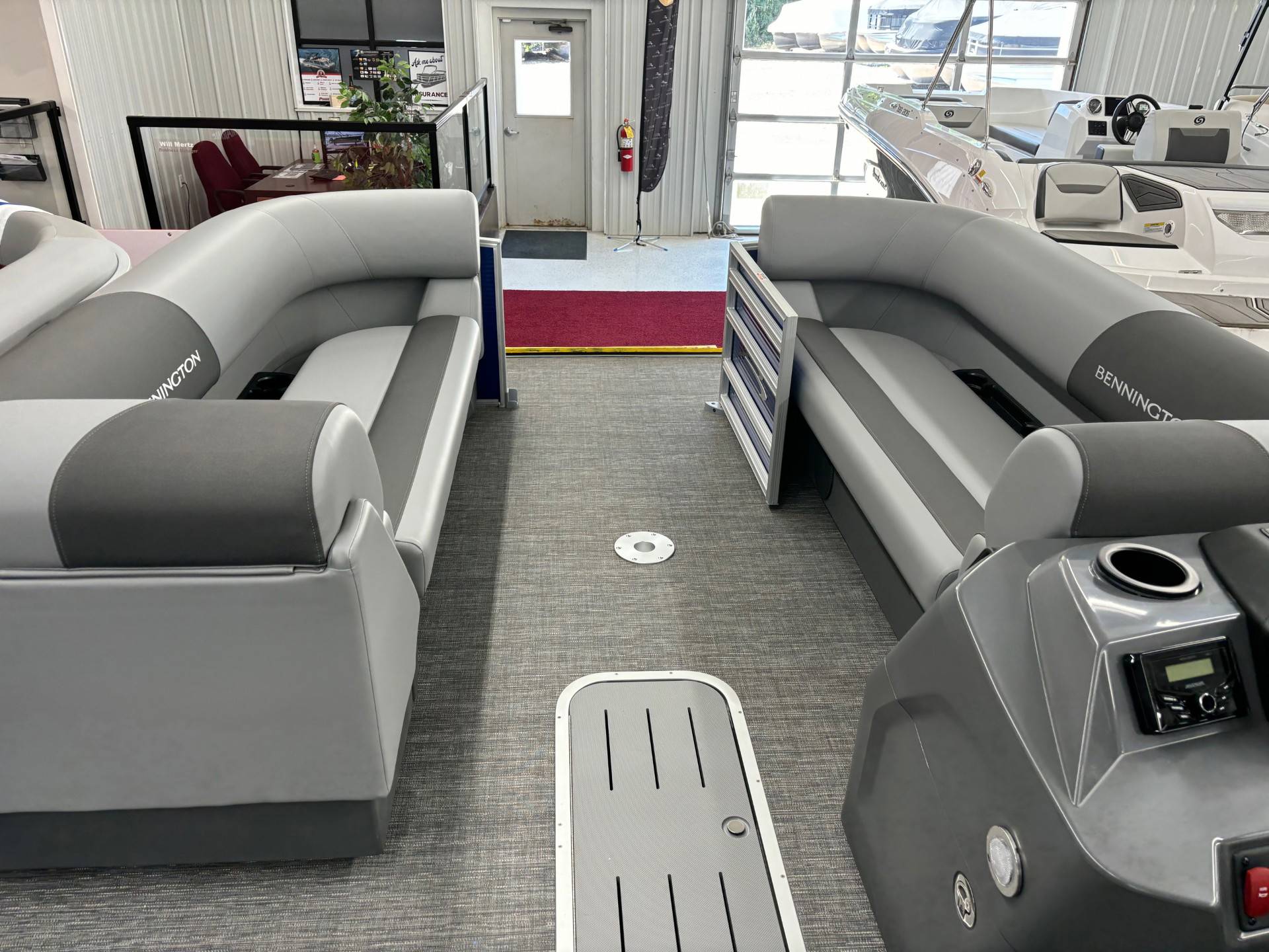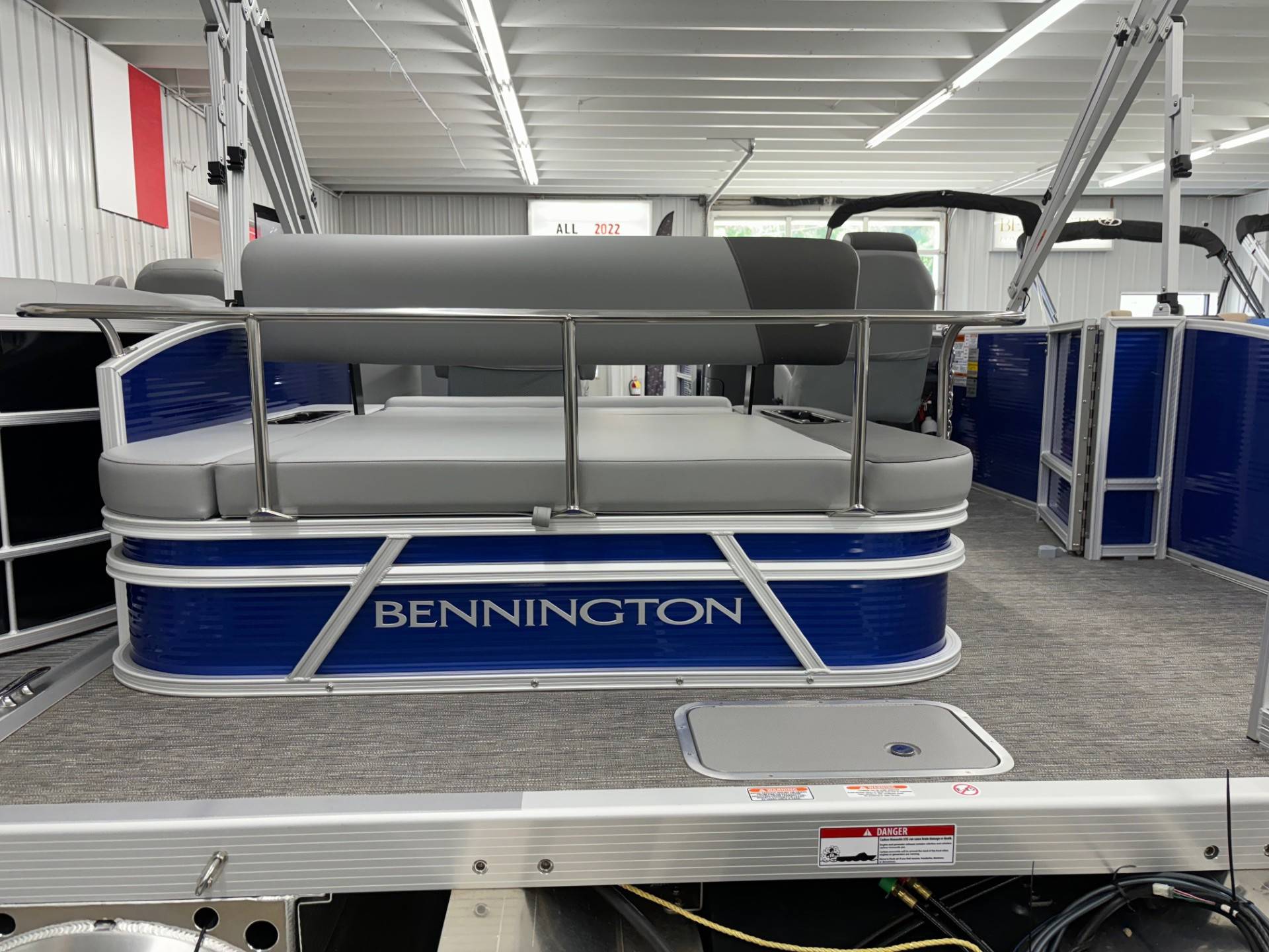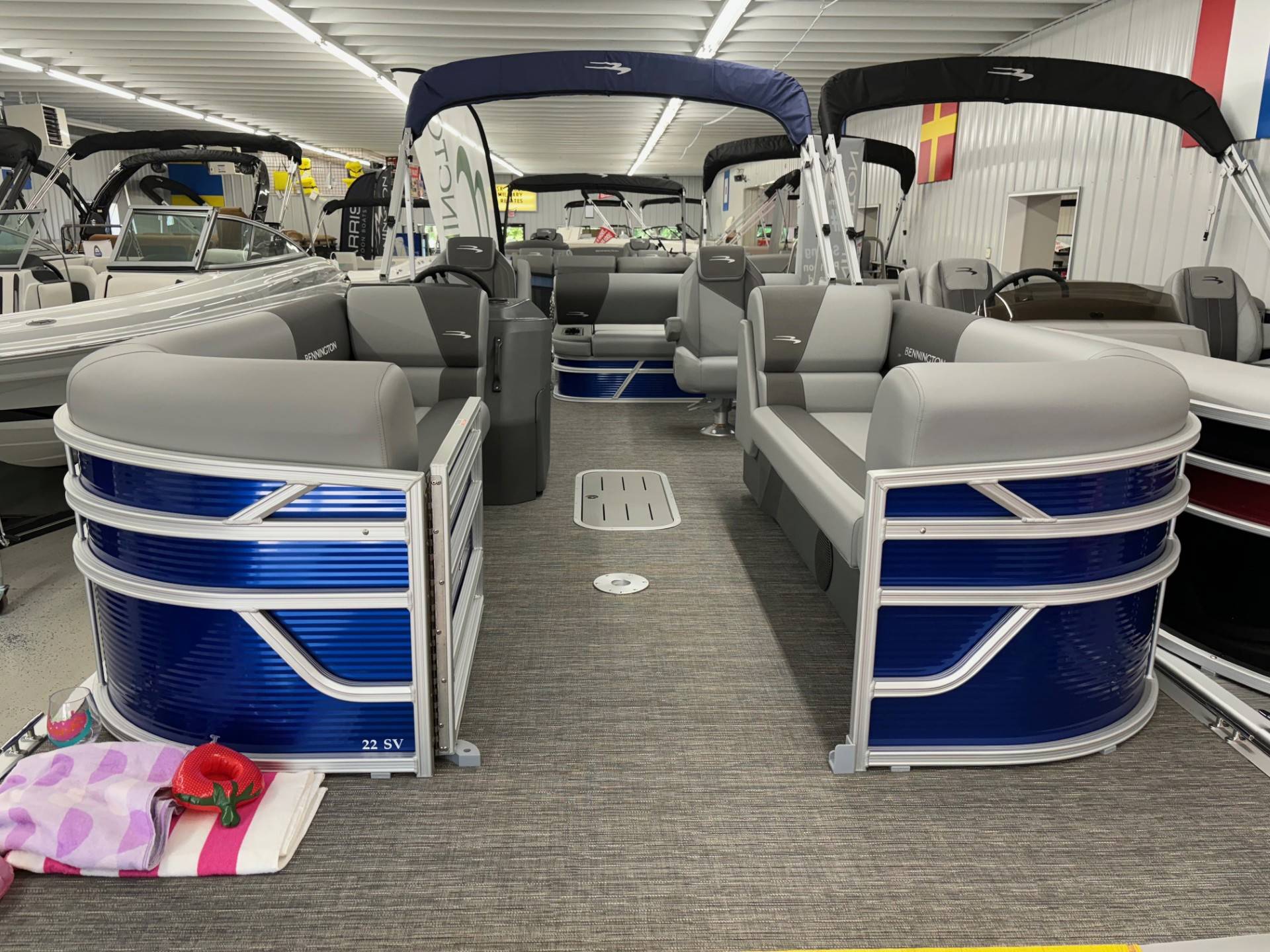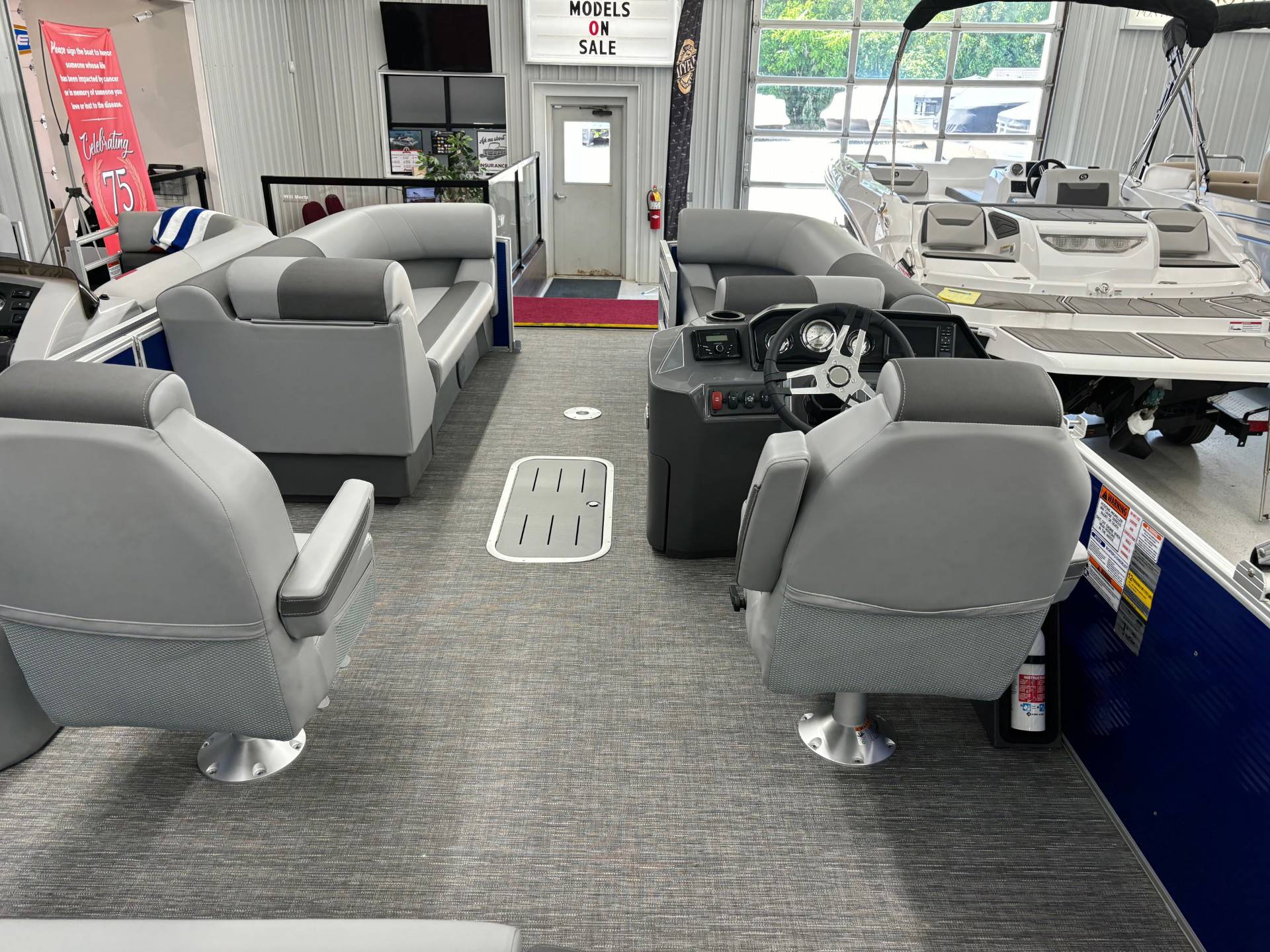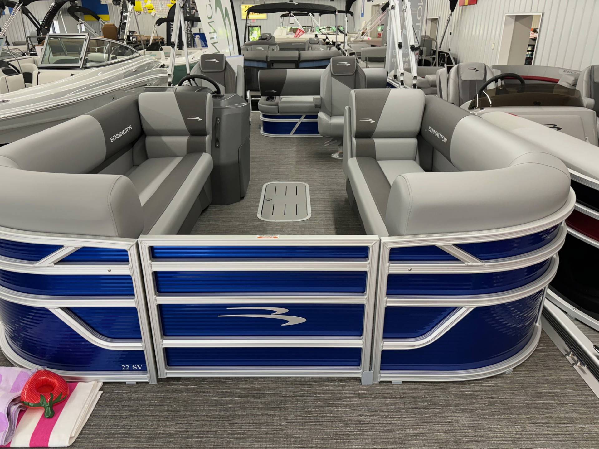 Factory Options:Yamaha F150XCPanel color- metallic luminous blueInterior- shadow gray with shadow gray/carbon accentCanvas- luminous blueTrim accent- ironwoodFlooring- grano shadow grayEchomapSwingback rail keeperCaptain & Co-captain reclinerIn floor storageSki tow