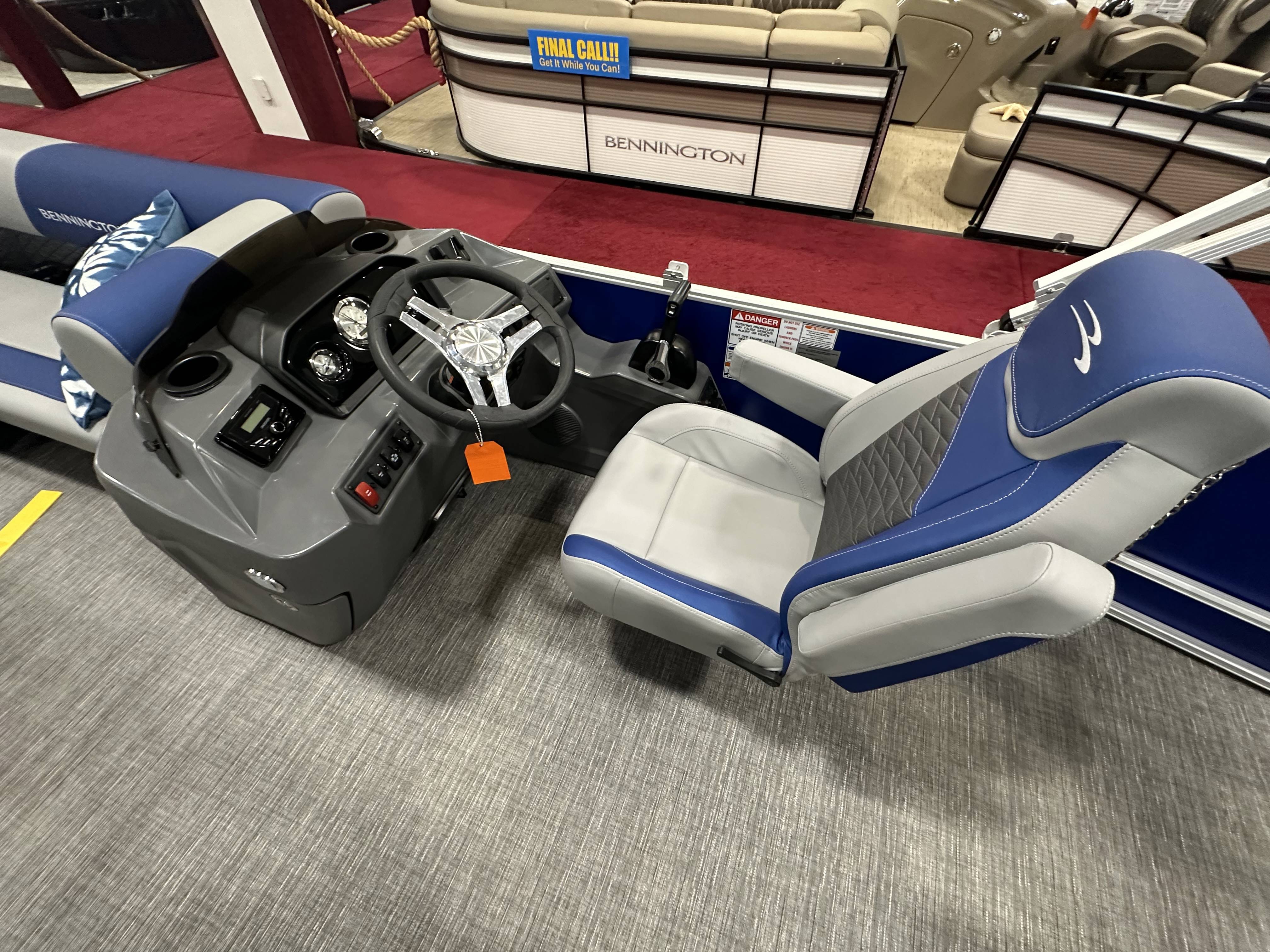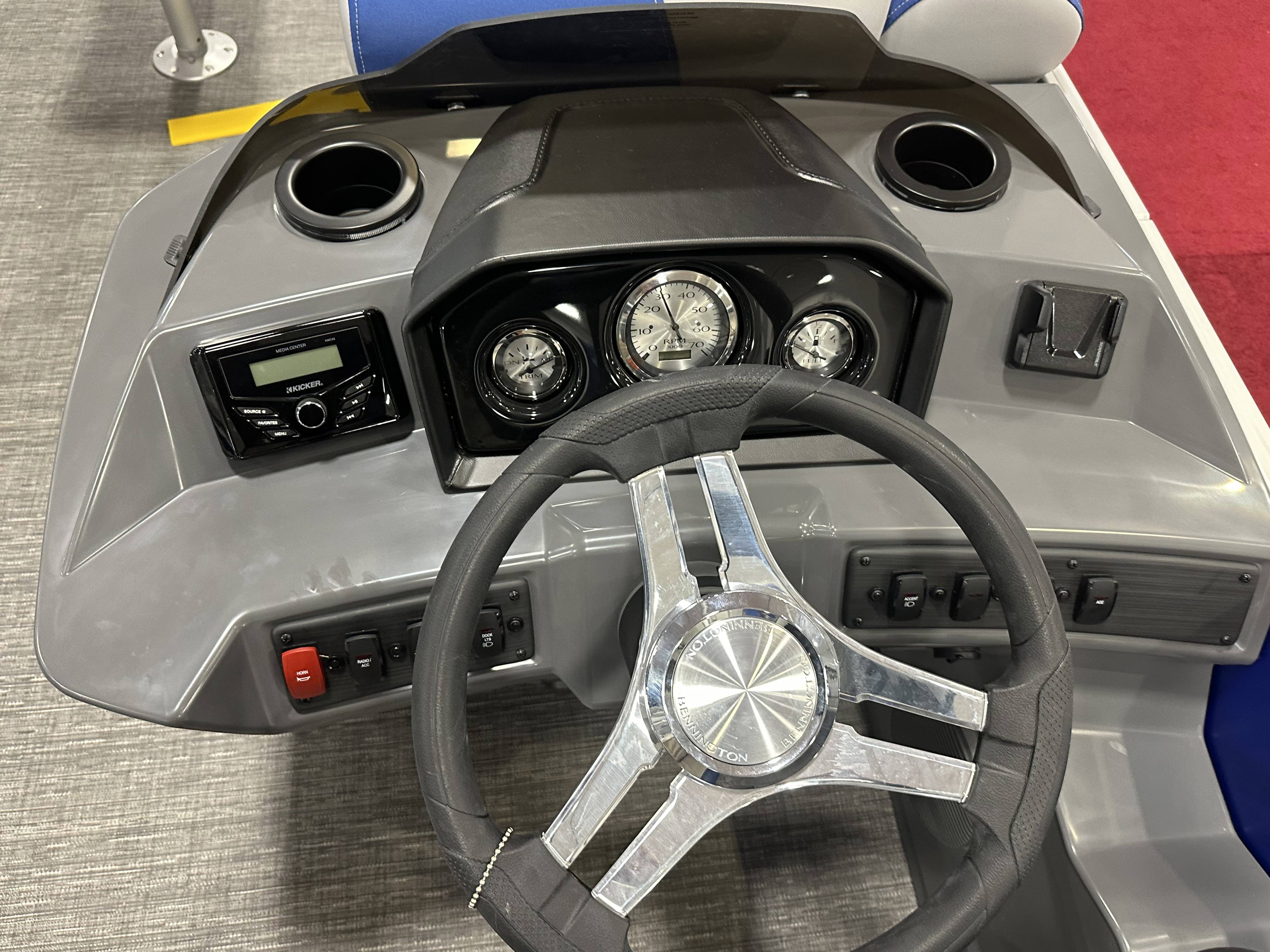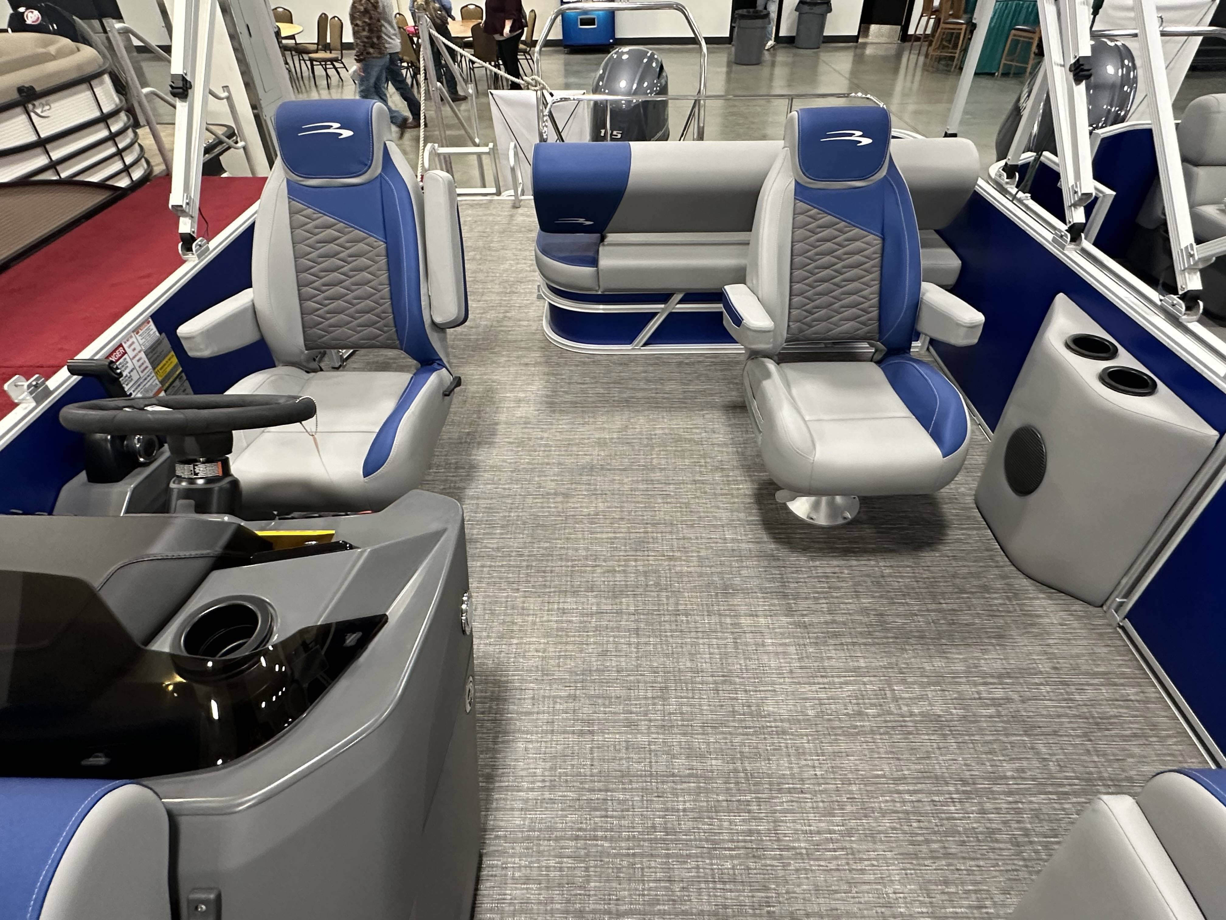 Factory Options:Yamaha F115LBExterior- satin luminous blue smooth with midnight black smooth accentInterior- shadow gray with shadow gray & luminous blue accentsCanvas- lumninous blueTrim accent- ironwoodFlooring- grano shadow grayWindshieldRail keeper for swing backCapt & co-capt recliners17" ski tow