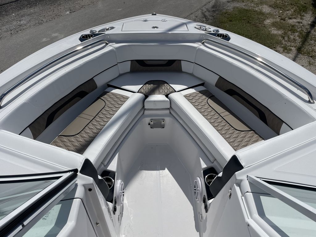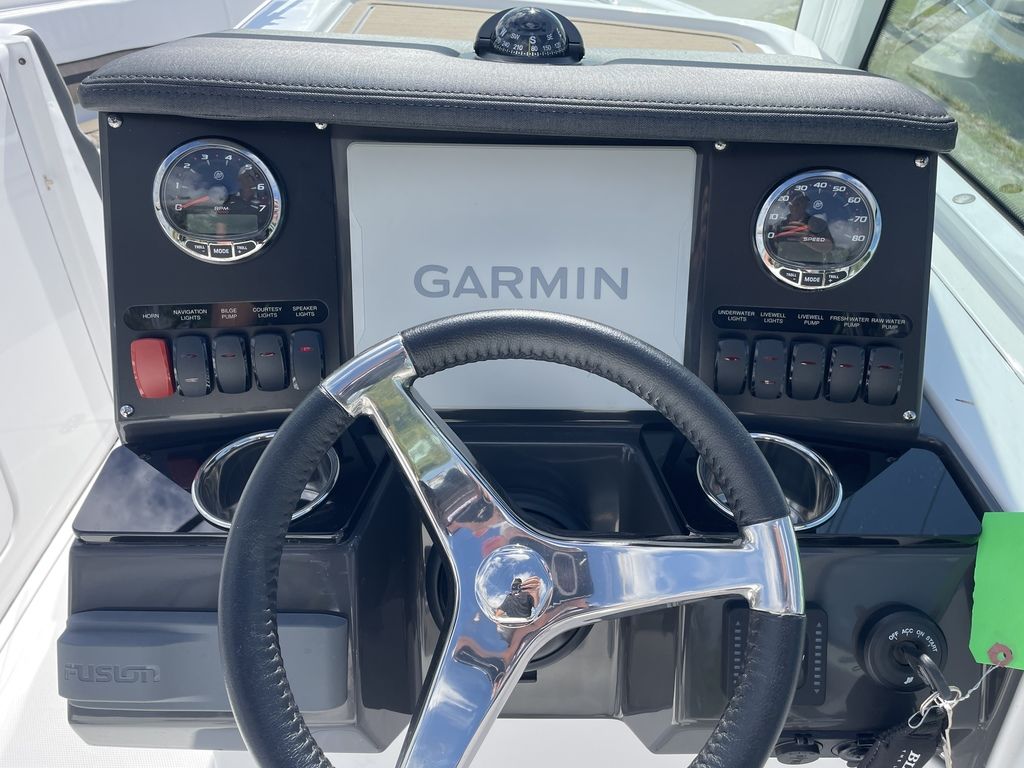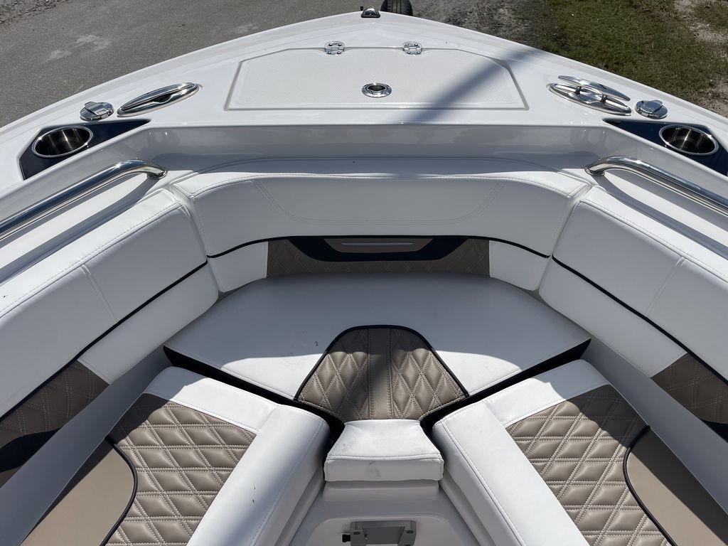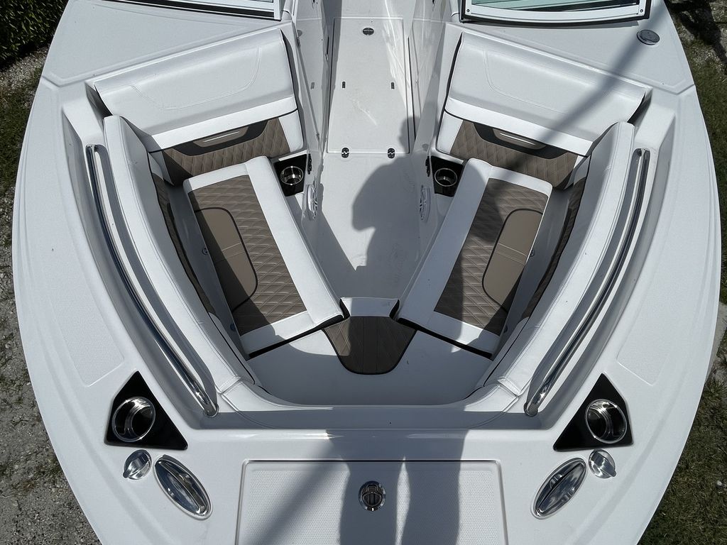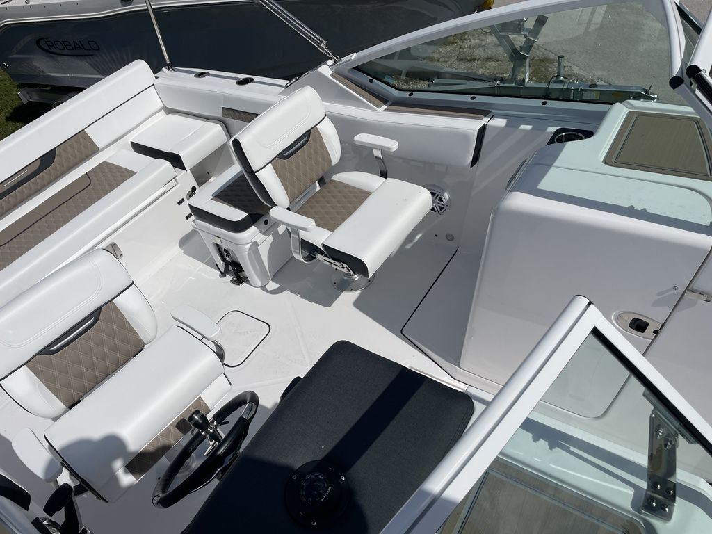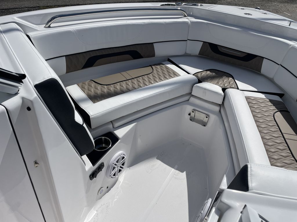- Dual Console Versatility: Spacious layout with bow seating, cockpit wet bar, and transom bench.