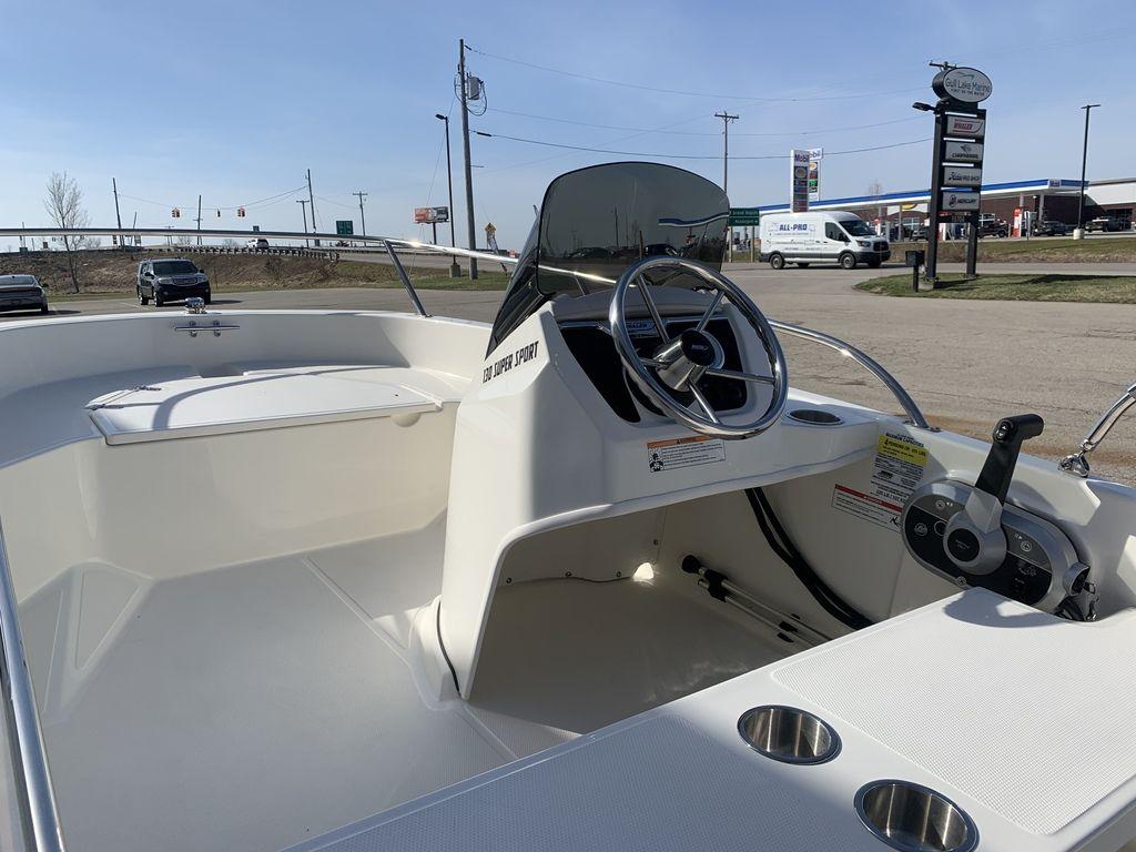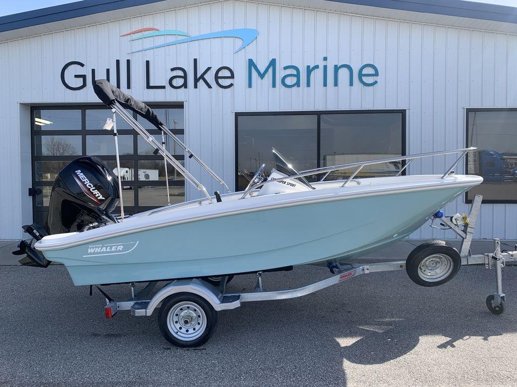 2024 Boston Whaler 130 Super Sport With its shallow draft, nimble performance and unsinkable safety you can explore even the skinniest waterways with total confidence in our 130 Super Sport. Exciting new features include lockable front-of-console storage, aft swim platforms, and a rear-accent hull color. Choose from a variety of seating configurations and options to best suit your favorite activities, from fishing, watersports, cruising, lounging and beyond. Remarkably low-maintenance and easy to operate, the 130 Super Sport is the most reliable, user-friendly and stylish skiff on the market - and the most fun! Gull Lake Marine Grand Rapids is conveniently located right off I-96 exit 19. We offer a large selection of center consoles, sport boats, pontoons, and kayaks. Our service department is here to take care of all your boating needs from start to finish. Call one of our friendly Product Specialists today for more information 616-303-0402. Gull Lake Marine has been servicing West Michigan since 1911.