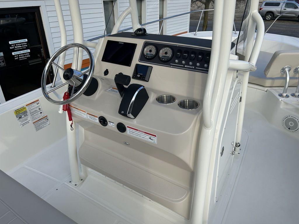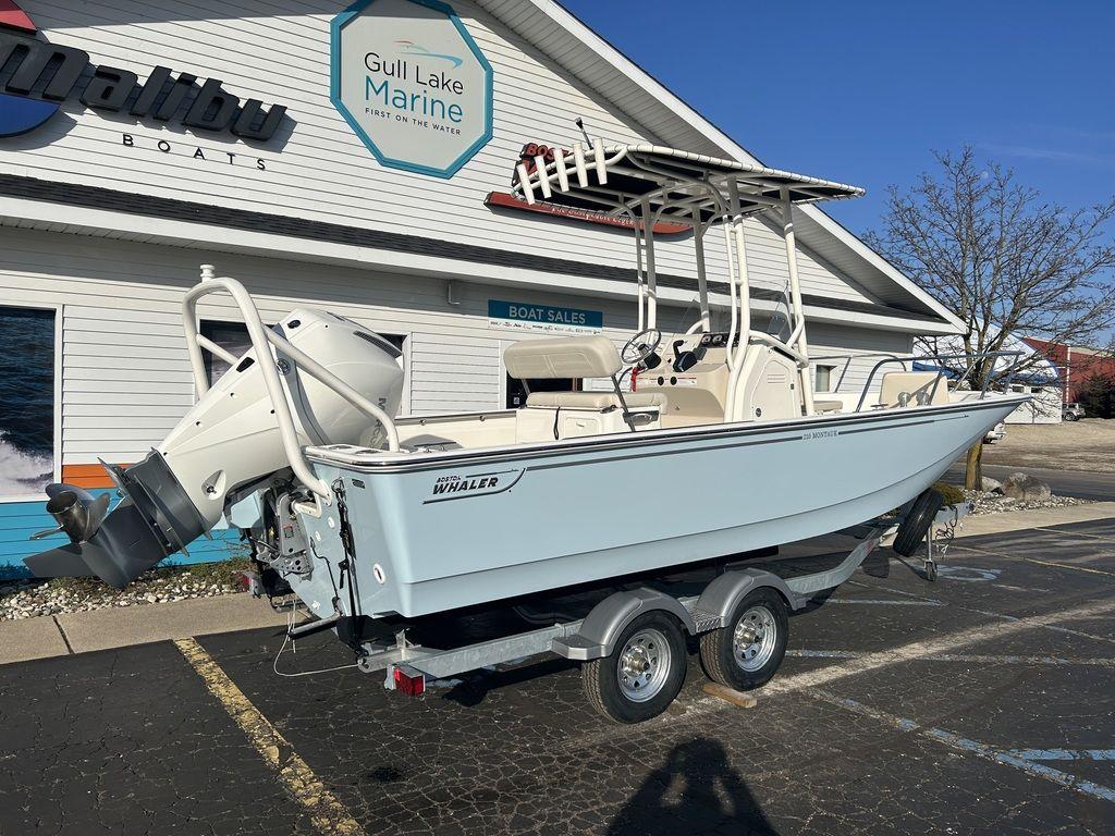 The flagship of the beloved Montauk family, the 210 Montauk offers Whaler’s legendary unsinkable hull with hose-and-go utility, spacious comfort in the center console-equipped interior, and a host of standard features that make it an inshore and nearshore classic beloved by generations of boaters. Key Features: Mercury 200HP DTS Outboard: Unmatched power and exhilarating performance.Tandem Axle Trailer: Safe and convenient transportation.Seating PackageFishing PackageSplit Bow Rail and Low Profile Stern Rail: Added safety and conveniencePowder Coated T-TopNavigation Package: Simrad 9" Multifunction ChartplotterStereo Gull Lake Marine is West Michigan’s trusted marine dealership. We have over 100 years experience of providing fun on the water. Every boat purchase includes: Free delivery within 15 miles, a thorough on-water orientation by our trained delivery captain and guaranteed service after the sale. Not finding what you’re looking for? You can view our entire inventory at GullLakeMarine.com or call us directly.