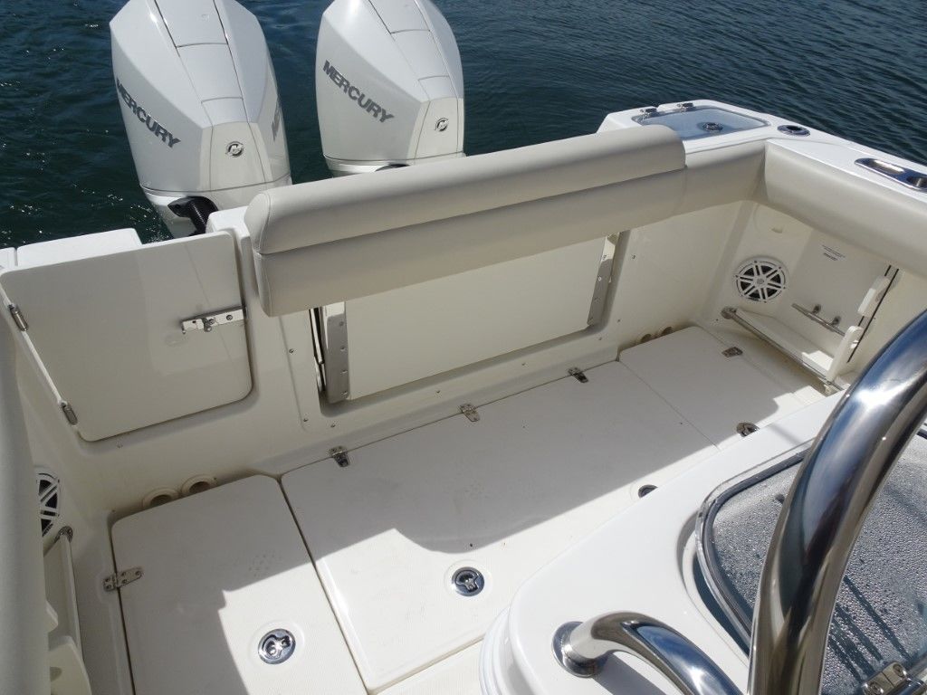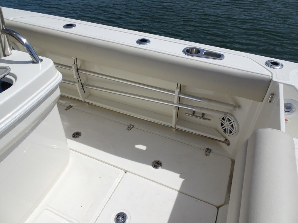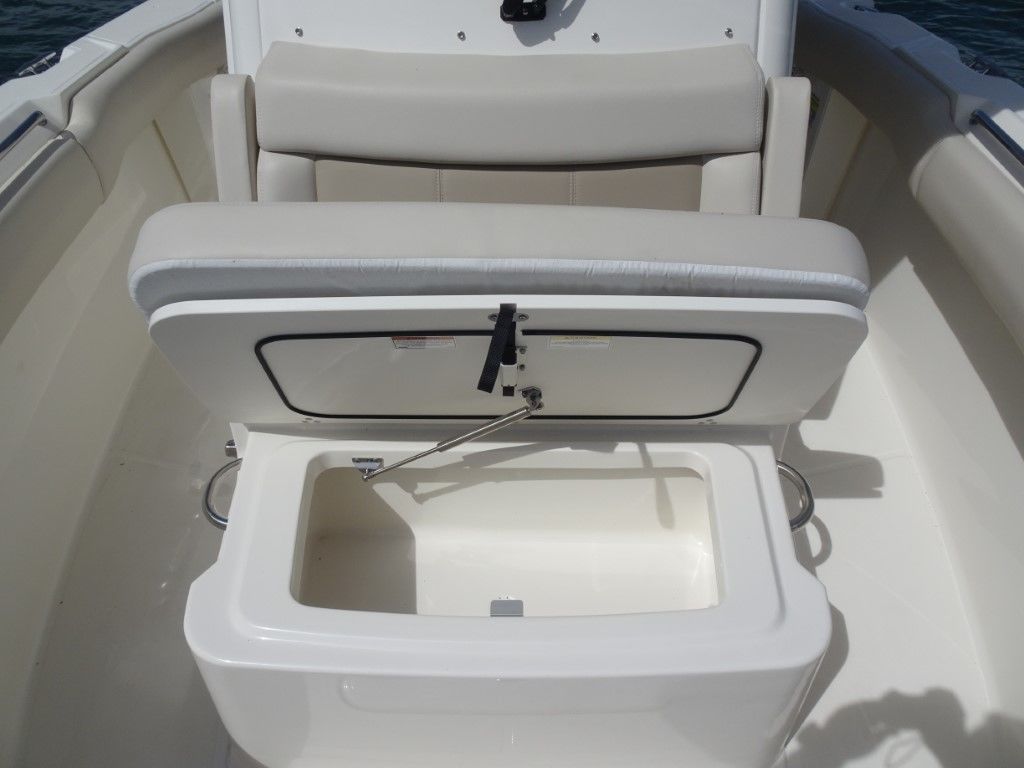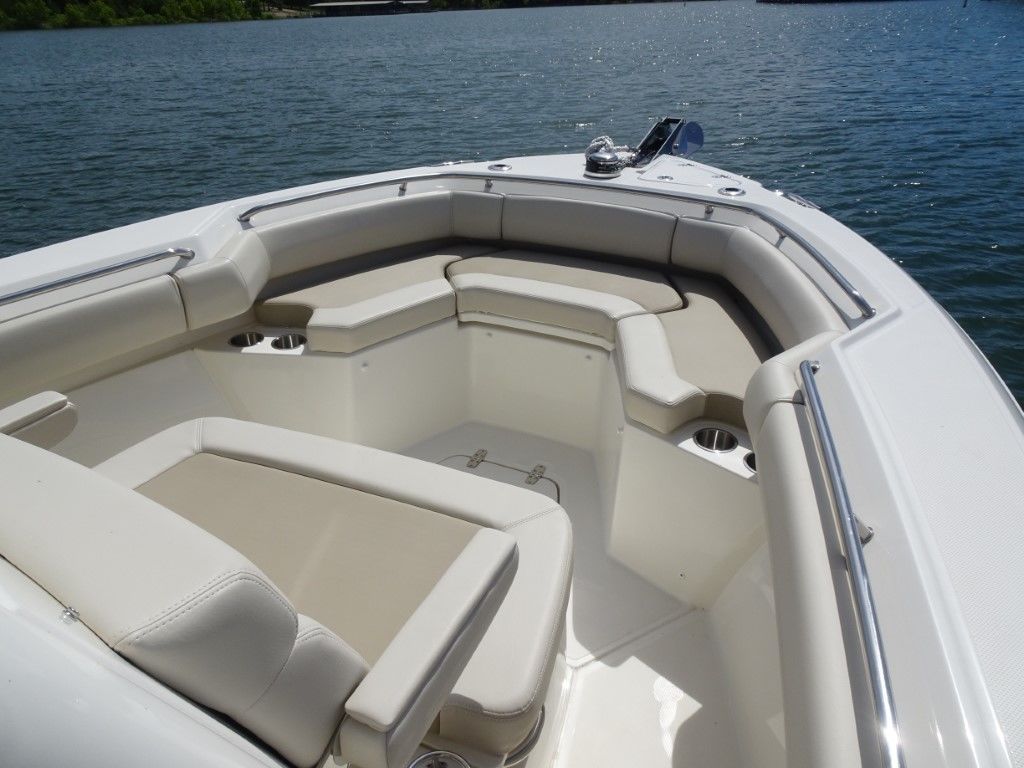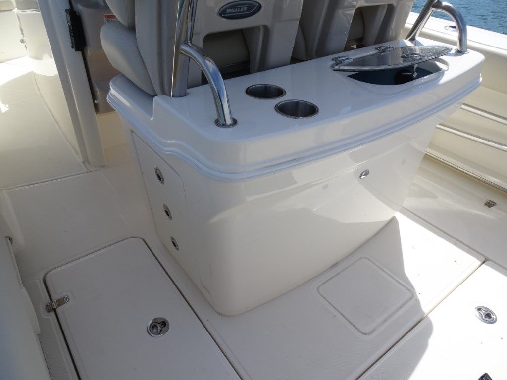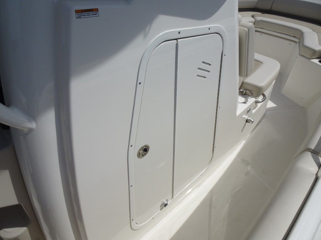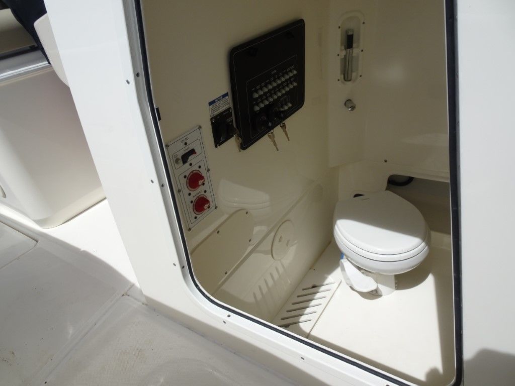 Premium Pkg (8" cross tie cleats at transom, bow cushions, cockpit line holders (4), deluxe helm seating: captain's chair with companion seat and armrests, drink holders (8) - stainless steel, forward coaming bolsters, pullout sprayer in console (under gunnel storage shelves), Vessel View 4” display (network connections to Simrad with navigation package), fender clips – stainless steel, pull-out, flush mounted (Qty 4), Vacu-Flush toilet, holding tank, overboard discharge and dockside pump-out)