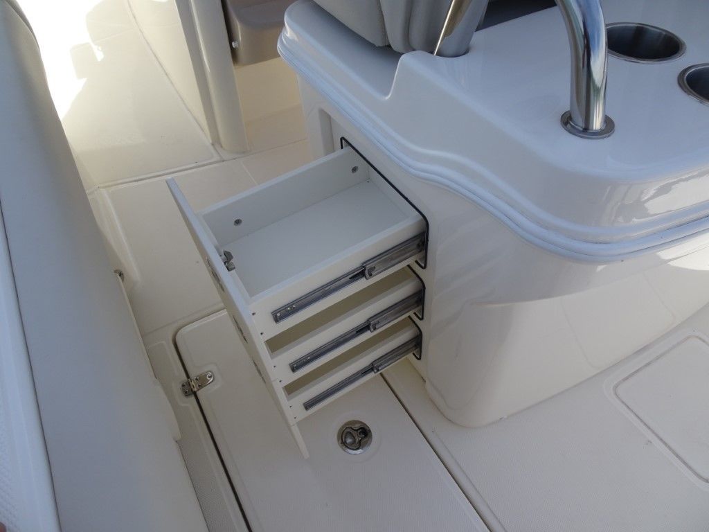 - Drink holders (4 in bow, 2 in hawse pipes, 2 in leaning post, 2 in helm)