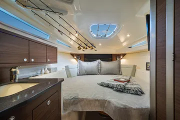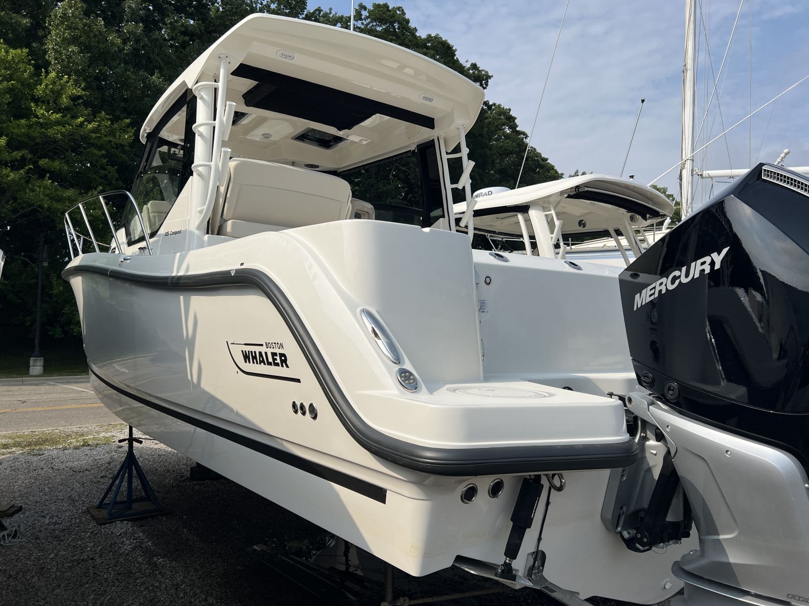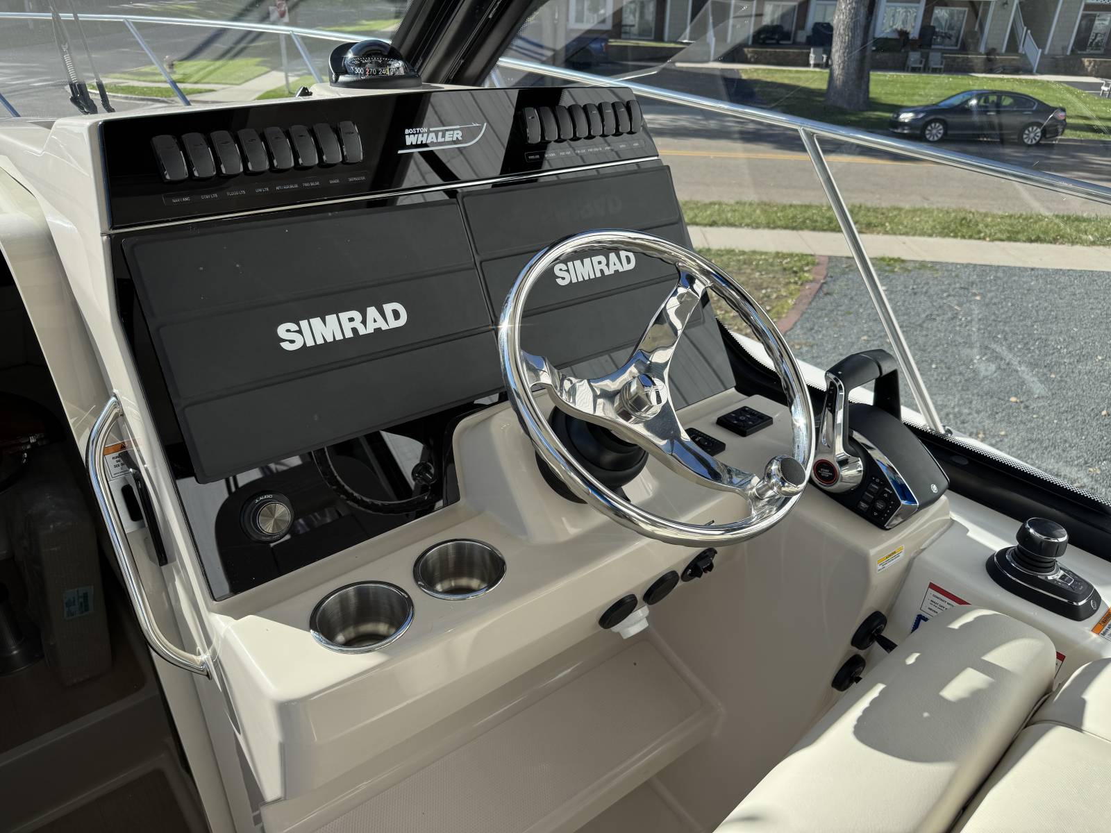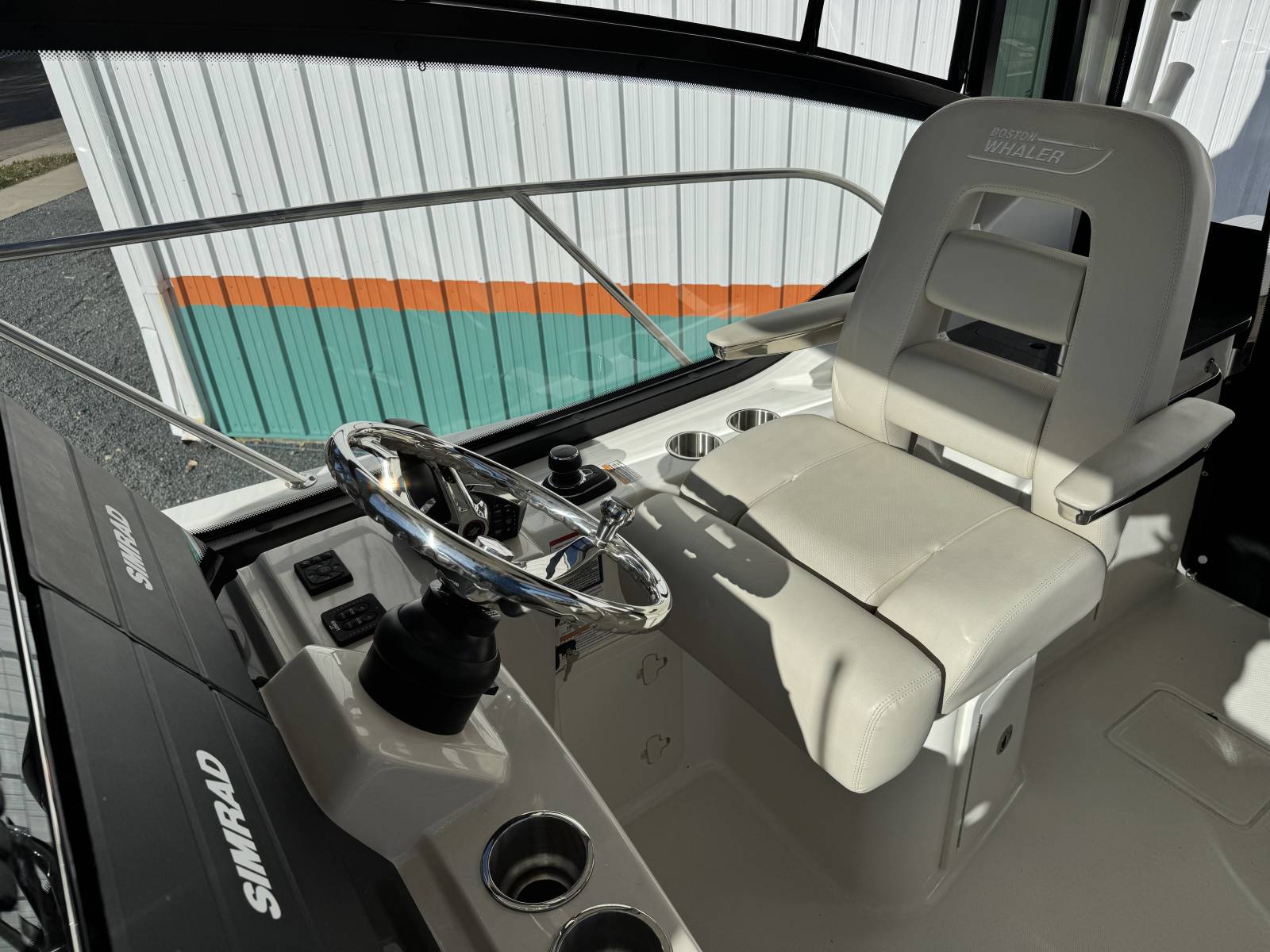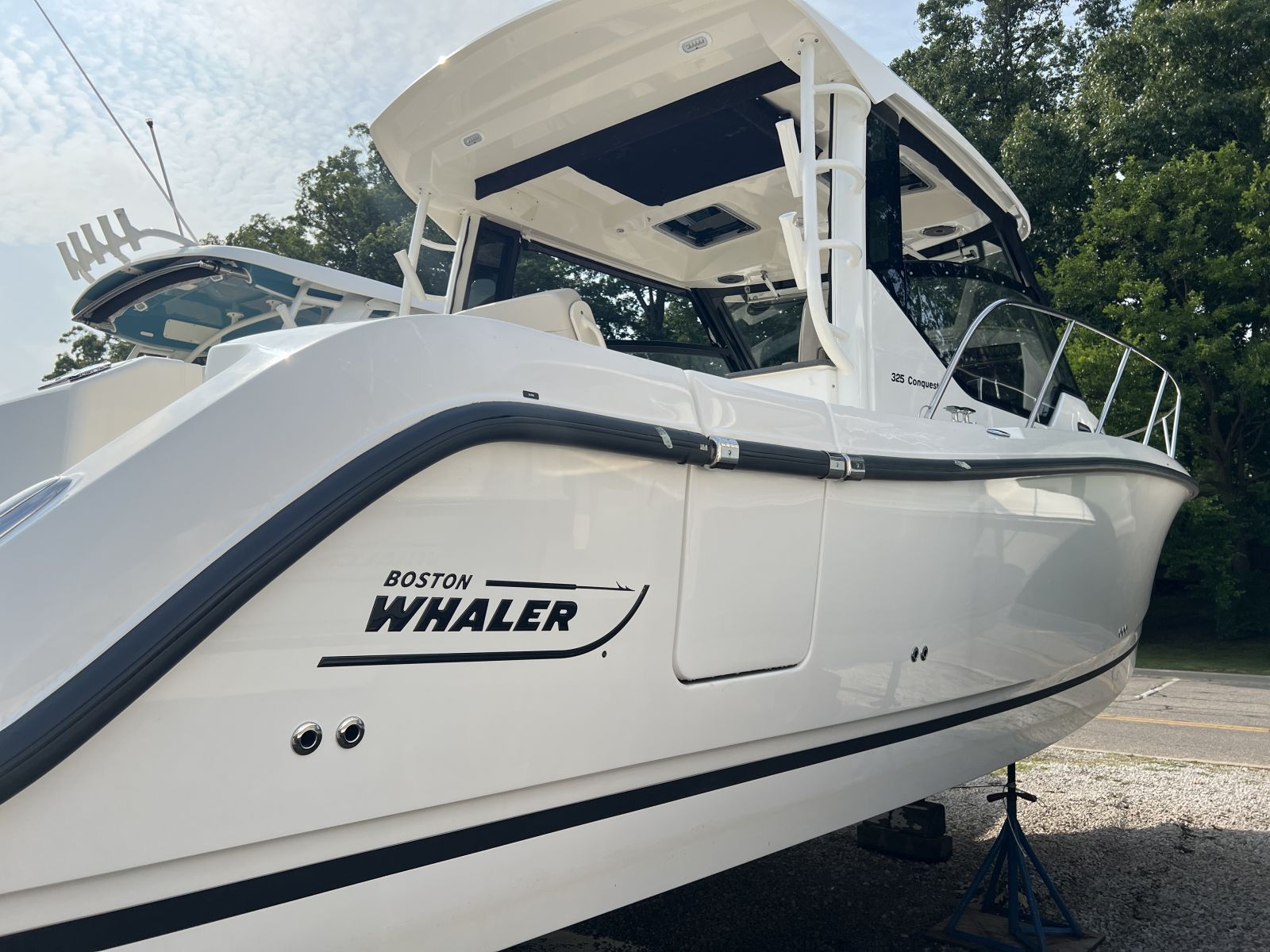 2024 Boston Whaler 325 Conquest 2024 Boston Whaler 325 Conquest, a boat that combines rugged performance with luxurious amenities, making it ideal for both serious anglers and family cruising. Powered by dual Mercury 300hp V8 engines, this boat offers the power and reliability needed for any adventure on the water. Key Features:Two 16" Simrad NSO Displays: Navigate with confidence using dual 16-inch Simrad NSO displays, providing advanced mapping, fish-finding, and system monitoring.Spotlight: Enhance your visibility during nighttime excursions with a powerful spotlight, ensuring safety and ease of navigation after dark.Simrad Radar: Stay aware of your surroundings in all weather conditions with Simrad radar, offering precise detection of nearby vessels and obstacles.Privacy & Weather Curtains: Enjoy added comfort and protection with privacy and weather curtains, allowing you to shield yourself from the elements and create a cozy, private space onboard.HardTop Latches: Secure your hardtop with durable, easy-to-use latches that ensure stability and safety in all conditions.Anchor Windlass Chain: Effortlessly anchor your boat with the reliable windlass chain, designed for smooth operation and maximum security. The 2024 Boston Whaler 325 Conquest is designed for those who seek both adventure and relaxation on the water. Whether you're setting out on a fishing expedition, cruising with family, or exploring new destinations, this boat delivers the performance, comfort, and versatility you need. GLM offers no-obligation demos, so you can experience the exceptional features of the 325 Conquest firsthand. Plus, we accept trade-ins, making it easier than ever to upgrade to this remarkable vessel. Gull Lake Marine is West Michigan’s largest Boston Whaler boat dealer with over 100 years of experience. Every boat purchase includes Free delivery within 15 miles, a thorough on-water orientation by our trained delivery captain, and guaranteed service after the sale. Contact our Sales Department today at sales@GullLakeMarine.com