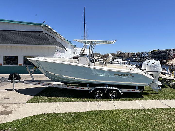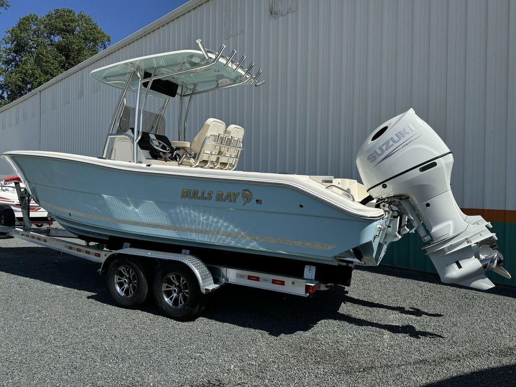2024 Bulls Bay 255CC Step up on the 2024 Bulls Bay 255CC, a center console boat that combines serious power with thoughtful design and luxurious features. Powered by twin Suzuki 200hp engines, this boat is built for those who want to take their on-water adventures to the next level, whether fishing, cruising, or exploring. Key Features:Hard Top with Radio Box & Spreaders: Stay protected from the sun while keeping your electronics and gear organized and accessible.Porta Potty: Adds convenience for longer trips, making sure you're comfortable all day on the water.Leanpost Tackle/Cooler Slide: Keep your gear organized and your drinks cool with this integrated tackle and cooler system.Recirculating Livewell: Keep your catch fresh with a dedicated livewell that recirculates water to maintain optimal conditions.JL Audio: Enjoy premium sound quality as you cruise or anchor up with a JL Audio system that keeps the good vibes going.Dual Battery Switch: Ensures reliable power management, so you can focus on enjoying your day on the water.Raw Water and Fresh Water Wash Down Kits: Keep your deck and gear clean with both saltwater and freshwater washdown options.Trim Tabs: Fine-tune your ride for maximum comfort and efficiency, no matter the conditions.Underwater Blue Lights: Light up the water beneath your boat for a cool aesthetic and added safety during nighttime outings. The 2024 Bulls Bay 255CC is designed for those who want it all—power, luxury, and versatility. GLM offers no-obligation demos so you can experience this boat's exceptional performance and features firsthand. Plus, we accept trade-ins, making it easy to upgrade to this incredible center console. Whether you’re fishing, cruising, or just enjoying a day on the water, the Bulls Bay 255CC is built to deliver an unforgettable experience!