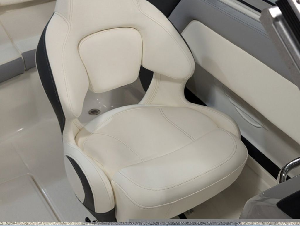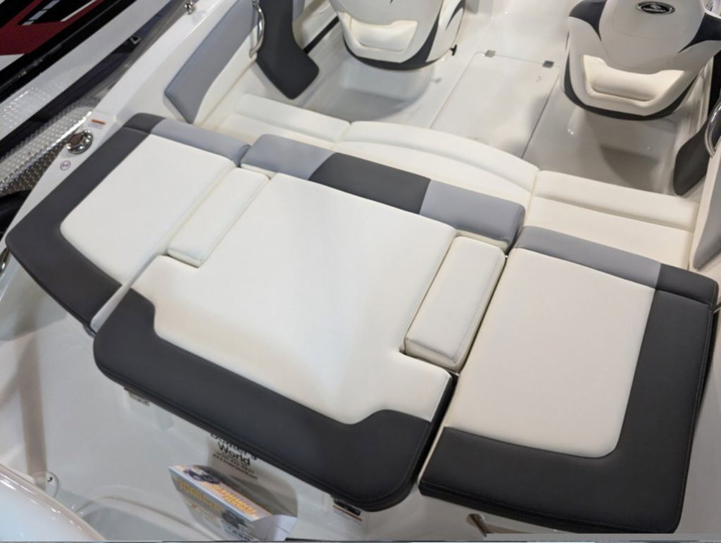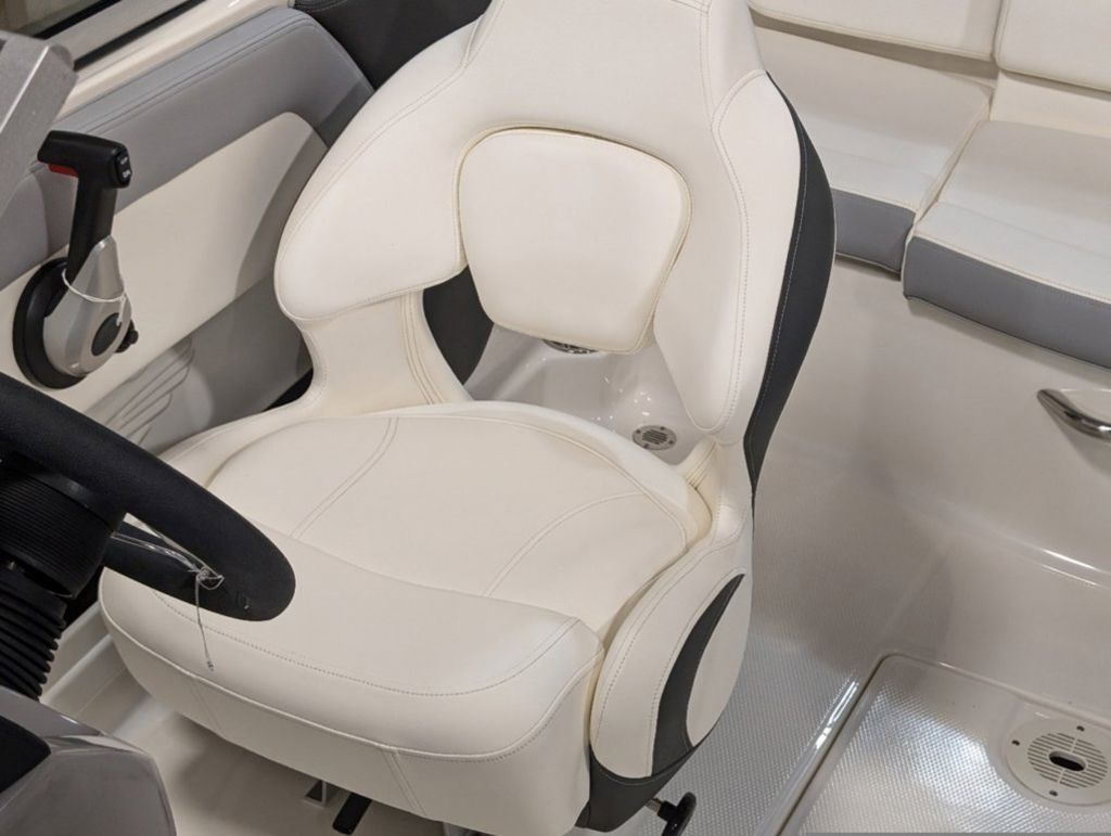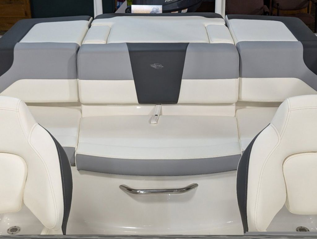 - Cockpit Layout: Two Bucket Seats (Slide and Swivel) with Logo Badging, Rear Bench Seat and Aft Hinged Sundeck with Walk-Thru and Lounge Position