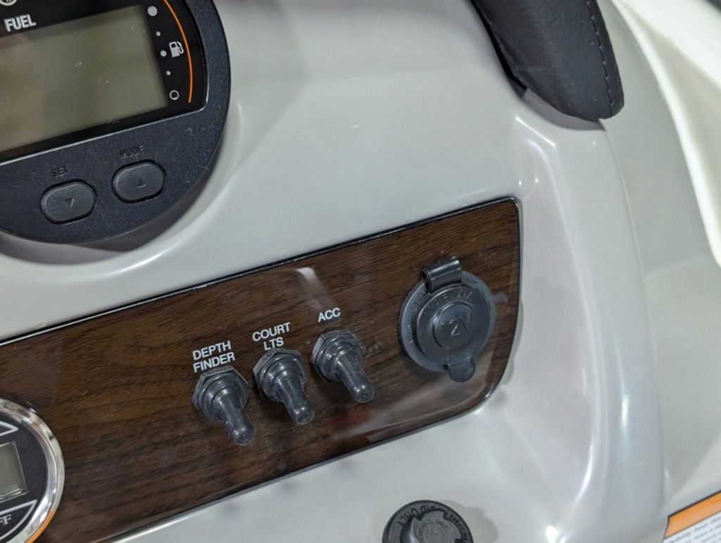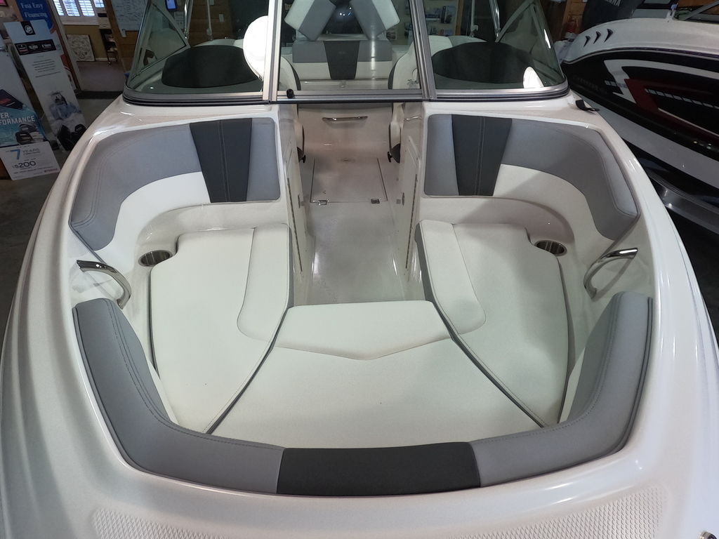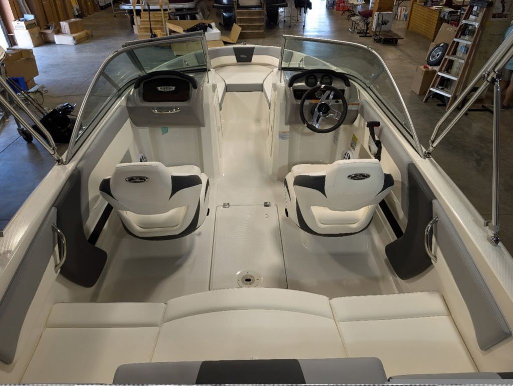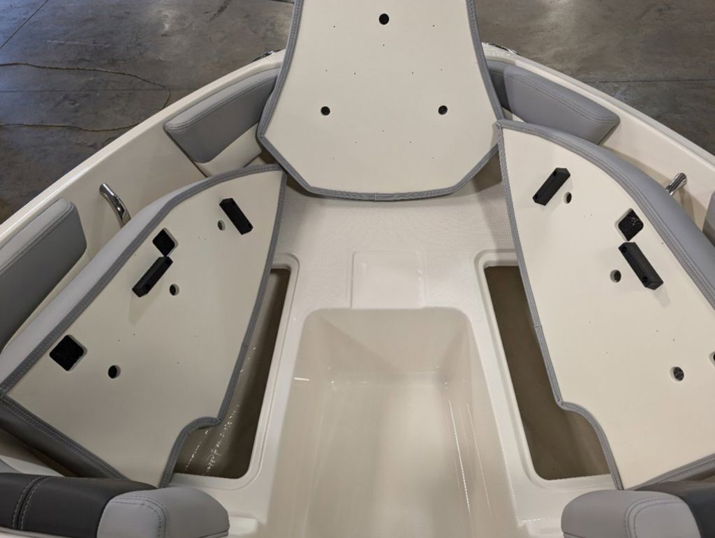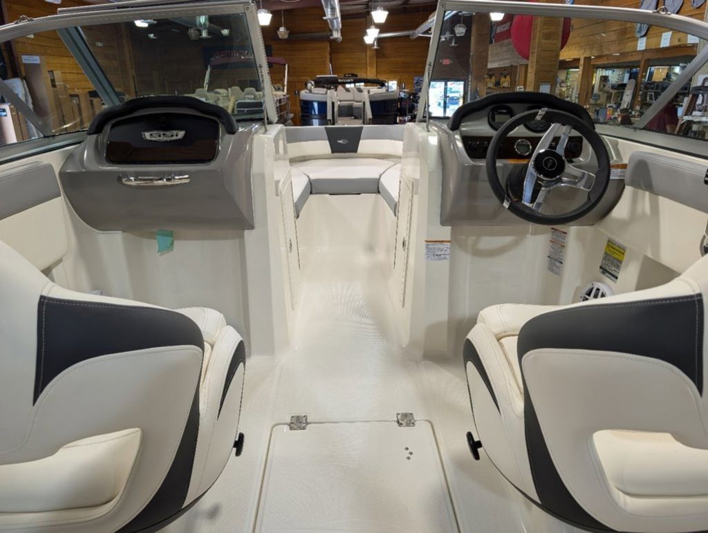 - Cockpit Layout: Two Bucket Seats (Slide and Swivel) with Logo Badging, Rear Bench Seat and Aft Hinged Sundeck with Walk-Thru and Lounge Position