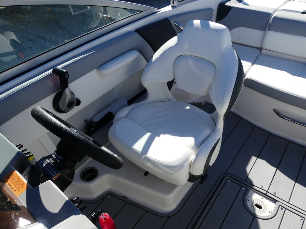- Cockpit Layout: Two Bucket Seats (Slide and Swivel) with Logo Badging, Rear Bench Seat and Aft Hinged Sundeck with Walk-Thru, Lounge Position and Aft Facing Seat