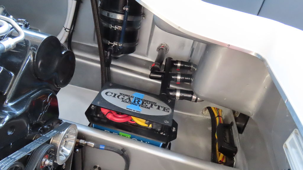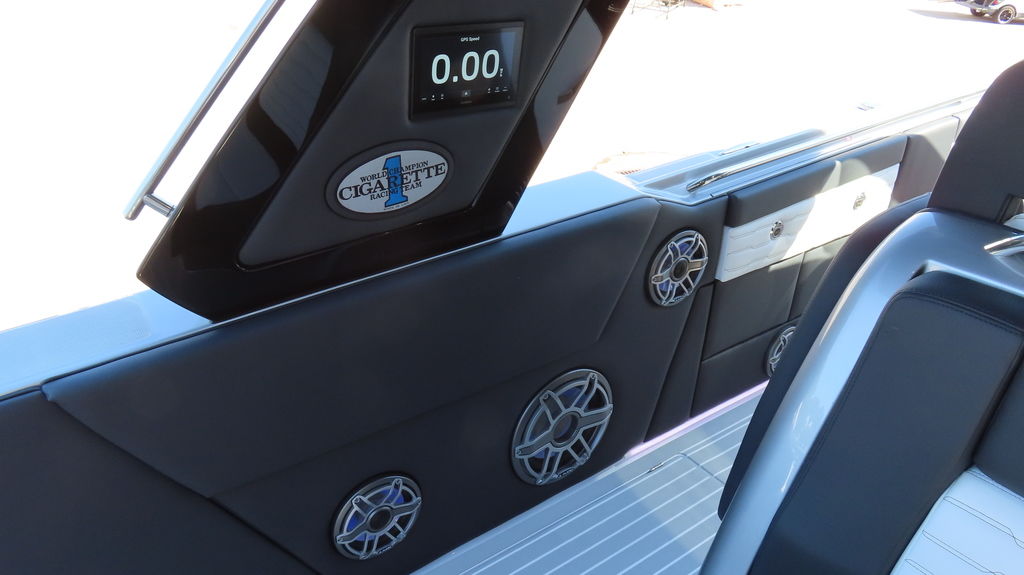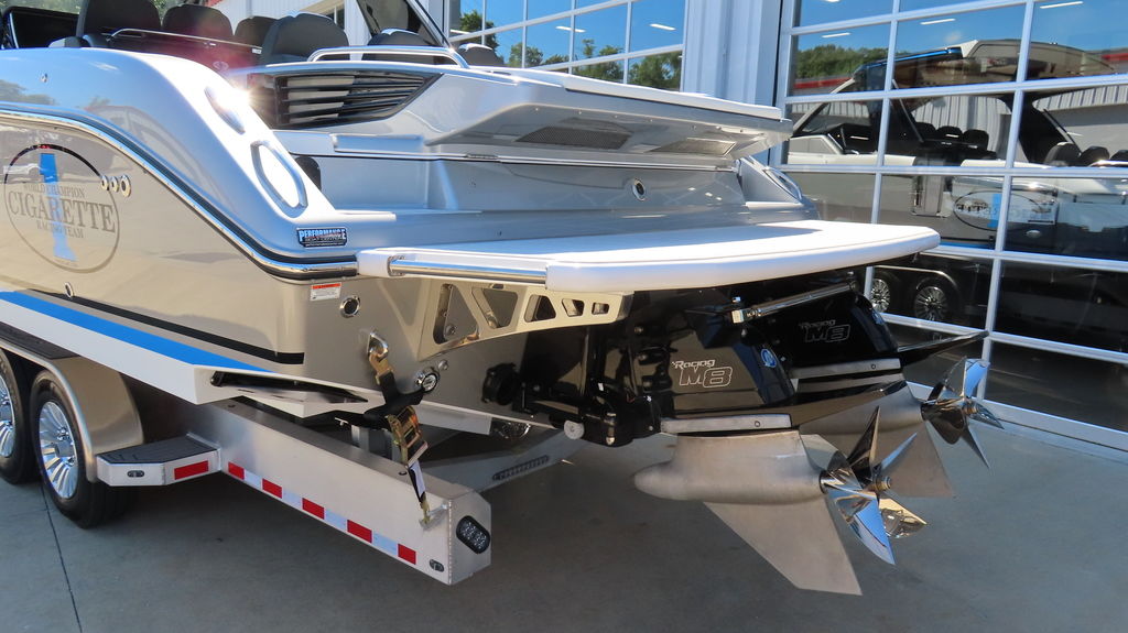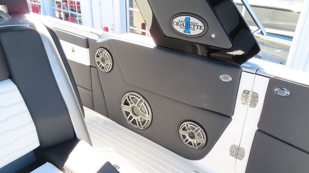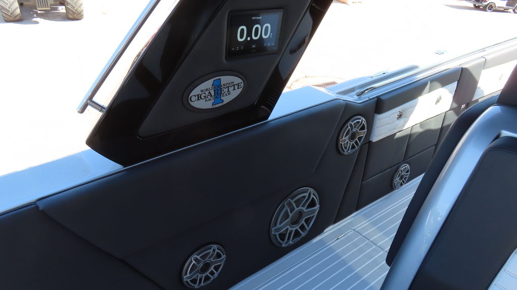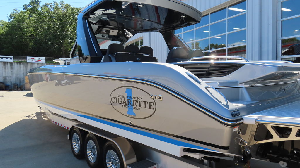 2024 Cigarette 41 Nighthawk SD powered by Twin Mercury Racing QC4V 1100s. (3) Garmin GPS with C-Map switches, Mercury Vessel View 903, electric battery switches on dash, soft touch vinyl, bow thruster, Rear facing seat behind bolsters, Cigarette JL Audio upgrade, power rear sunshade, Garmin convenience package, Sea Deck flooring, windlass anchor, dive door, port and starboard fender storage and trash receptacles, cabin sink, vacu flush head, shore power, and onboard charger, Automatic Sun shade, Evolution Triple axle Trailer Included.