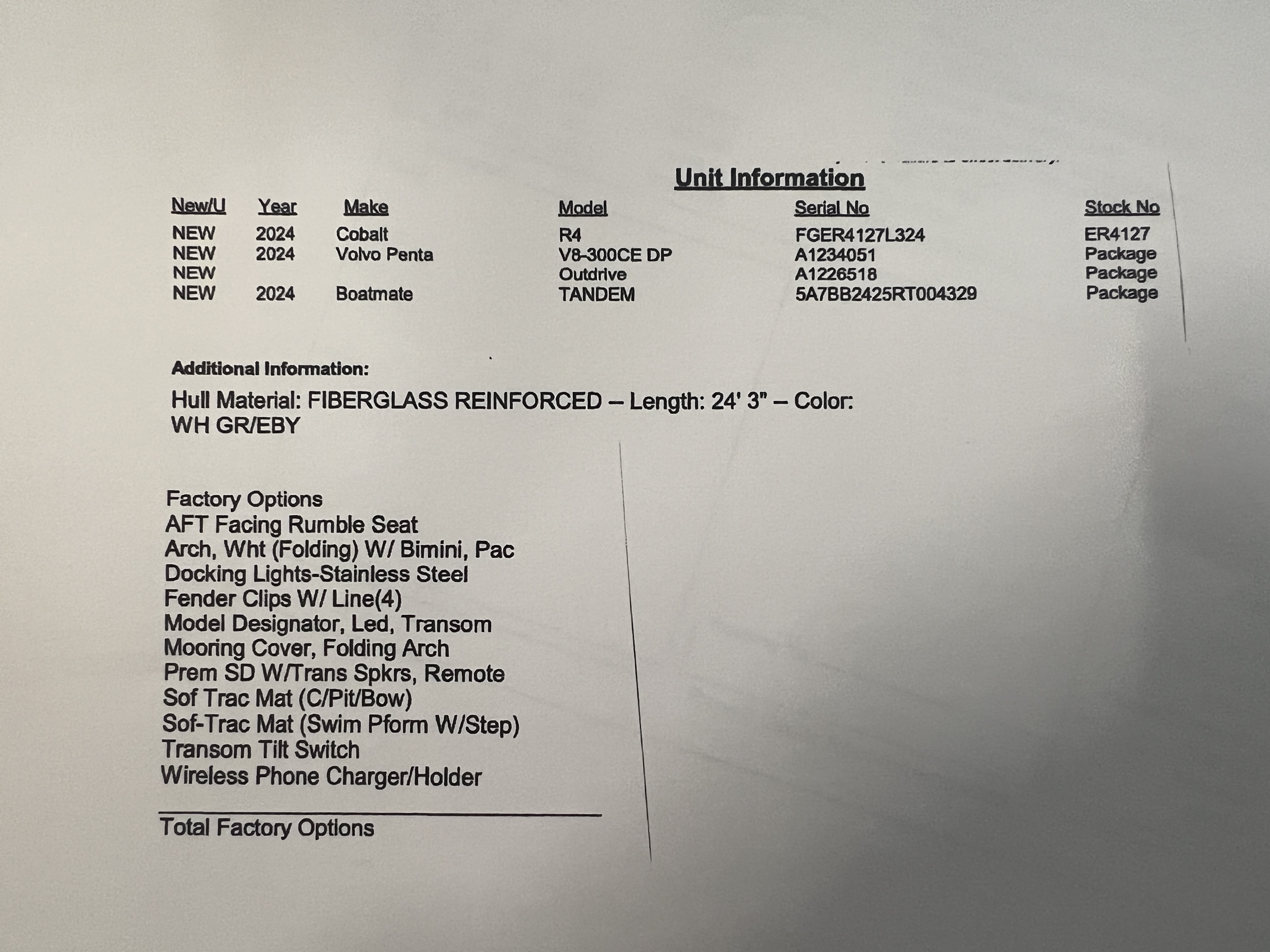 Boat was purchased new in May of 2025. Used only in fresh water, Lake Havasu and The Colorado River. Stored in climate controlled garage. The boat has only 18.8 hours! Boat was serviced at 16 hours locally at Quality Marine. No known damage. Factory Options and Build included in images. Trailer is one of the nicest I'ver ever owned to include Priced to sell.