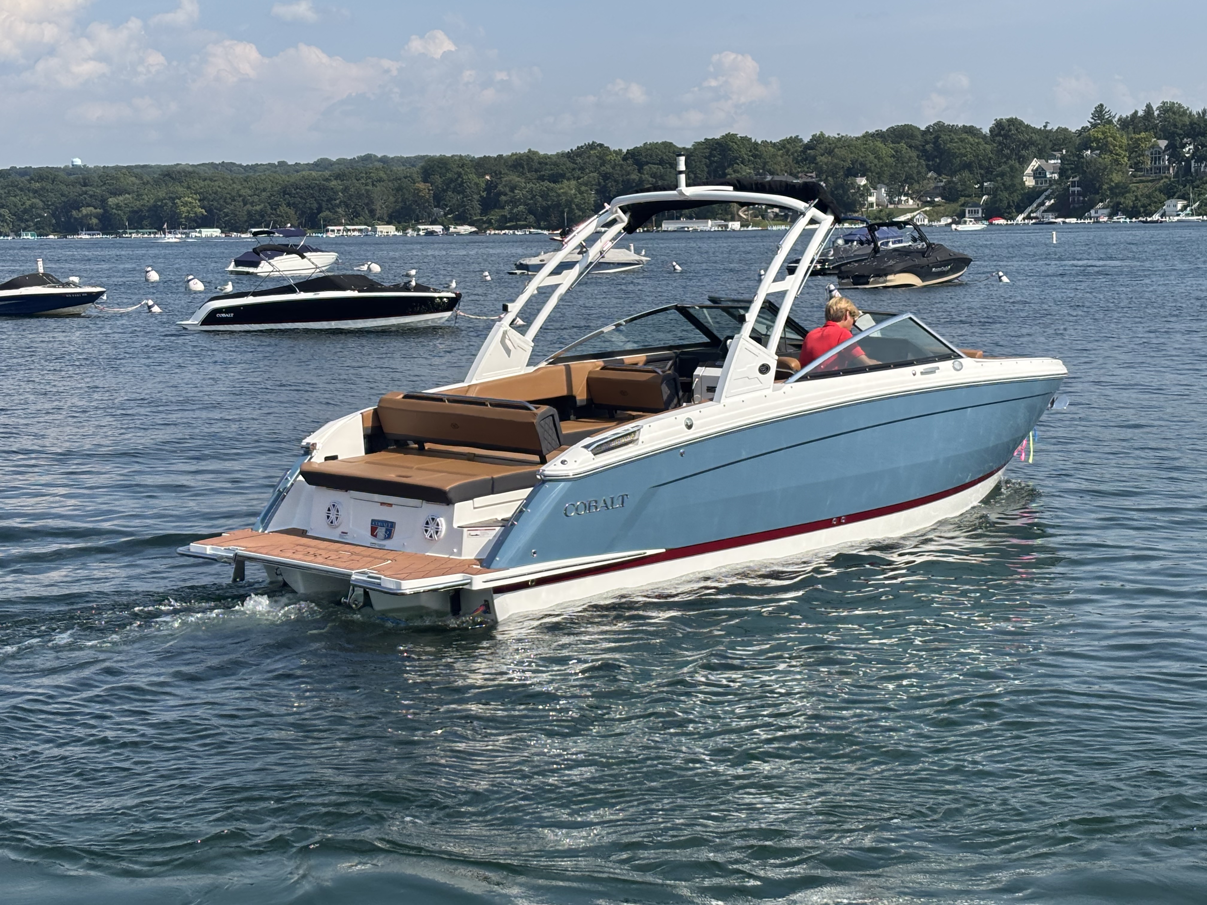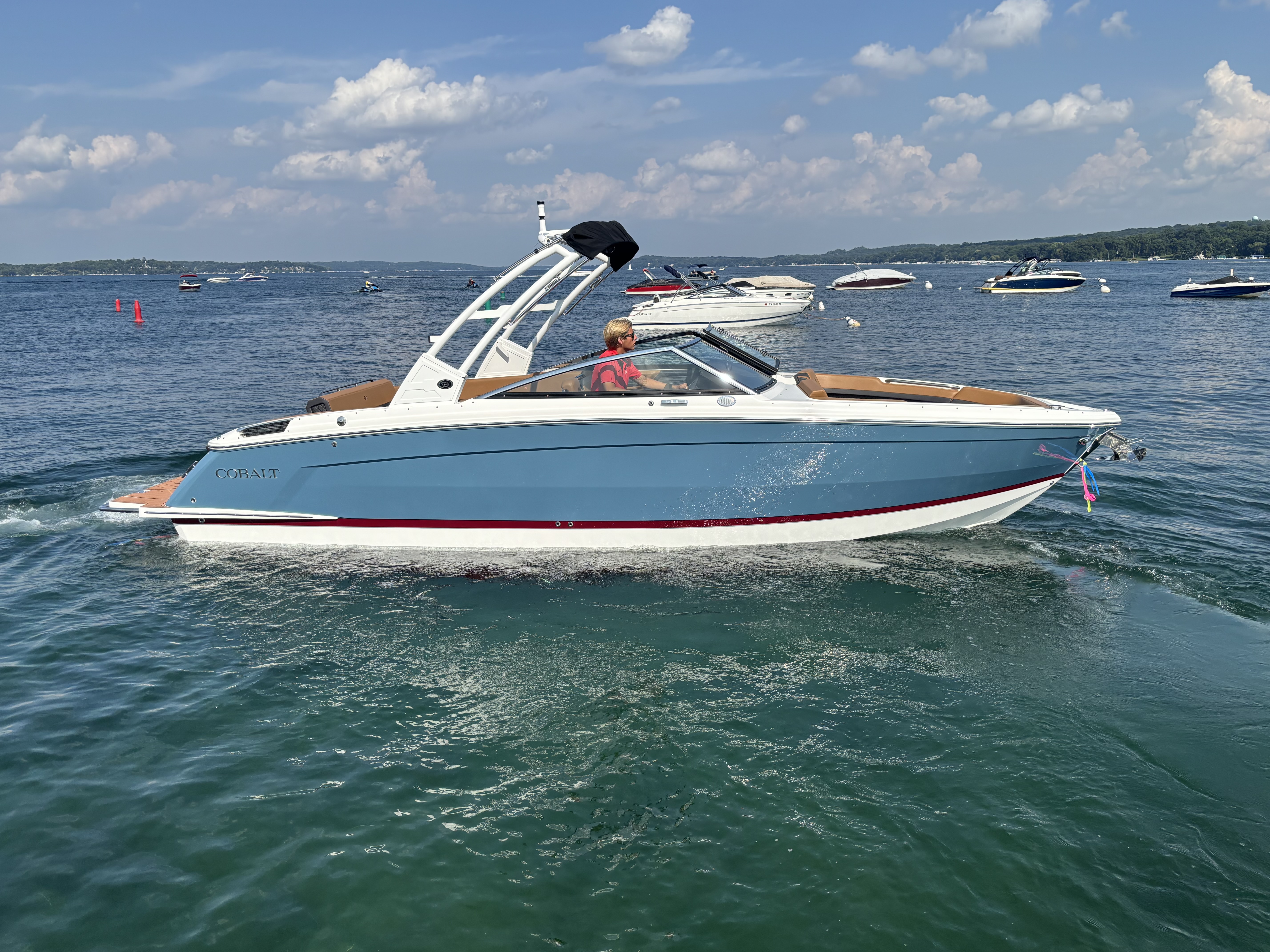 Bayside Blue exterior, elegantly complemented by the Cabernet boot strip. This combination not only exudes sophistication but also reflects your distinct style and refined taste. The cobalt blue waters have finally met their match in the sleek design of the Cobalt R8.