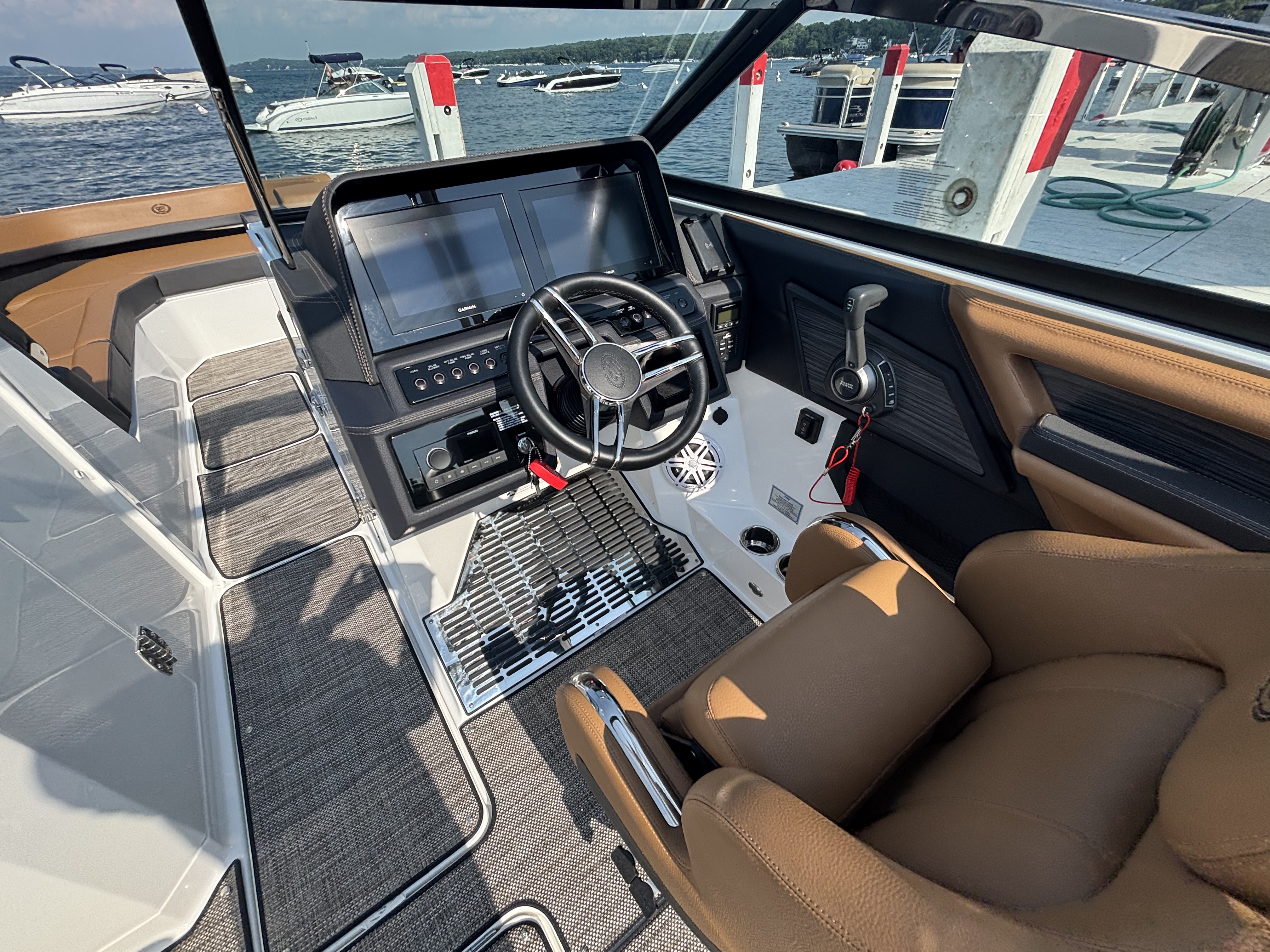 Navigate with confidence using the dual Garmin glass cockpit screens, providing you with real-time information and navigation assistance. The LED interior accent lighting creates an inviting atmosphere as day transitions to night, seamlessly blending modern technology with classic elegance. With trim tabs and indicators, you have full control over your ride's dynamics, ensuring a smooth and comfortable journey.