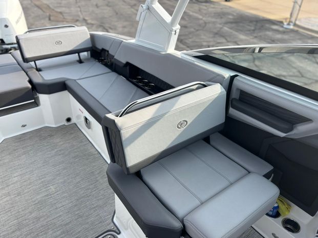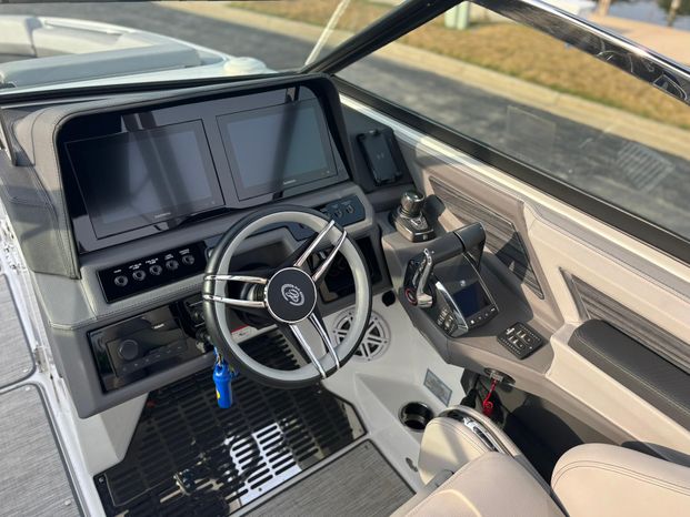 See This stunning 2024 Cobalt R8 Outboard, a remarkable bowrider that combines elegance with performance. Measuring an impressive 27.83 feet in overall length, this vessel is crafted from durable fiberglass and features a sleek Deep Vee hull design, ensuring a smooth and stable ride on the water. Powered by twin Mercury Verado outboard engines, each delivering 300 horsepower, this boat promises exhilarating speed and responsiveness, with only 130 hours of use. The advanced engineering of the engines guarantees reliability and efficiency, making it perfect for both leisurely cruises and thrilling adventures. Designed for comfort and style, the Cobalt R8 Outboard is equipped with thoughtful features that enhance your boating experience. Whether you're entertaining guests or enjoying a day on the water, this boat is sure to impress with its exceptional craftsmanship and performance. Embrace the open water with the Cobalt R8 Outboard, where luxury meets functionality.