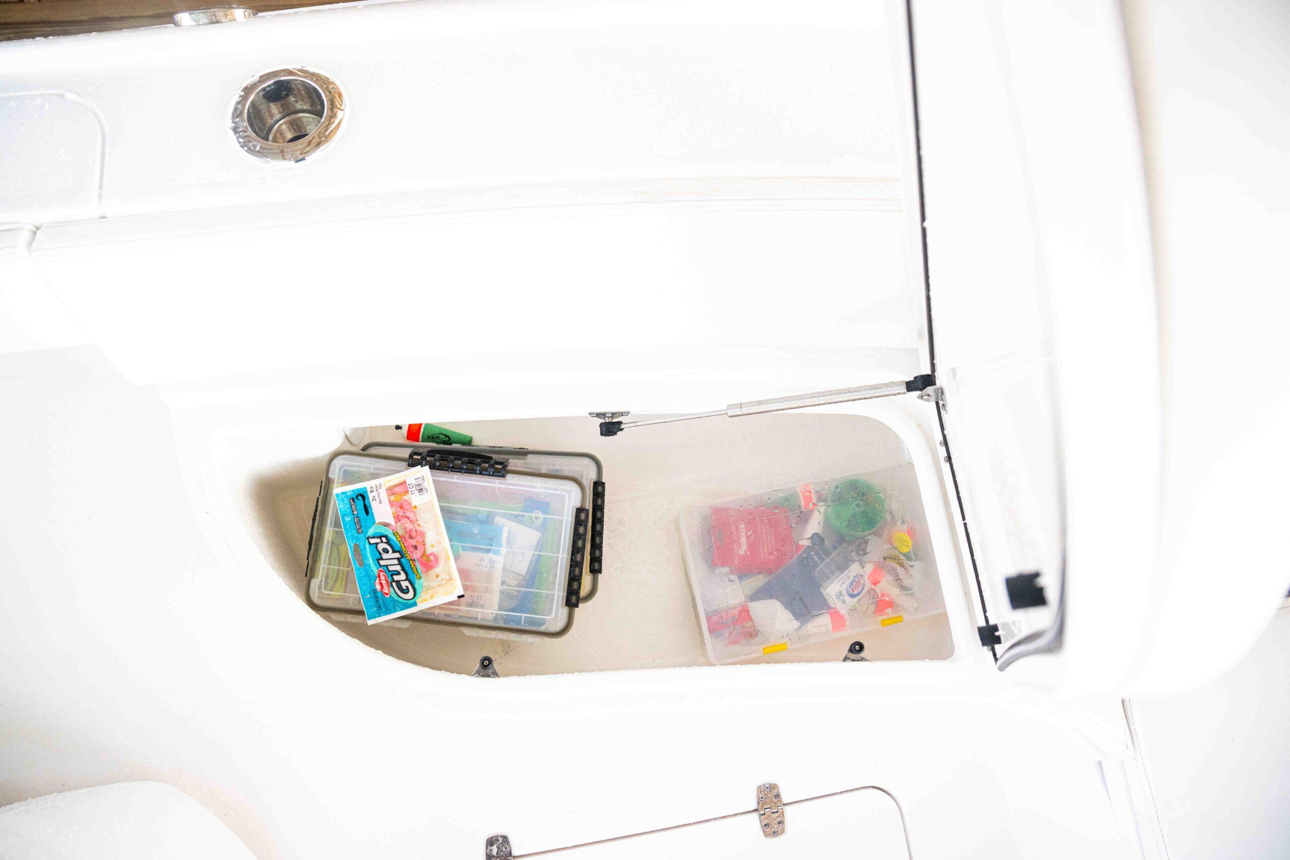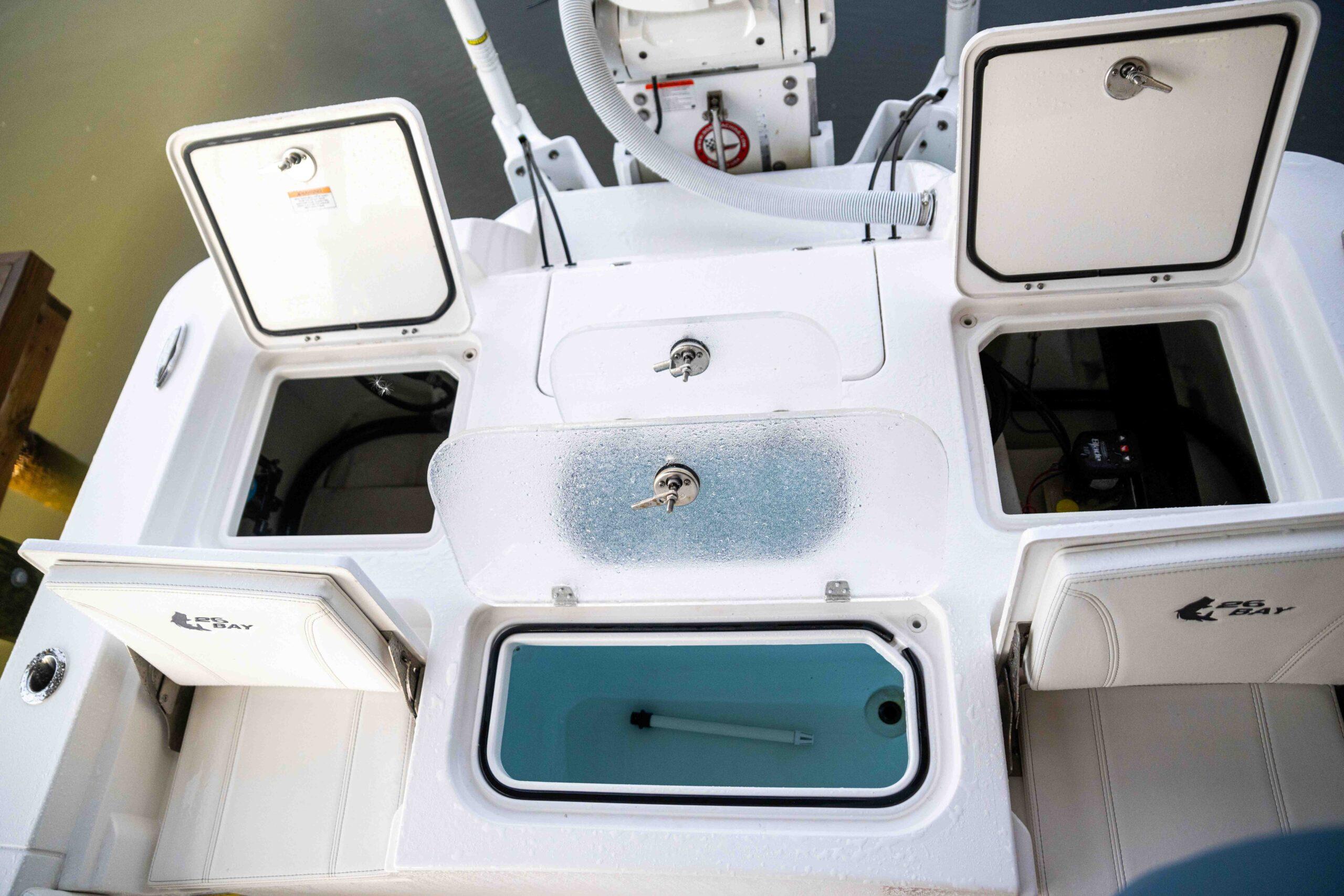 Fishing accessories with Gemlux scoops, livewell lights, clear lids, and robust plumbing