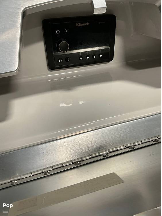 From the captain's chair, you are in total control with a massive 9-inch Garmin touchscreen, wireless charging, and a cooled cup holder to keep your drink crisp during long summer hauls.