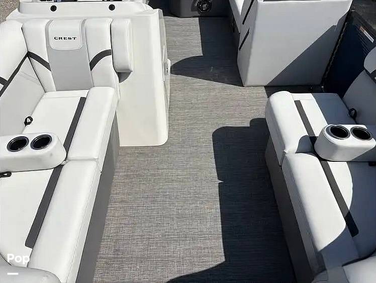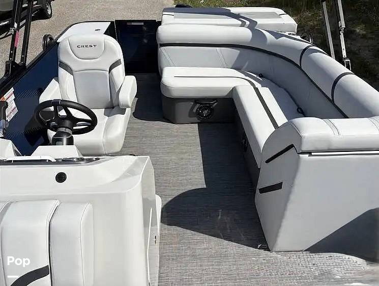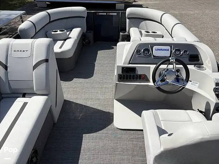 This Crest pontoon is powered by the durable Mercury 60HP ELPT Command Thrust four-stroke engine. This isn't a powerhouse built for high-speed thrills, but rather a quiet, fuel-efficient workhorse that is perfectly suited for leisurely cruises, fishing trips, and enjoying conversations with friends and family. The "Command Thrust" gearcase provides more thrust and better control than standard outboards, making docking a breeze and ensuring you have enough power for steady, confident cruising. With Mercury's reputation for reliability, you can focus on making memories instead of worrying about maintenance.