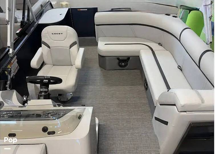 This Crest pontoon is powered by the durable Suzuki 50HP. This isn't a powerhouse built for high-speed thrills, but rather a quiet, fuel-efficient workhorse that is perfectly suited for leisurely cruises, fishing trips, and enjoying conversations with friends and family.