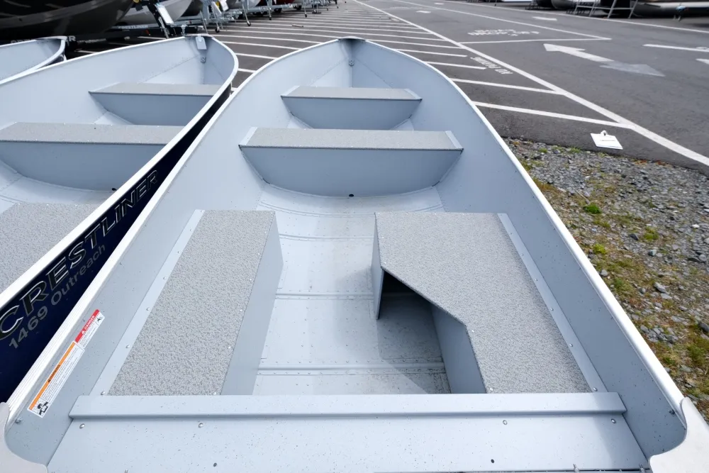 The 1469 Outreach is built for one reason: to provide you with a durable, uncomplicated way to get on the water to catch fish. This small aluminum utility boat is lightweight and easy to move making it great for camping or as a dependable resort boat. The 1469 features stern split bench seating for easy engine access, two additional marine-grade vinyl wrapped bench seats, and transom handles for easy transportation.Tom-n-Jerrys Boat Center | To learn more about this listing, give us a call at (360) 466-9955, email us at sales@tomnjerrys.net, or visit our website at tomnjerrys.net.