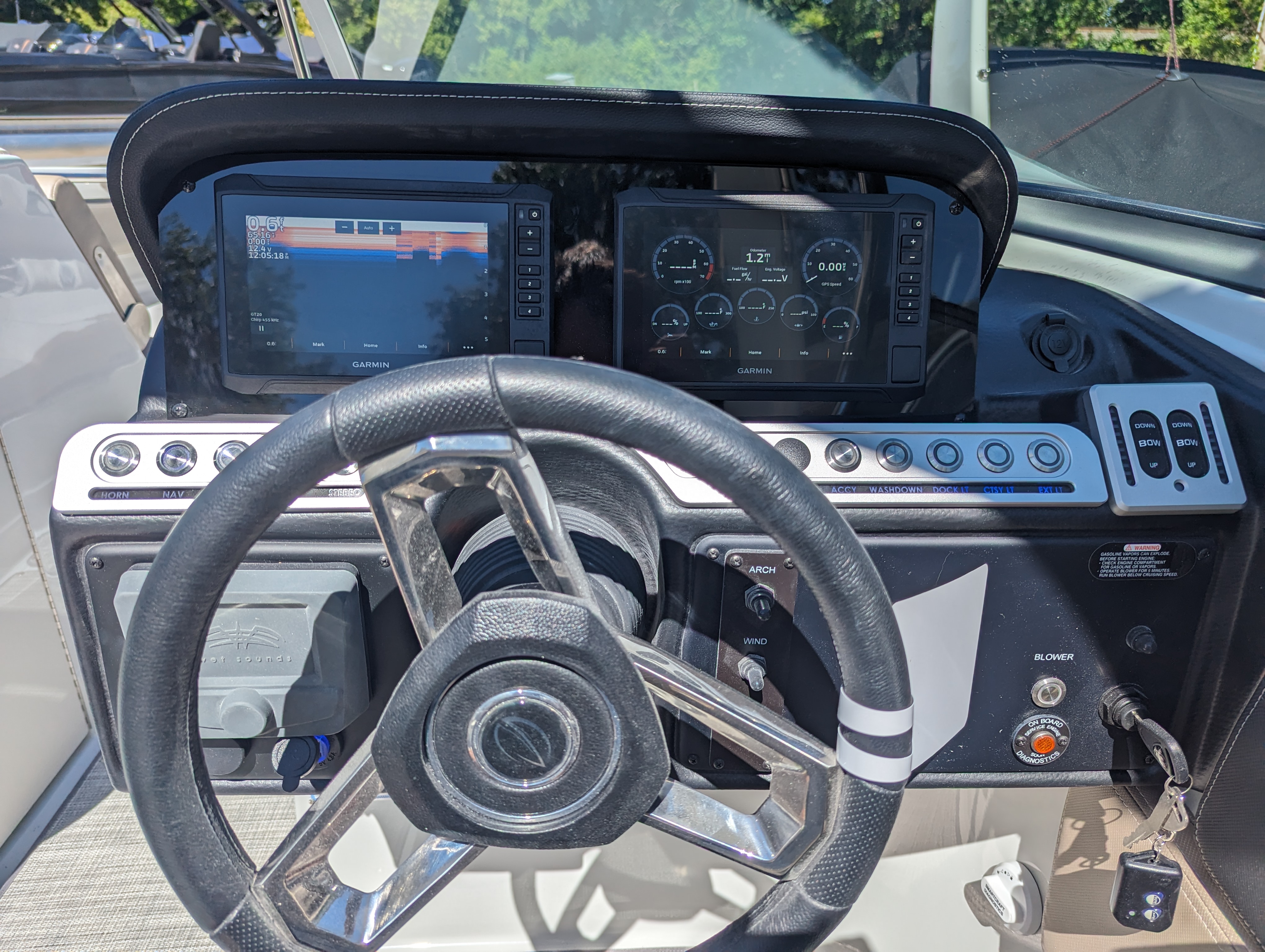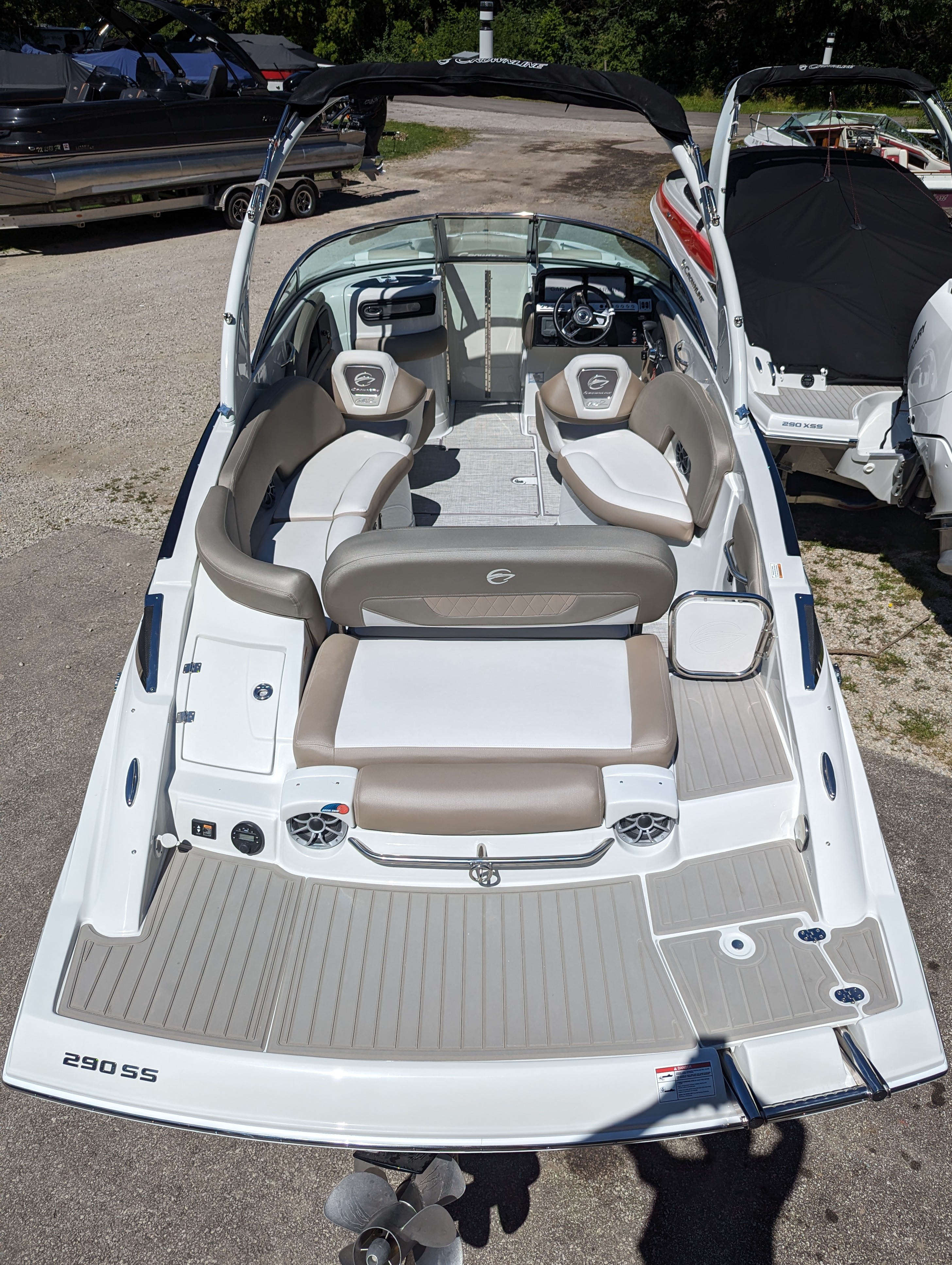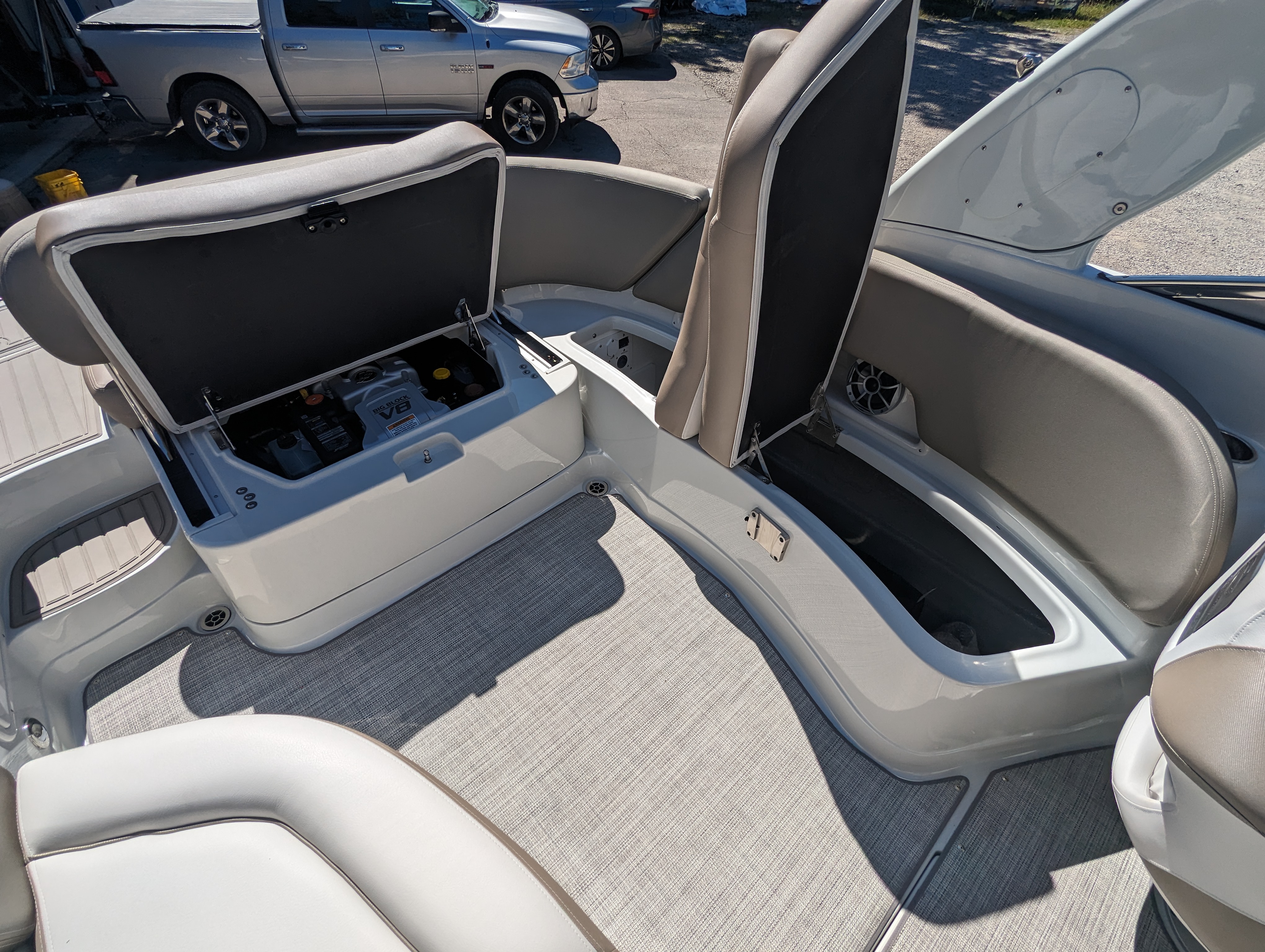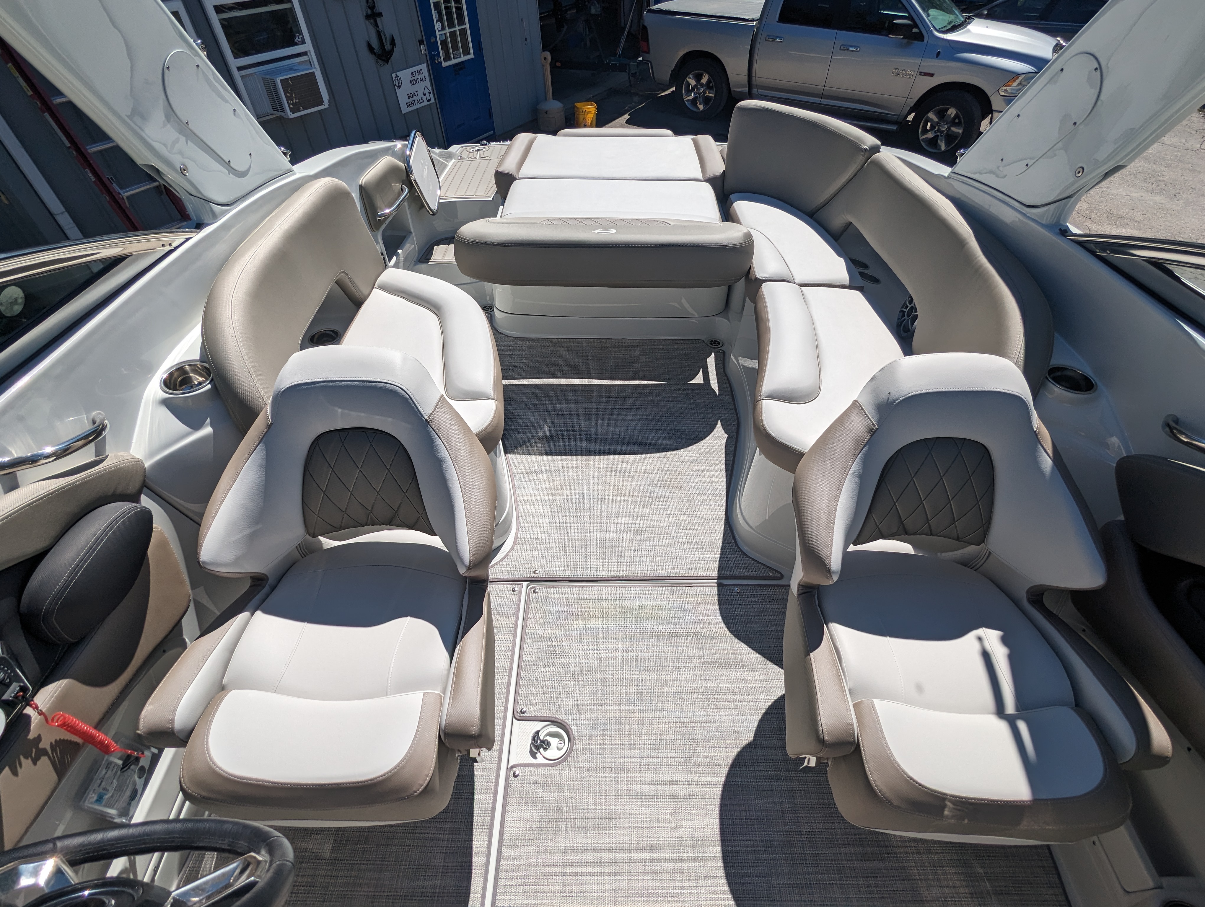 Beautiful boat with standard Crownline options. Also added to this boat: Big Block 8.2L Mercruiser, Black double stiched shroud w SS switches and billet, black bow & cockpit cover, deluxe color matched Steel Trailer w/LED Lighting, Brakes, Deluxe Tire & Rims with Spare, Diamond Plate Fenders & V-block for Windlass.