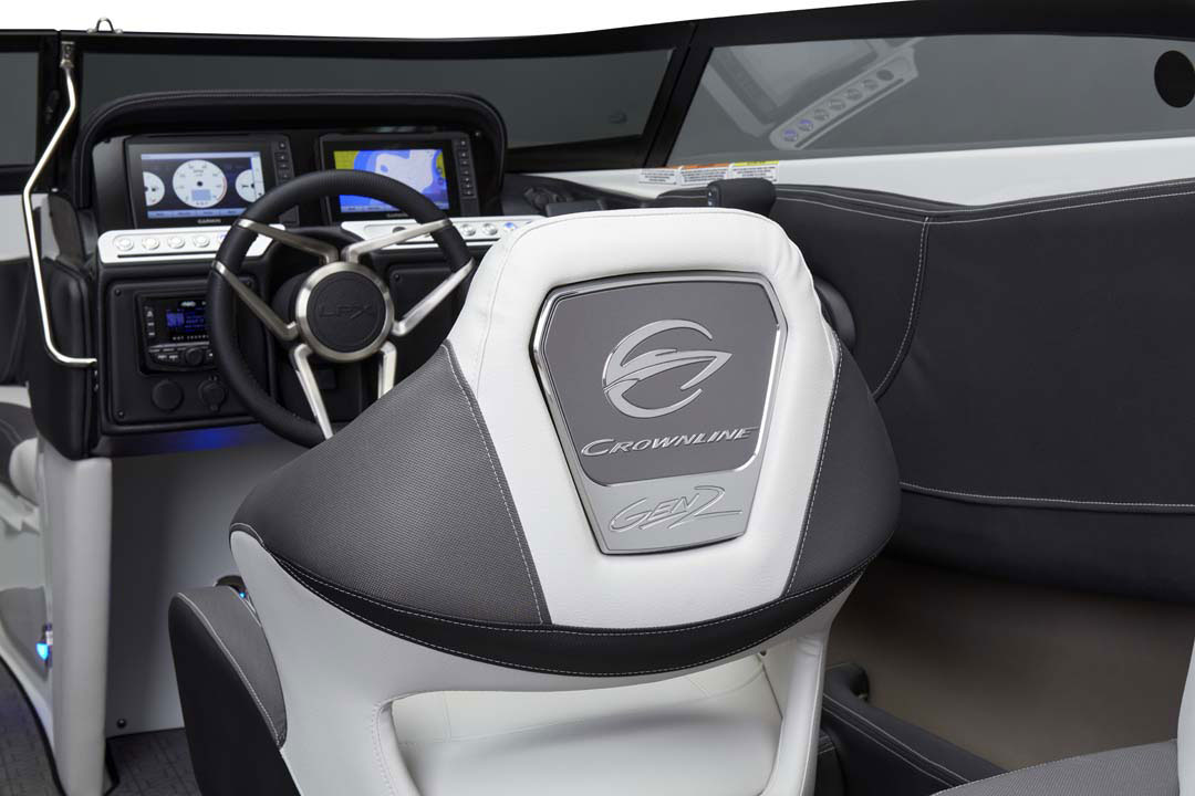 We are extremely excited to announce the introduction of our retro-cool, next-generation Gen-2 220 SS LPX! Its sleek style lines are combined with Crownline’s flawless solid gelcoat, custom LPX graphics, and low-profile LPX windscreen. And it’s built on Crownline’s performance-proven F.A.S.T. Tab® hull for fast hole shots and exhilarating high-speed turns. Can’t you just hear that Corsa side hull exhaust?