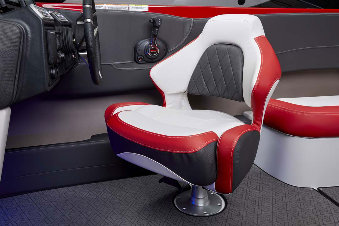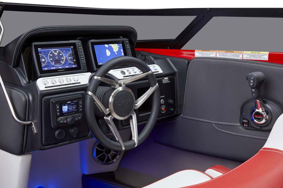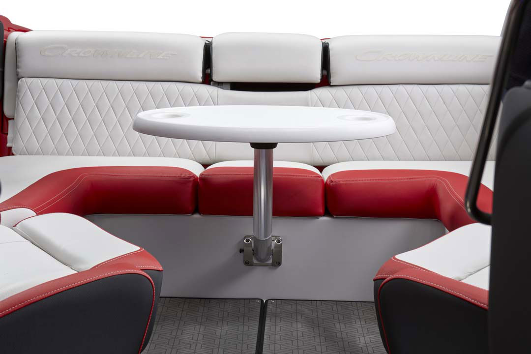Reminiscent of our incredibly popular, award-winning 202 LPX and 225 LPX, which were released 23 years ago, our new Gen-2 240 SS LPX stands out in a crowd with a look all its own. The racy, sleek exterior with a low-profile, black LPX windscreen, and newly designed checkered flag LPX graphics beautifully displayed on Crownline’s always impressive and flawless, solid-color gelcoat are just part of the reason that these boats are not for the shy or introverted.