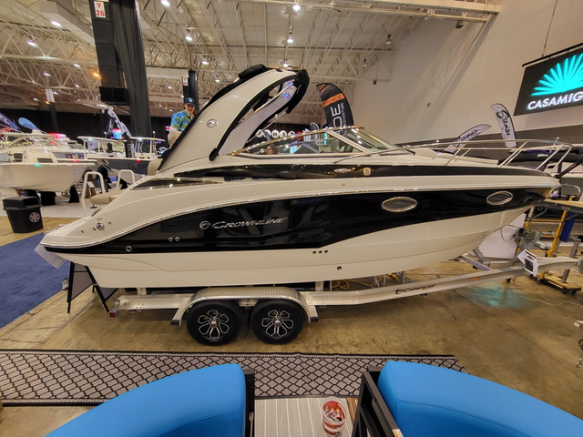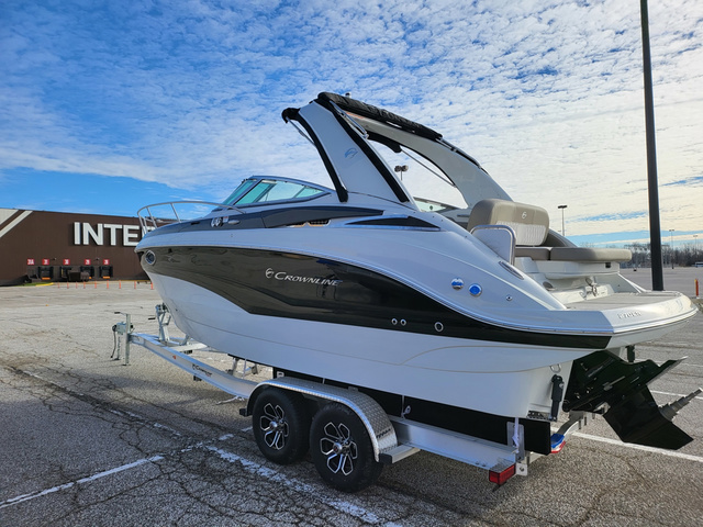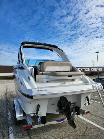 Change in owner's lifestyle causes this lightly used Crownline to be available now! Customer has added a power trailer jack and a power trailer winch to make it easy to trailer and retrieve. The ideal trailerable cruiser, the Crownline 270 CR with 350 Mercruiser Bravo 3 combines unique styling with innovative features and effortless livability. This luxury model features a beautifully appointed cabin and galley with cabinetry, custom countertops, ceramic-top electric stove, sink, refrigerator and microwave. Standard amenities also include air conditioner/heater, aluminum arch with bimini, fully-appointed head compartment, and dockside water receptacle with pressurized water system. Value Adding Standard Features - 100% Composite Transom Air Conditioner - Heat & Cool 8000 BTU w/Soft Start Protection Arch - Moonstone Aluminum w/Electric Fold Down & LED Lights Batteries - Installed & Upgraded to AGM Batteries - Management Panel w/Voltage Sensitive Relay Charging System Cabin - Full Fiberglass Cabin Liner w/Hardwood Accents Canvas - Camper Canvas, Color Matched Canvas - Cockpit Cover, Color Matched Cleats - 8 Stainless Steel Pull-Up, Embossed (6 Total) Cockpit - Solid Surface Countertops and Sink Cover Dash - Moonrock w/Black Stitched Brow & S/Steel Switches & Billet Galley - Cabinetry, Sink, Refrigerator & Electric Stove Gelcoat - Onyx, Double Hull Band w/Middle Deck Band & Vents GPS - GARMIN 7 Twin Touch Screens w/LAKEVU G3 Maps GPS - GARMIN BLUE CHART G3 Maps (Extra Chip) Head - Porcelain Electric Flush w/25 Gallon Tank & Level Indicators Head - Shower, Vanity w/Sink, Opening Portlight, Exhaust Vent & Shower Sump Pump Interior Vinyl - Platinum Lighting - Keychain Remote Control for Courtesy Lights Lighting - LED in Cockpit Lighting - LED Underwater Transom Mat - Swim Platform, Moonrock Soft Touch Mat - Woven Cockpit, Snap In (Platinum Mist) Rubrail - Stainless Steel Insert w/White Extrusion Seating - Aft Electric Sunbed w/Trunk Storage Shorepower - Two 30 Amp Receptacles w/50 Cords Speakers - WET SOUNDS (6 Total) Steering Wheel - Black Diamond Stereo - WET SOUNDS Premium Table - Portable Cockpit w/Base & Designated Storage Area Trailer - Tandem Axle Aluminum w/Dexter Torsion Axles & Brakes, Black Aluminum Wheels, Diamond Plate Fenders, Welded Tie Downs & Taillight Section, LED Lighting & V-Block for Windlass Trim Tabs - w/Indicators Water - Dockside w/Pressurized System Windlass - w/Rope and Chain Windshield - Wiper Windshield - Stainless Steel Header and Lock Additional options on this boat: Fender Clips - 4 Bases w/4 Inserts Transom Trim Switch TV - Monitor, HDMI & USB Ports Length Overall: 26 ft. 4 in. (8.02m) Beam: 8 ft. 6 in. (2.59m) Dry Weight: 7559 lb. (3429 kg) Fuel Capacity: 71 gal. (269 L)