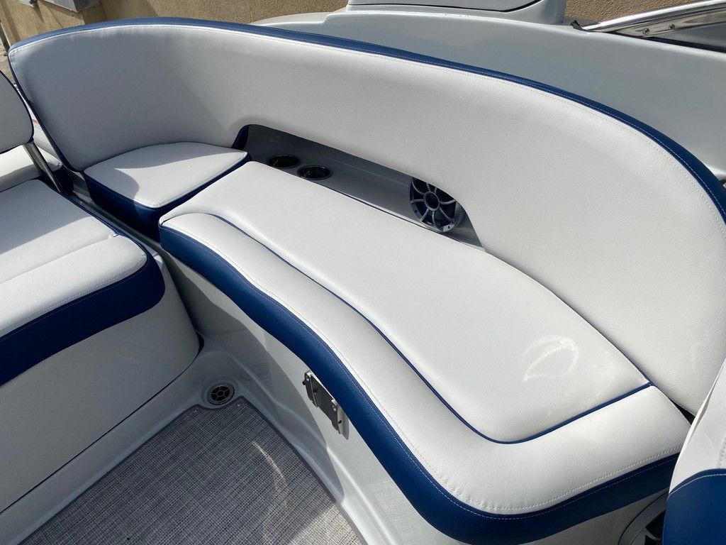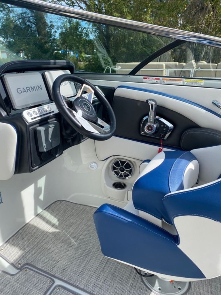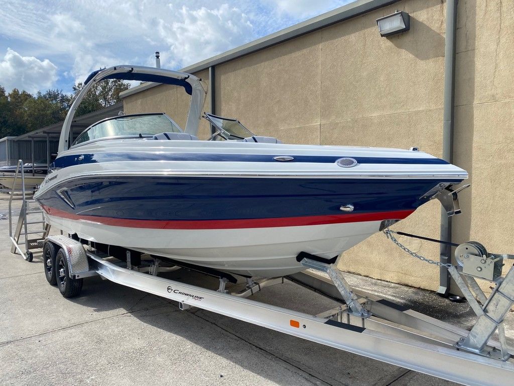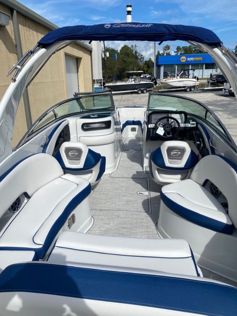 The Crownline 270 XSS outboard is not only impressive to look at, it is a performer as well. And it is loaded up with value-adding standard features that include an arch with electric fold down and sun top, beautiful helm with a 7" Garmin twin touchscreen with LAKEVU G3 maps, fully appointed head with electric flush, and so much more!