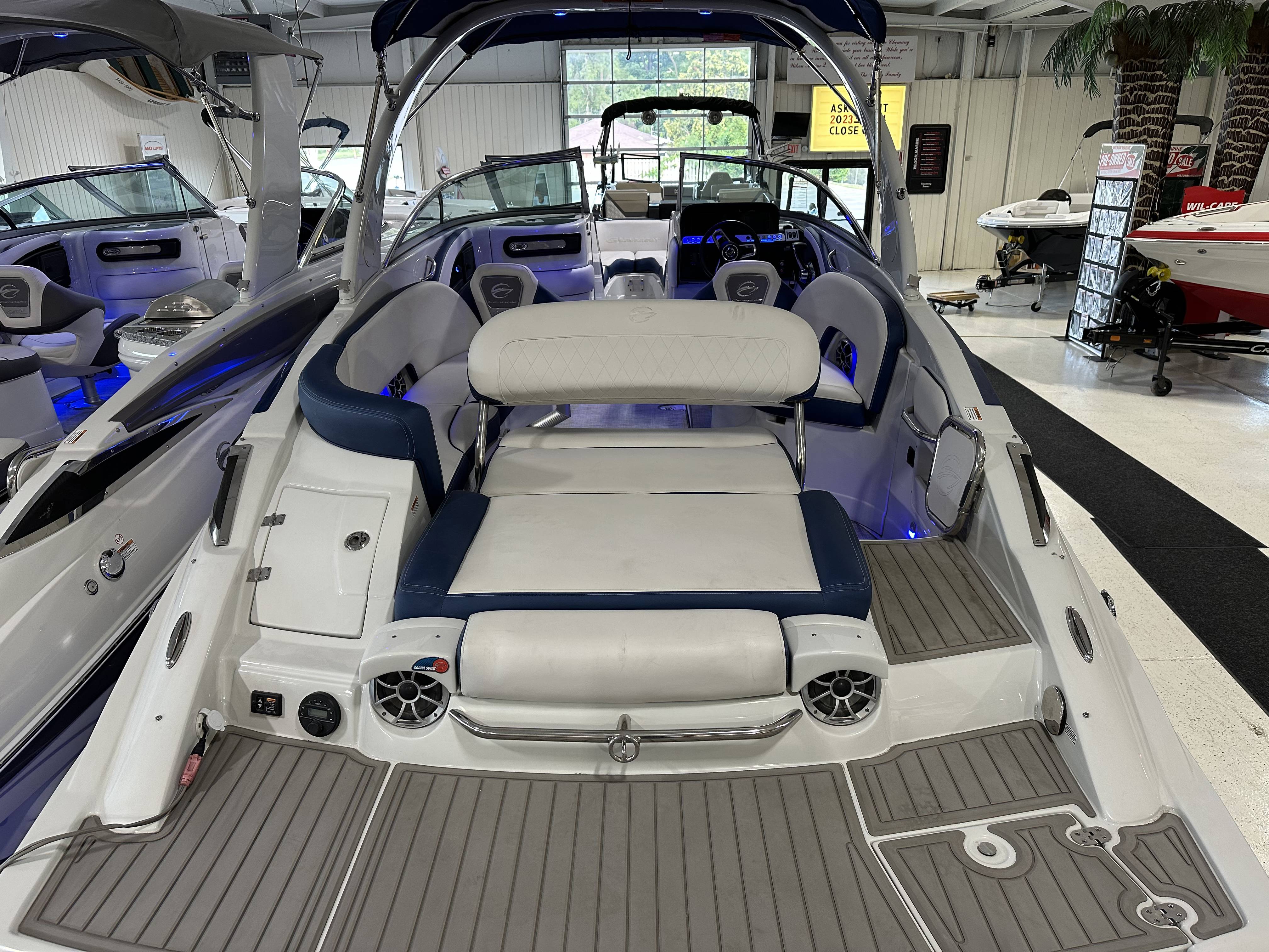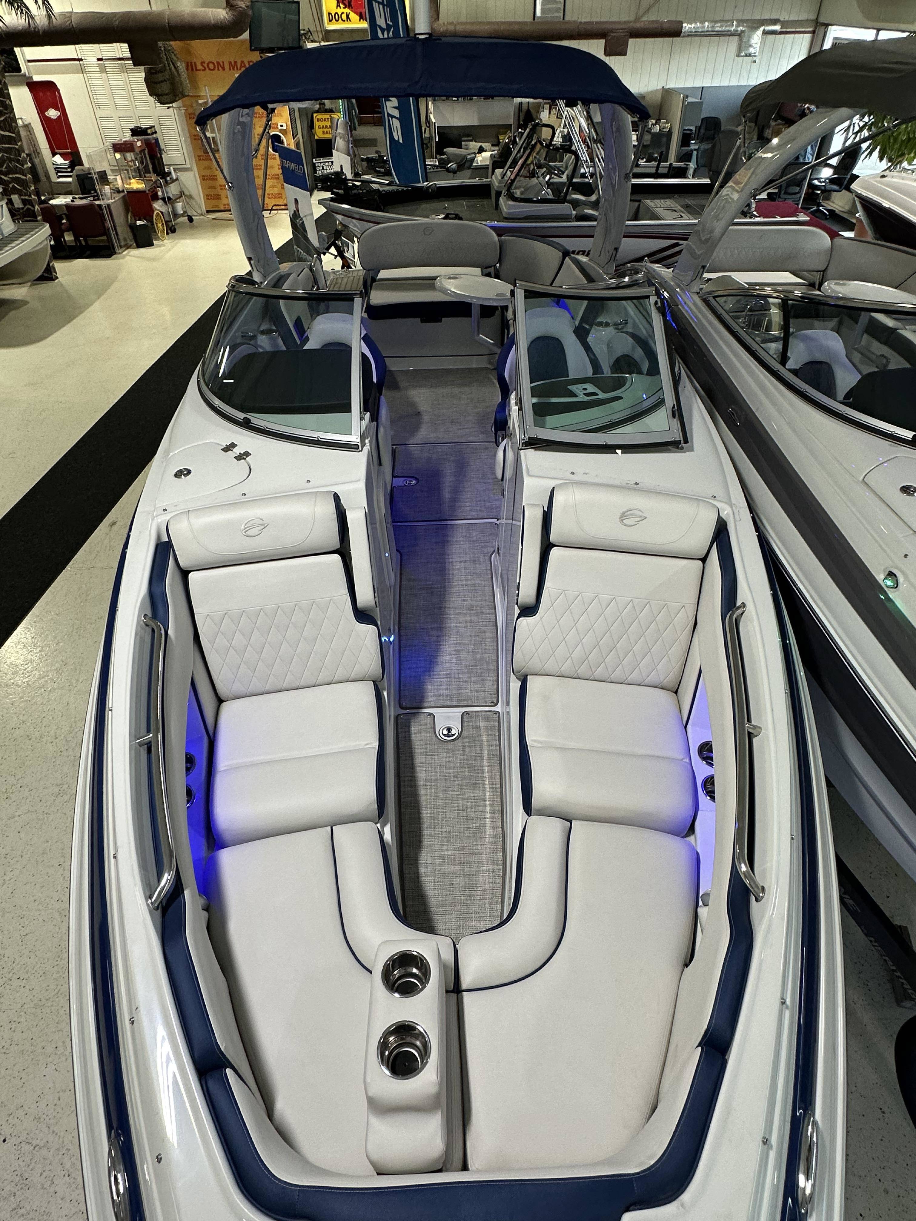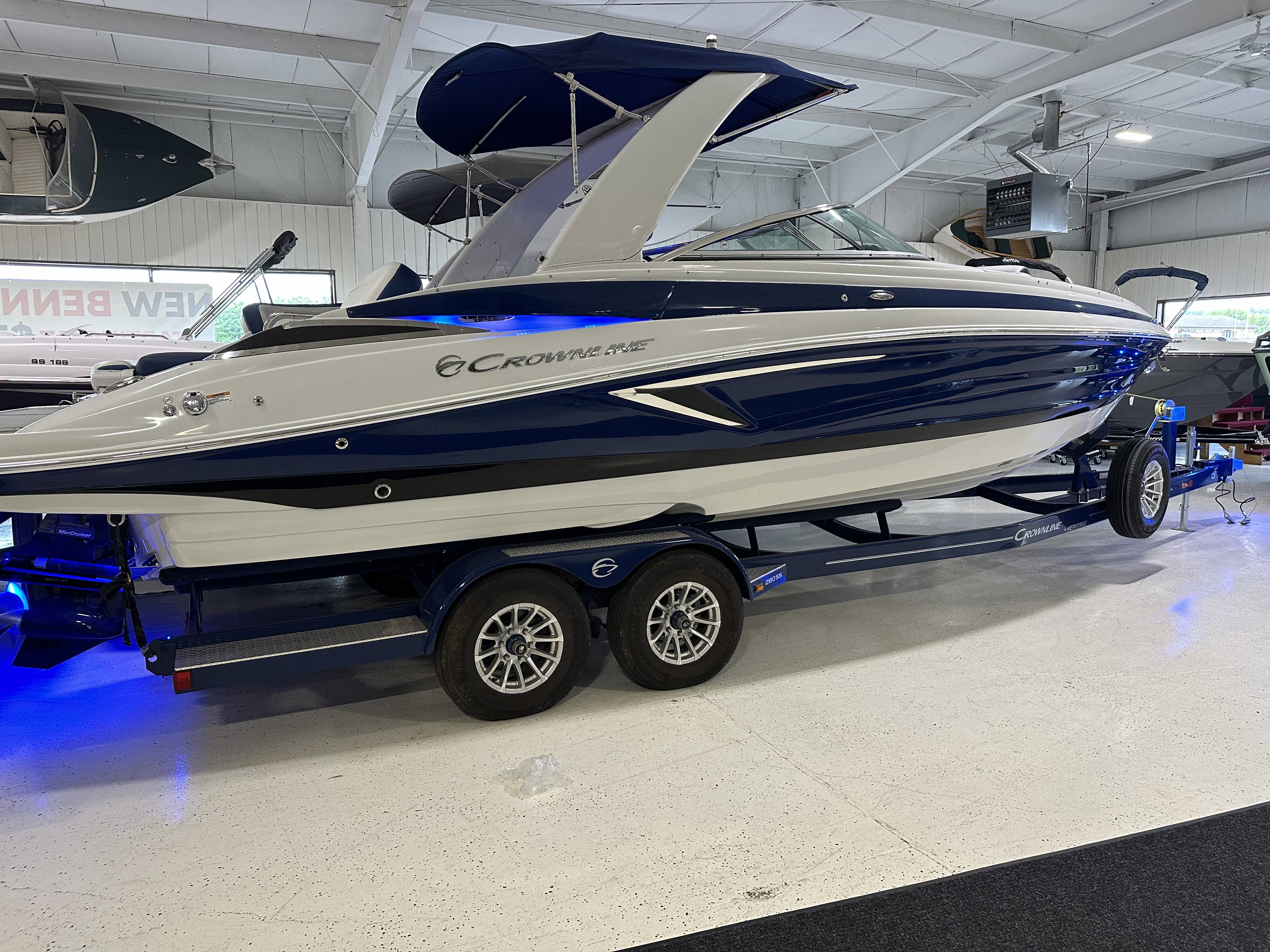 2024 Crownline 280 SS - Elevate Your Boating ExperienceStep aboard the 2024 Crownline 280 SS and immerse yourself in the epitome of luxury, performance, and craftsmanship. This sleek and stylish bowrider is designed to deliver exhilarating adventures on the water while ensuring unparalleled comfort and elegance.Key Features:Powerful Performance: Choose from a range of Mercruiser engines, including the potent 6.2L V8 options, ensuring powerful acceleration and smooth cruising.Luxurious Design: Crafted with attention to detail, featuring a stunning gelcoat in options like Ruby/Slate, enhancing the boat's aesthetic appeal and durability.Spacious Cockpit: Enjoy ample seating for family and friends with plush upholstery and ergonomically designed seating configurations, perfect for all-day comfort.Advanced Technology: Equipped with cutting-edge navigation and entertainment systems, including a Garmin touchscreen display with integrated maps and premium sound options.Versatile Layout: Ideal for both relaxation and watersports, with features like a convertible sun lounge, swim platforms, ski tow bars, and optional wakeboard towers.Premium Amenities: Includes a fully equipped head compartment, cockpit wet bar, and ample storage for gear and accessories, catering to your every need.Trailer Included: A custom-matched trailer with tandem axles, alloy wheels, LED lights, and swing tongue provides convenience and easy transport.Specifications:Length: 28 feetEngine Options: Mercruiser engines available, delivering exceptional horsepower and performance.Factory Options Include:Gelcoat options such as Ruby/Slate for a striking appearanceDeluxe interior color-matched upholstery for enhanced comfortState-of-the-art navigation and audio systems for entertainment and convenienceCustom-matched trailer with premium features for easy towing and storageDiscover Your Crownline 280 SS Today!