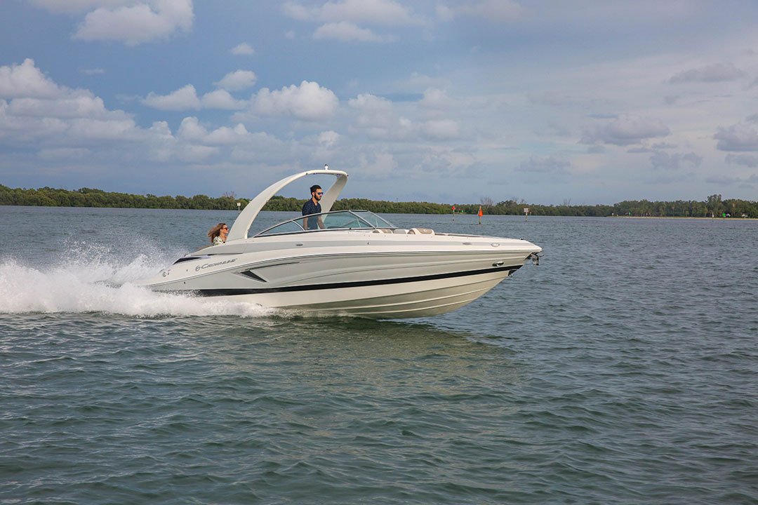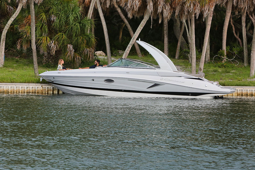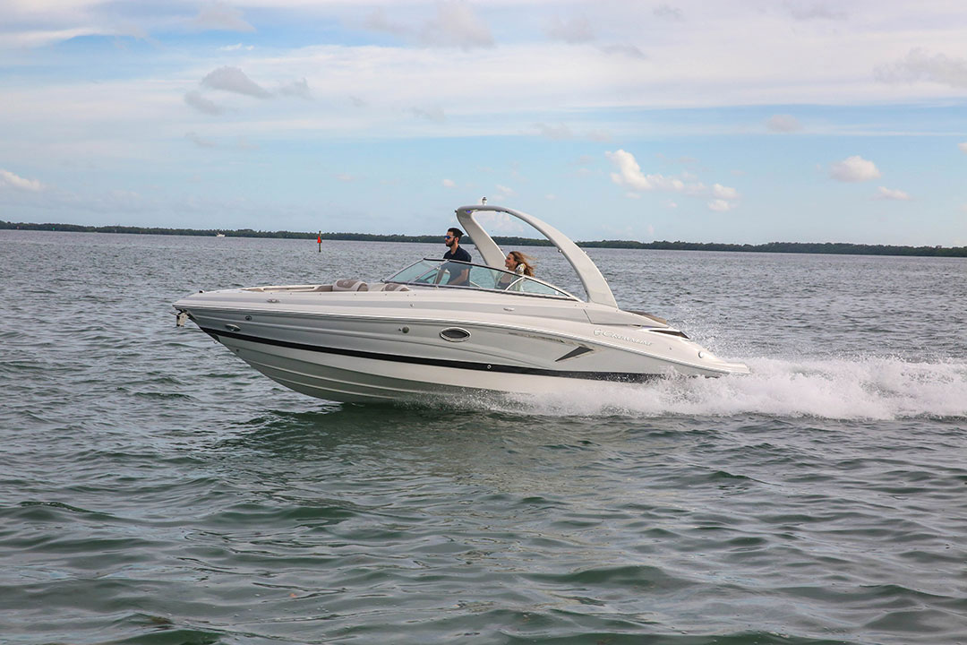 Feature-packed and ready for action, the 280 SS comes standard with an electric Moonstone arch, windlass, underwater lighting, and stainless steel docking lights. This model is designed with conversation-friendly J-wrap cockpit seating and additional two-passenger seating behind the driver seat. This seating area can be exchanged for an optional cockpit galley with a stainless steel sink and faucet, solid surface top, and finished storage area, cockpit refrigerator or cockpit grill.
