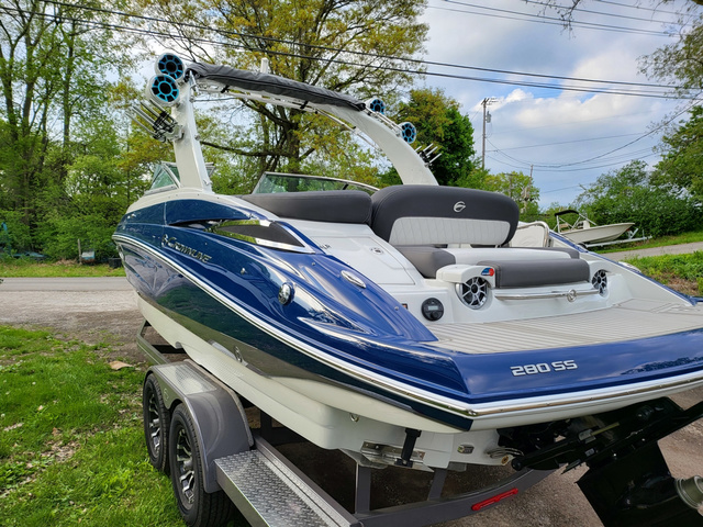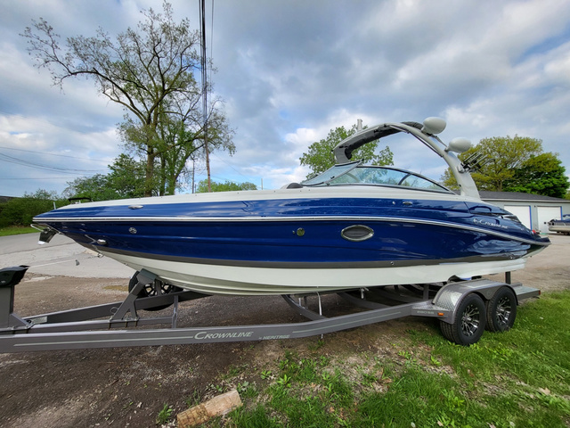 Unbeatable price on this Loaded 280SS. Includes Custom matched HD Trailer. Stunning custom color and design on this 280SS Crownline. 6.2L 350HP Great ride in the rough water. Loaded with amp, sub and speakers with dual wakeboard racks. Perfect for water sports and cruising. Feature-packed and ready for action, the 280 SS comes standard with an electric Moonstone arch, windlass, underwater lighting, and stainless steel docking lights. Upgraded interior on this Crownline is designed with conversation-friendly J-wrap cockpit seating and additional two-passenger seating behind the driver seat. Rear Lounger is powered and can be placed in any position from laying down to upright and any position in between. Length Overall: 27 ft. 11 in. (8.51m) Beam: 8 ft. 6 in. (2.59m) Dry Weight: 6100 lb. (2767 kg) Fuel Capacity: 78 gal. (295 L)