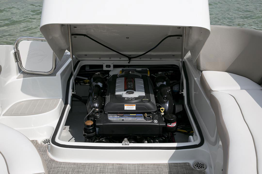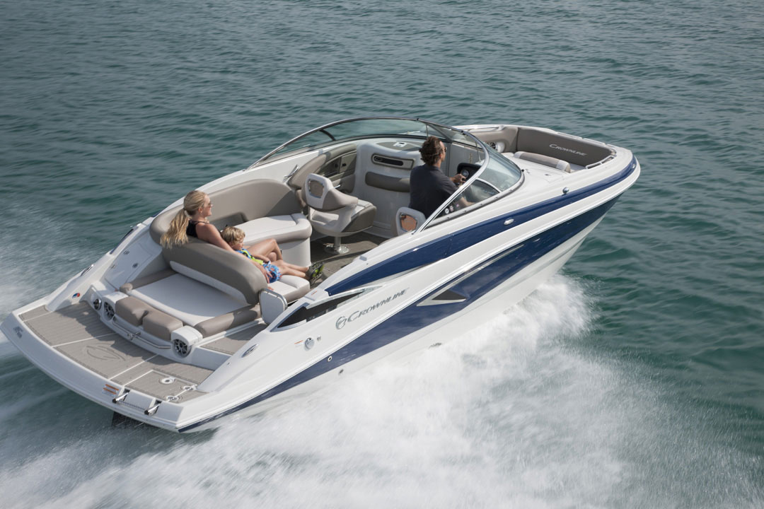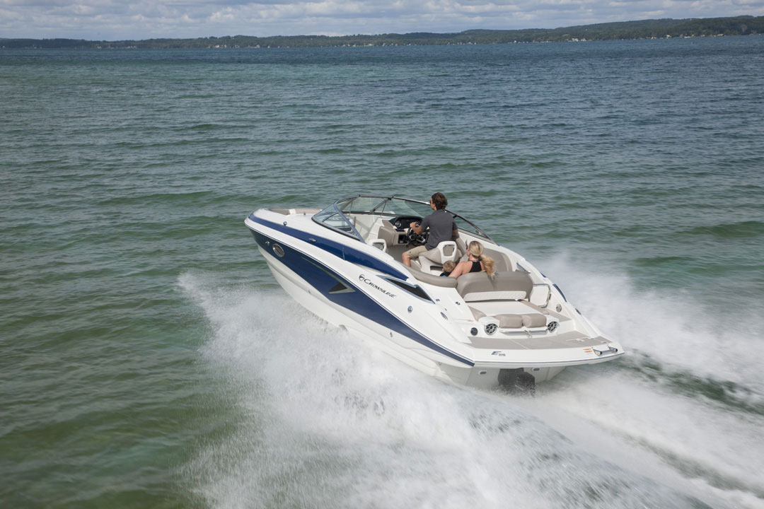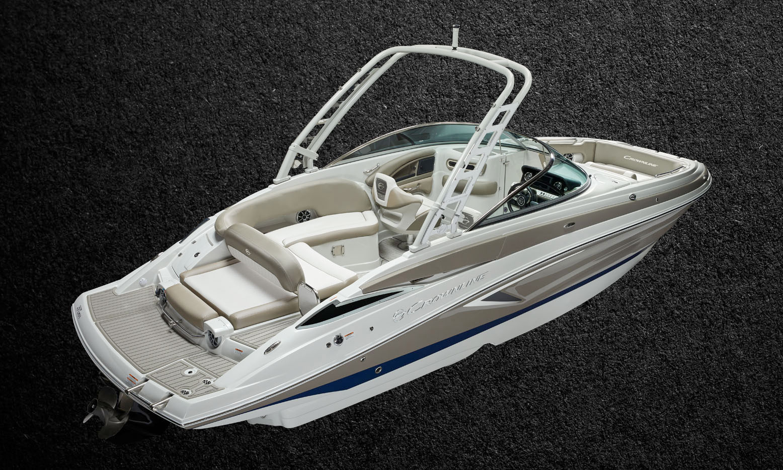 The E255 is the perfect choice for active families that enjoy a multitude of on-the-water activities including skiing, wakeboarding, kneeboarding and cruising. This sporty model is all about performance and style with a wrap-around swim platform with soft touch mat, walk-through transom, Wet Sounds stereo with eight Wet Sounds speakers (includes two at the transom), electric lounge seat with dual actuator for easy adjustment, J-shaped cockpit, and stainless steel accents throughout.