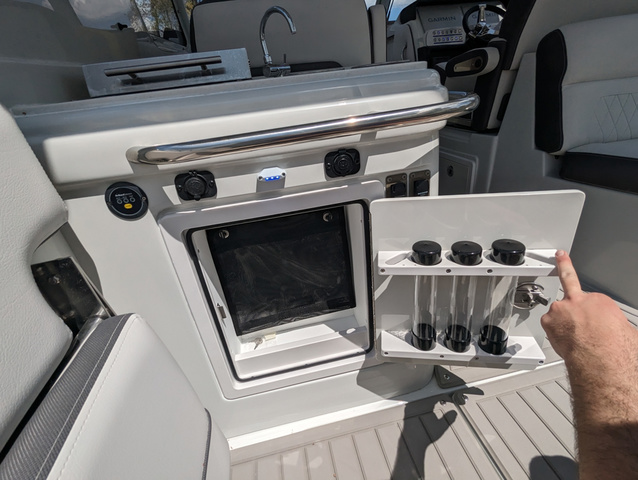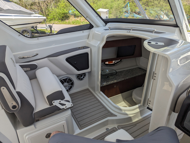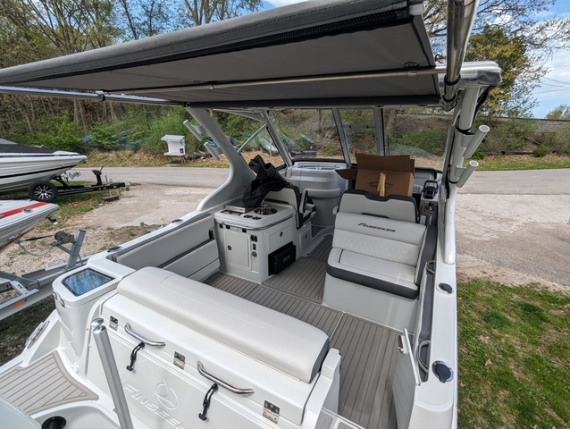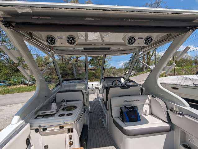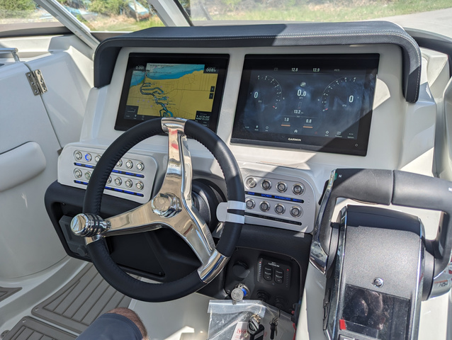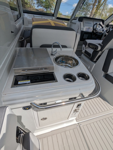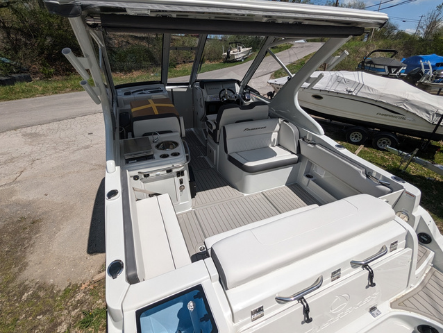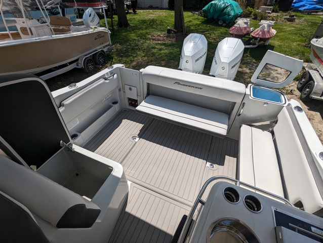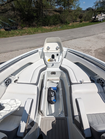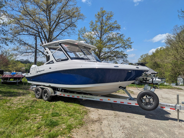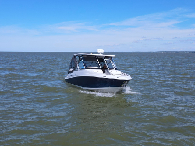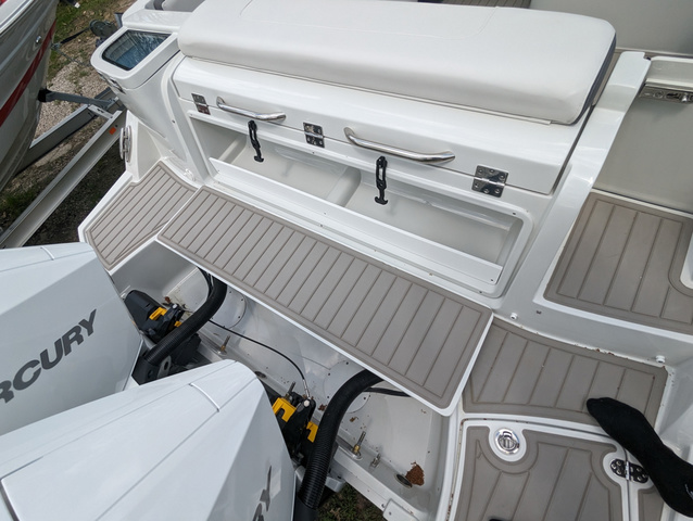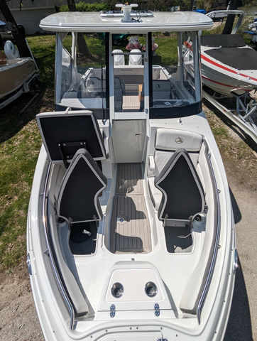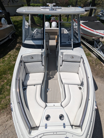 280 Dual Console METICULOUSLY MAINTAINED, Owner will include delivery within 500 mile radius of Put in Bay! 65 Hours Many additional options: outdoor galley with grill and inverter with batteries, Radar, autopilot, extended windshield for 3 season boating, full enclosure, upgraded mercury props, boat is fast and handles and rides great. Boat bottom was professionally coated with Clear Epoxy bottom coating with a five year warranty. Turn key ready to go! The 280 Finseeker Dual Console is the ultimate fishing machine. Everything you could want and need on your family fishing outing is at your fingertips and conveniently situated throughout the cockpit. The twin 300 Mercury outboards push this boat past 60 mph, giving it all the performance of some of the fastest Crownline SS bowriders, while keeping everyone out of the elements and ready for fishing. To really feel the Crownline difference it is IMPERATIVE that you drive one yourself. If you are in the market for a dual console fishing boat that is guaranteed to turn heads - do not buy another boat until you visit here. Along with a long list of Crownline's standard features - this boat also includes the following: Additional Options: Full Removable Canvas Enclosure Color matched interior Grill, wet bar, and inverter Bow filler cushion Soft touch snap-in flooring Twin 12" Garmin screens Autopilot for Verado Outboards Full Acrylic Windscreen Wet Sounds Performance Amp Upgrade Fender Clips Windshield Wiper Spare wheel & mount 18" white Radar dome Removable ski tow pole $6000 Clear Epoxy Bottom coating with 5 year warranty Mercury High Performance Props Engine Type: V6 Engine Horsepower: 200 bhp; 149 kW Displacement: 209 cu. in. (3425 cc) Cylinders: 6 Length Overall: 322 in. (8200 mm) Beam: 112 in. (2.8 m) Dry Weight: 8900 lb. (4037 kg.) Max Person Capacity: Yacht Certified Fuel Capacity: 165 gal. (624 L)