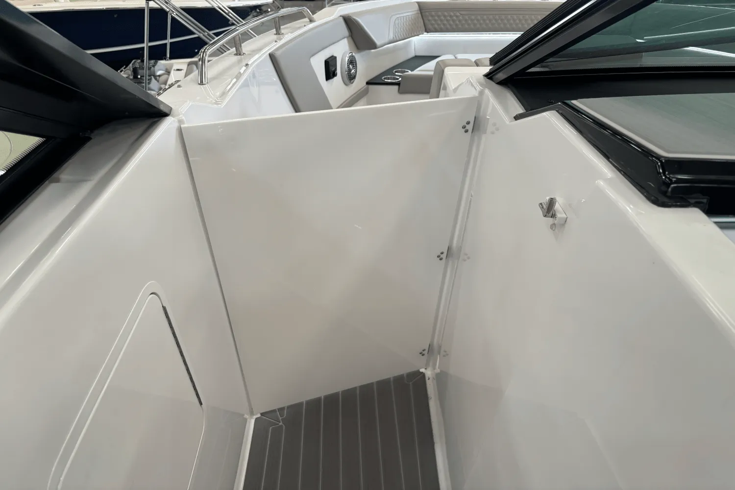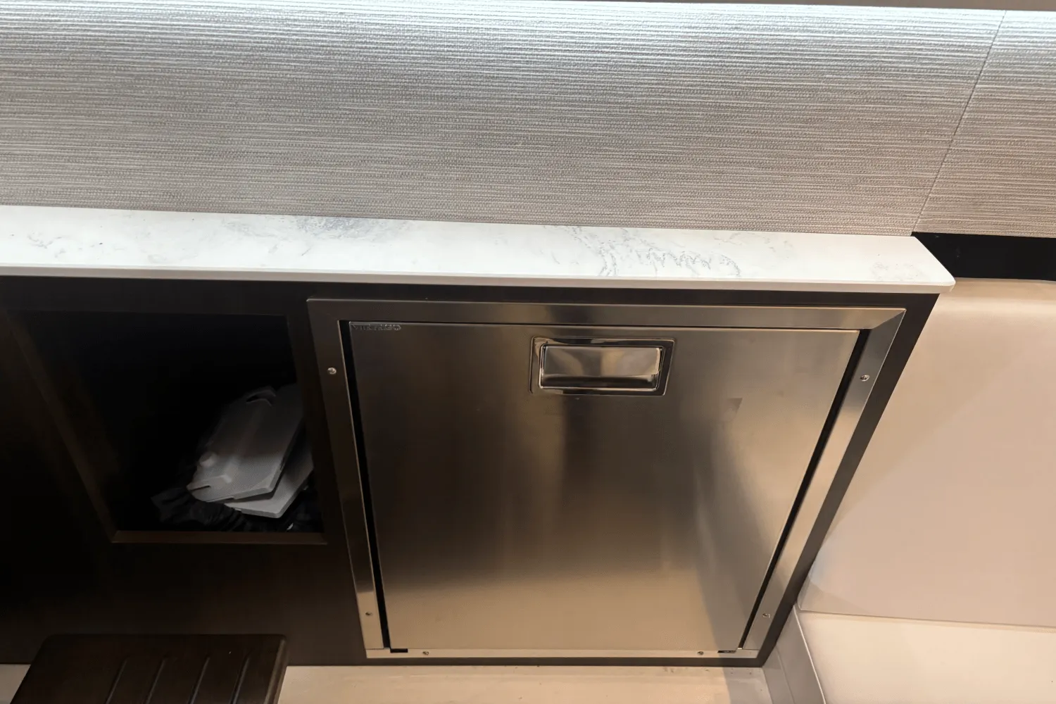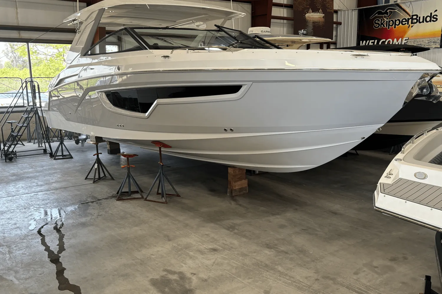 The GLS series continues its powerful, entertainment-centered yacht line with the 34 GLS. The 34 GLS’s cockpit features two cockpit L-shaped seating areas. The portside seating has an adjustable backrest while the larger starboard side seating converts into a large, aft facing sunpad. The lower salon features an aft stateroom, a dinette that converts into a berth, fridge, and microwave.