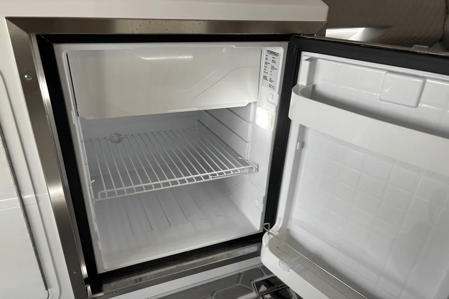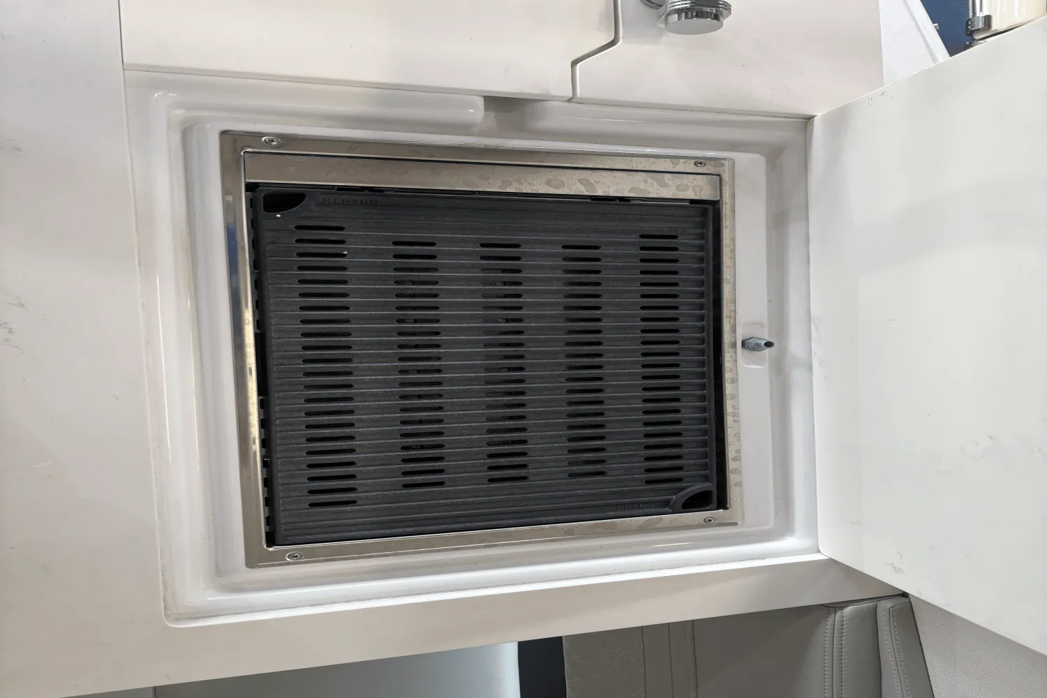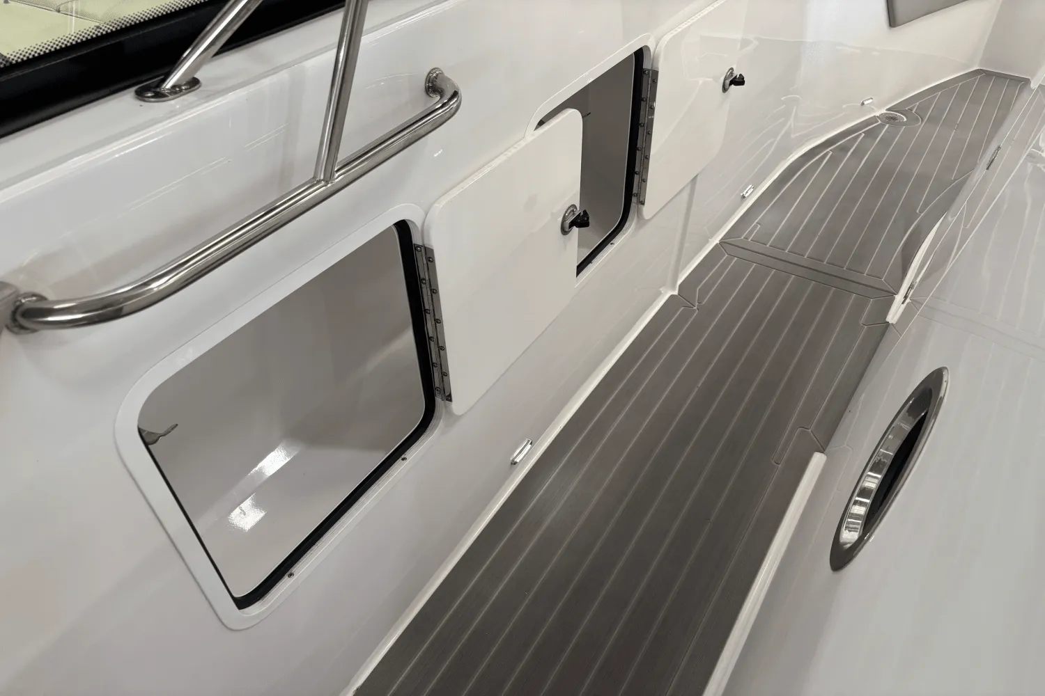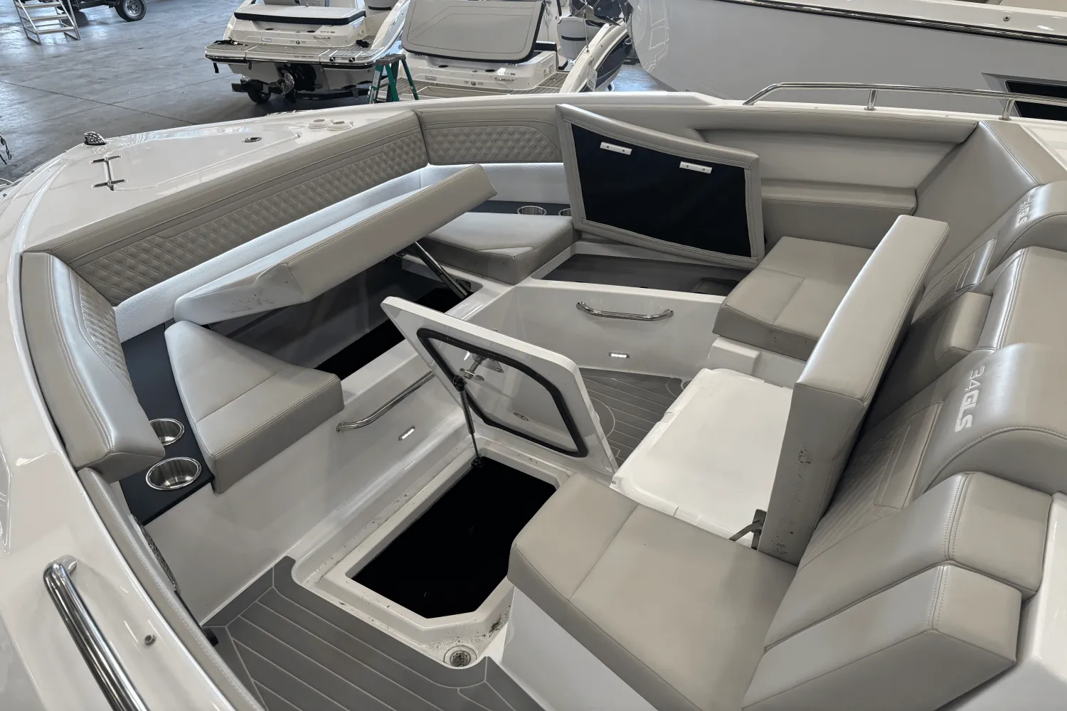 The GLS series continues its powerful, entertainment-centered yacht line with the 34 GLS. The 34 GLS’s cockpit features two cockpit L-shaped seating areas. The portside seating has an adjustable backrest while the larger starboard side seating converts into a large, aft facing sunpad. The lower salon features an aft stateroom, a dinette that converts into a berth, fridge, and microwave.