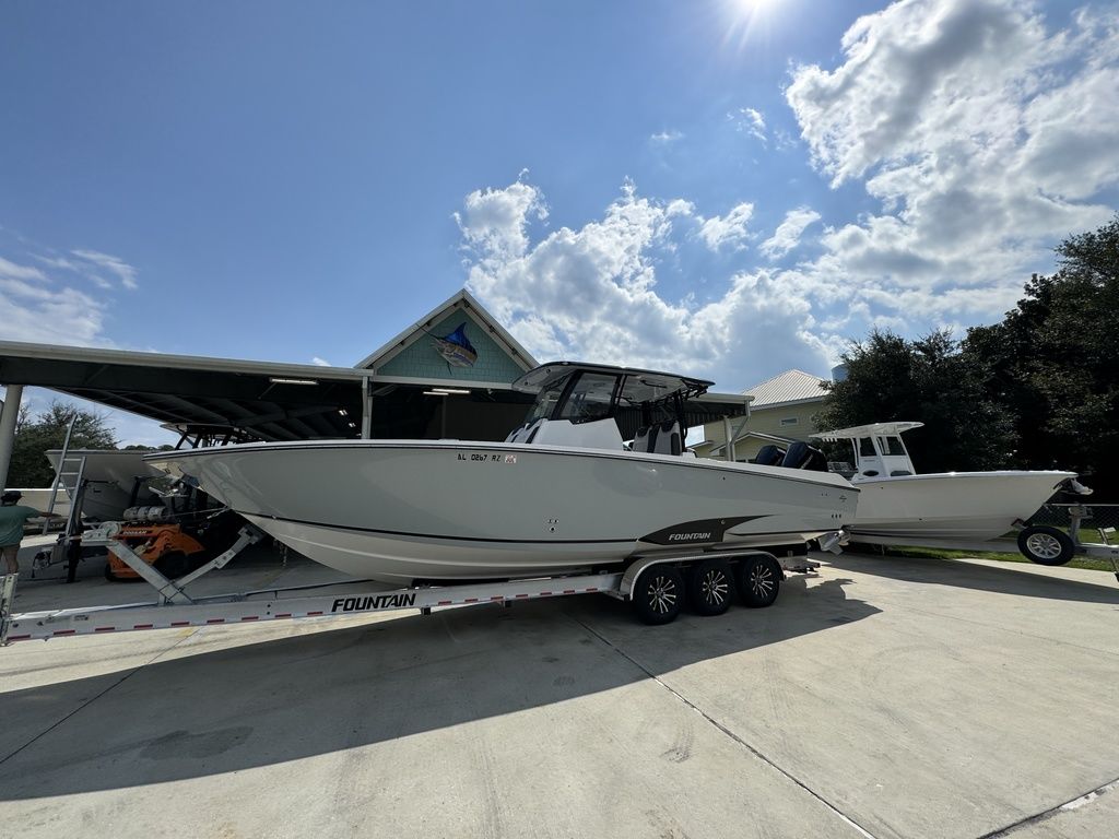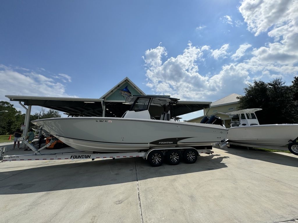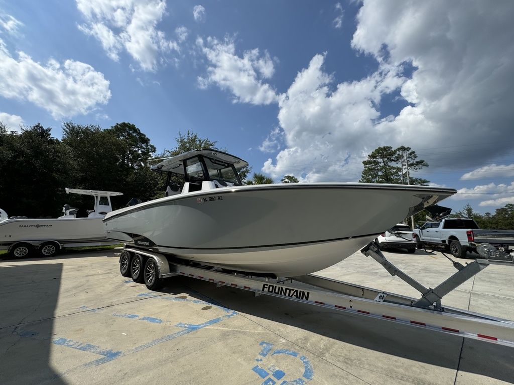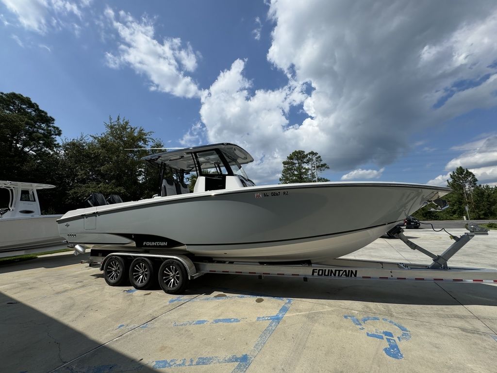 2024 Fountain 32 NX powered with Twin Mercury 400 V10's with ONLY 25 Hours! Trailer Available For Purchase! Contact Matt Dickinson at (334) 612-1329 for more details. This 2024 Fountain 32 NX comes powered with Mercury 400 V10's with ONLY 25 Hours! Trailer Available For Purchase! Some of the installed options include: Twin Garmin 8616 MFDs, Fusion Stereo System with JL Audio Speakers, Aft Bench Seating, Rear Side Entry with Head and Sink, Front Seat with Insulated Storage, U-Shaped Bow seating with Removable Cushions, and a Electronic Windlass Anchor. Trailer available for purchase! For more information on this listing, contact Matt Dickinson at (334) 612-1329.