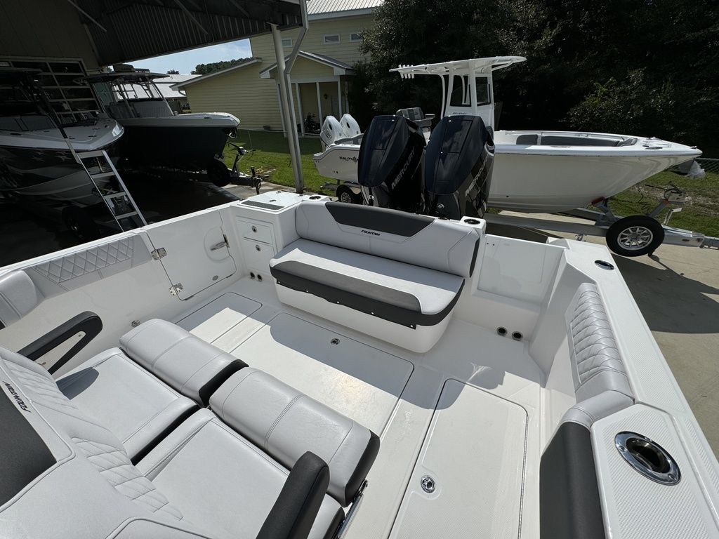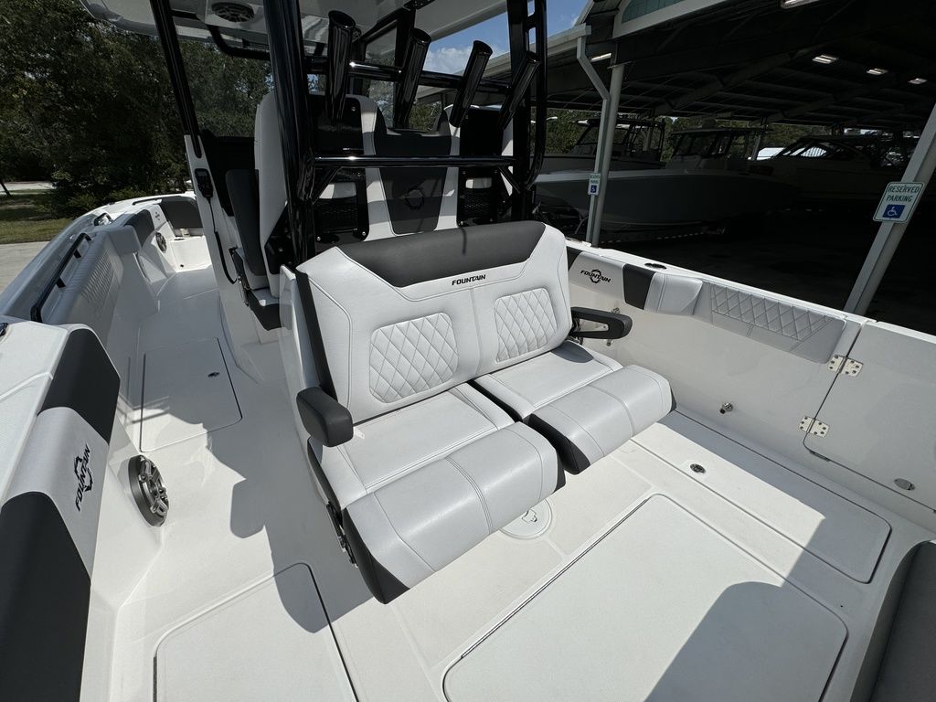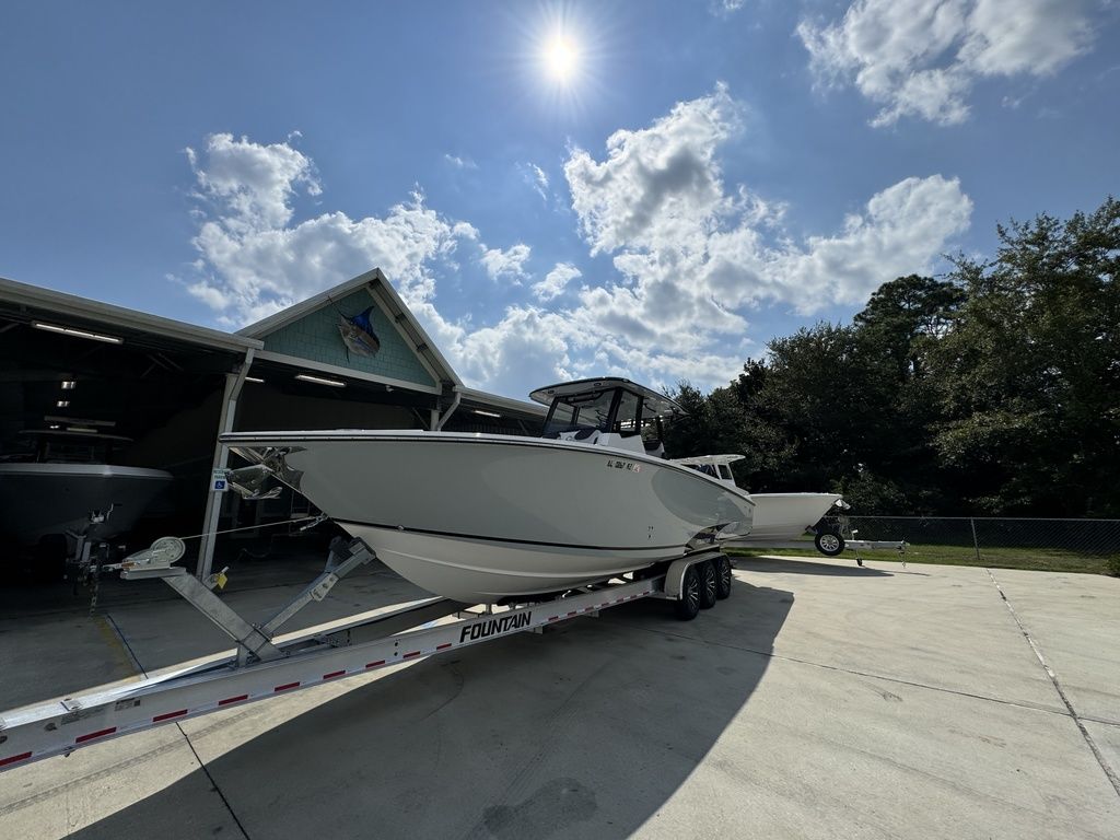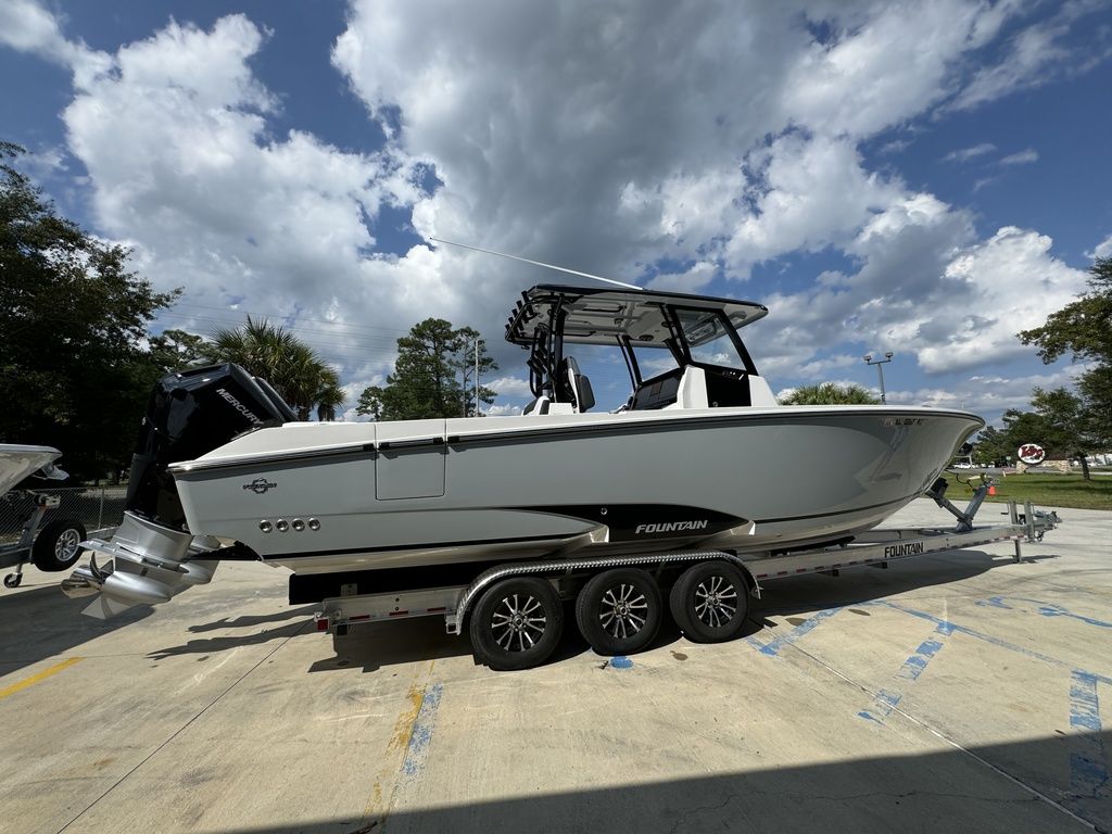 2024 Fountain 32 NX powered with Twin Mercury 400 V10's with ONLY 25 Hours! Trailer Available For Purchase! Contact Matt Dickinson at (334) 612-1329 for more details. This 2024 Fountain 32 NX comes powered with Mercury 400 V10's with ONLY 25 Hours! Trailer Available For Purchase! Some of the installed options include: Twin Garmin 8616 MFDs, Fusion Stereo System with JL Audio Speakers, Aft Bench Seating, Rear Side Entry with Head and Sink, Front Seat with Insulated Storage, U-Shaped Bow seating with Removable Cushions, and a Electronic Windlass Anchor. Trailer available for purchase! For more information on this listing, contact Matt Dickinson at (334) 612-1329.