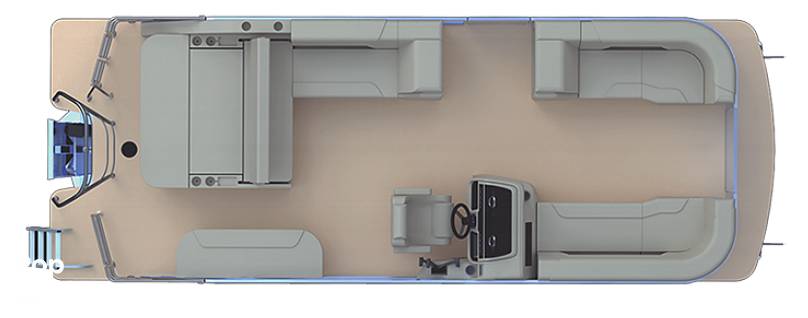 The tritoon is an excellent mix of performance and a stable platform for family adventures and parties on the water. The spacious walk-through deck offers comfortable seating and shaded areas with plenty of places to sunbathe and enjoy your day on the water with family and friends.