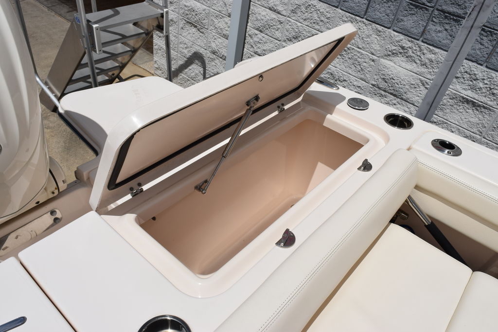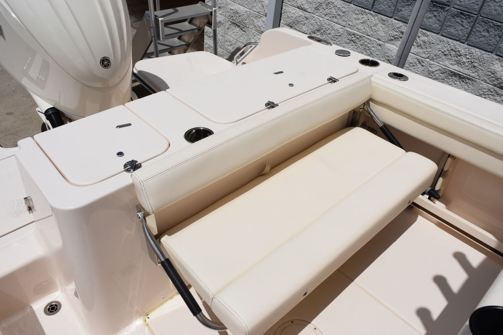 The most feature-rich 23-foot center console, Grady-White’s Fisherman 236 is a superior fishing boat and more family friendly than any competitive models. Standard features that make this boat remarkable include a 15.5-gallon livewell, an oversized enclosed head, and a transom door that makes it easy to board fish or get in and out of the water from the swim platform. Grady’s patented seating designs add comfort for up to 10 passengers. From the bow seating with forward facing foldaway backrests to the foldaway aft bench seat, there’s room for everyone.