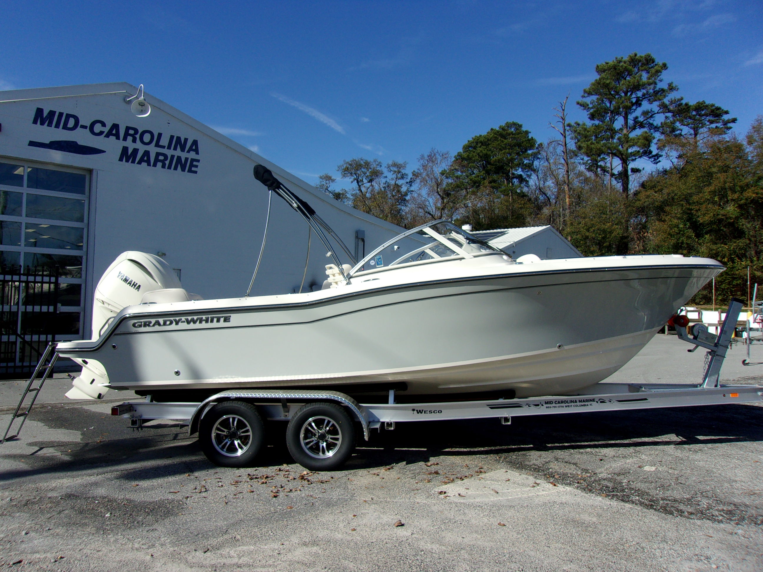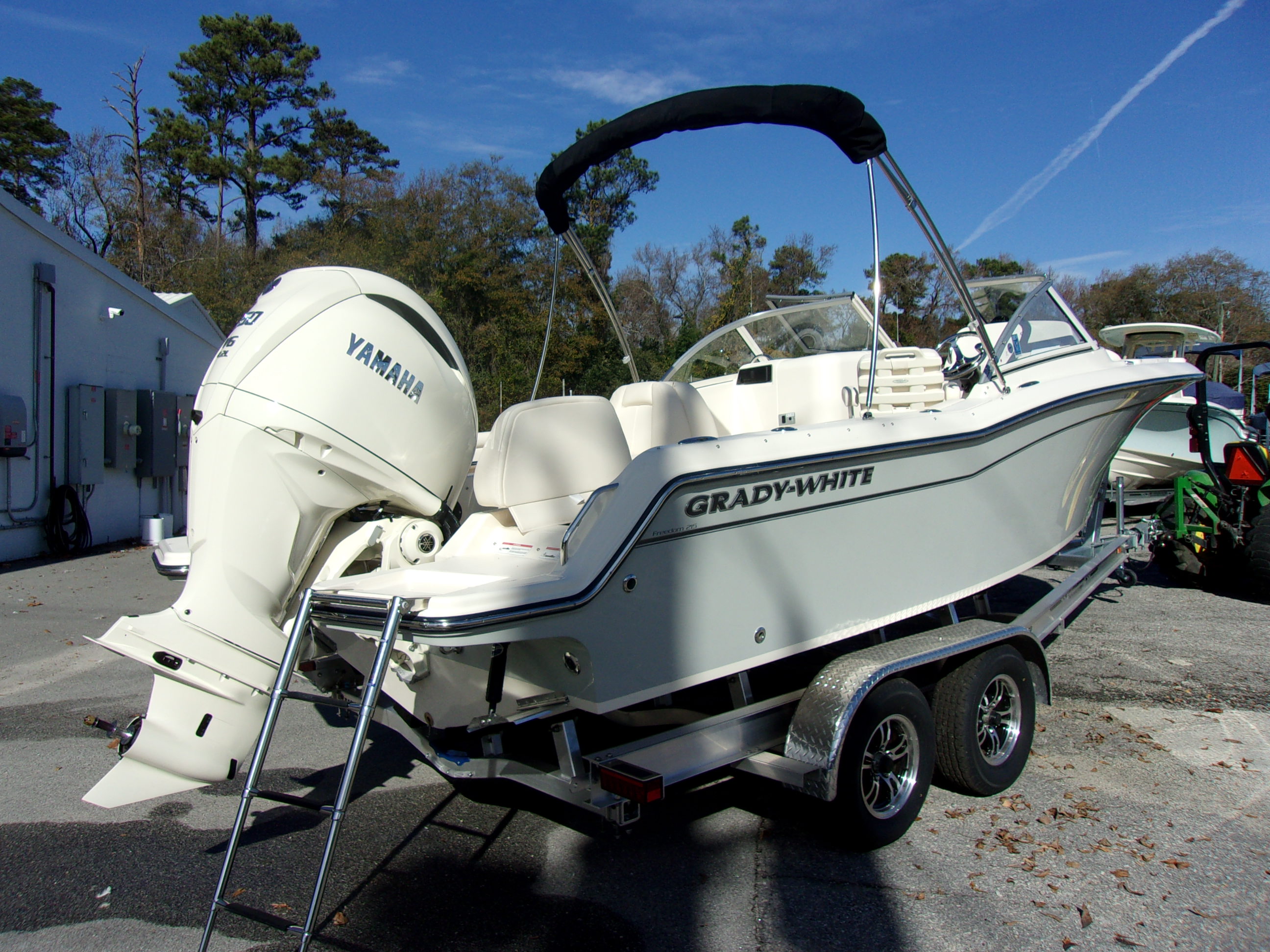 2024 Grady White 215 Freedom with Yamaha F-300 XSB and Wesco tandem axle trailer! Factory options include sleeper port seat, ski pylon, raw water washdown, bow cover and bow cover. Max HP: 250 HP