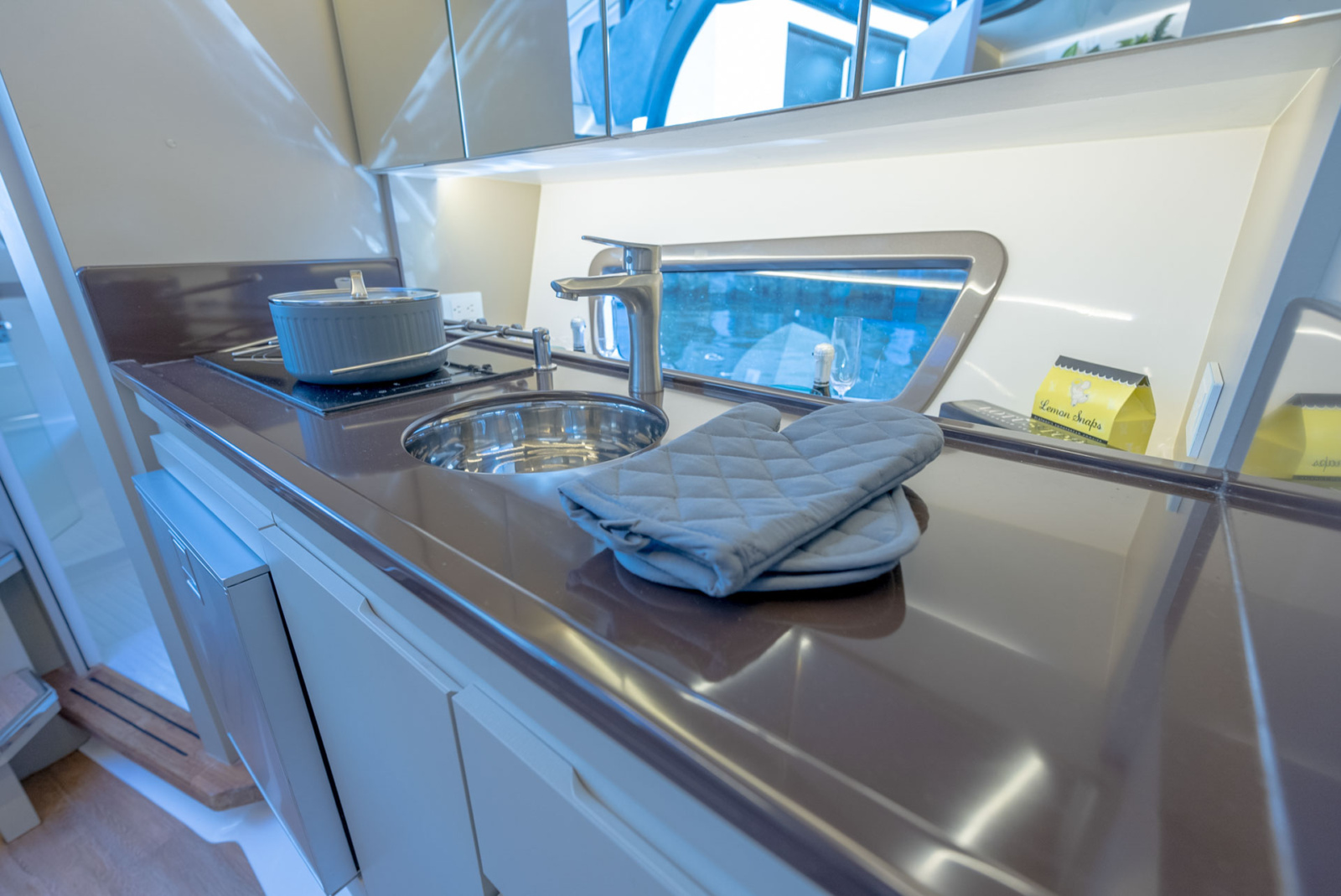 With nearly 43 feet this Yacht has all the space to spend days comfortably at sea.