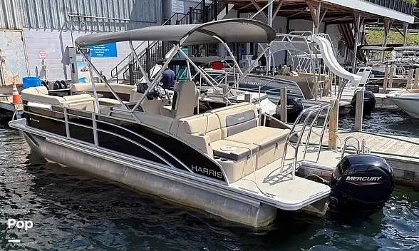 This 2024 Harris 230 Tritoon Boat is ready for fun in the Sun! It is equipped with a Mercury 150 HP four-stroke outboard engine, providing plenty of power for family water sports, heading out to the sandbar, or cruising with family and friends!