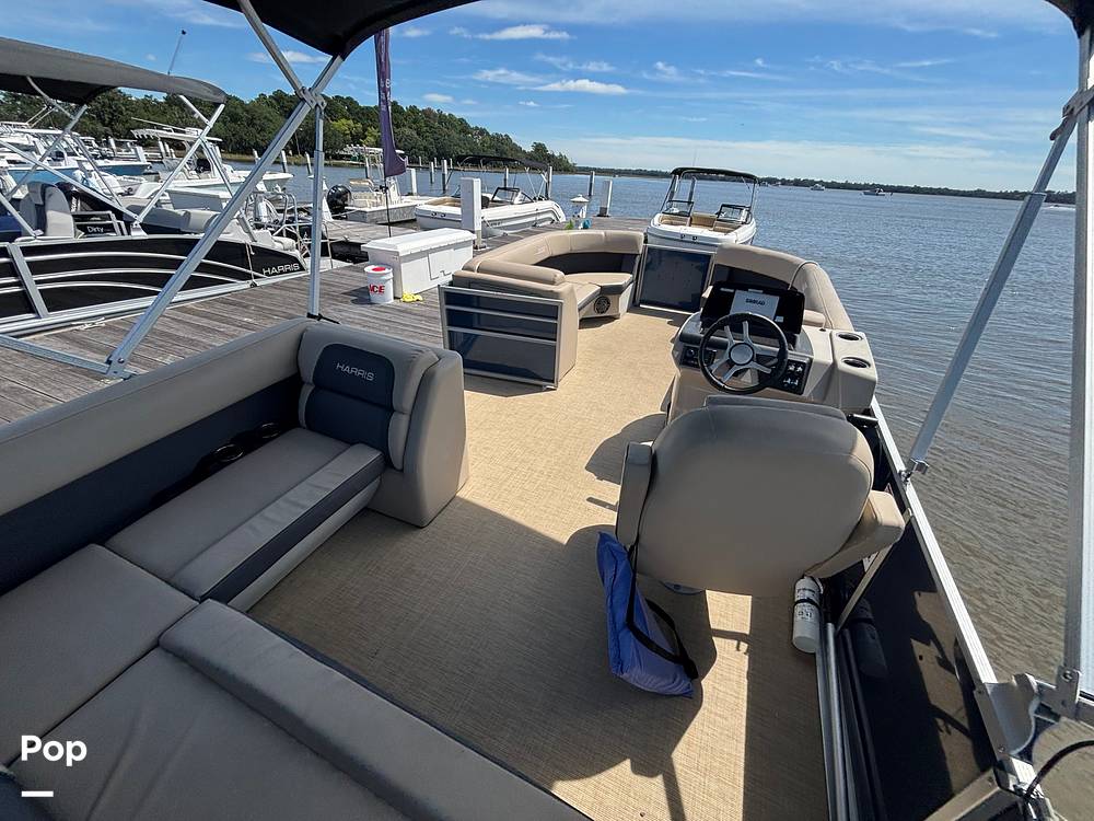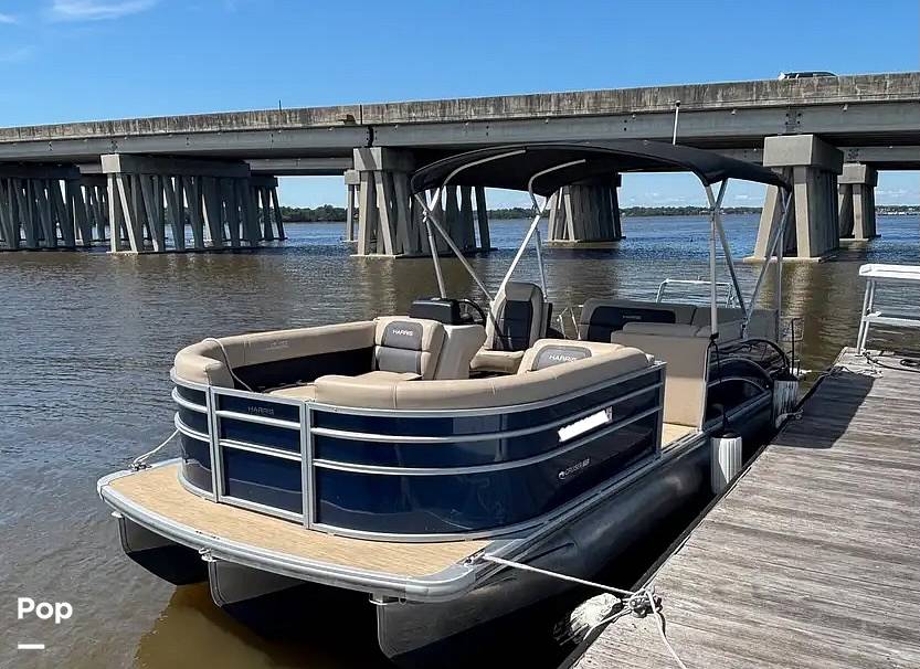 This 2024 Harris 230 Tritoon Boat is ready for fun in the Sun! It is equipped with a Mercury 150 HP four-stroke outboard engine, providing ample power for family water sports, heading out to the sandbar, or cruising with family and friends.