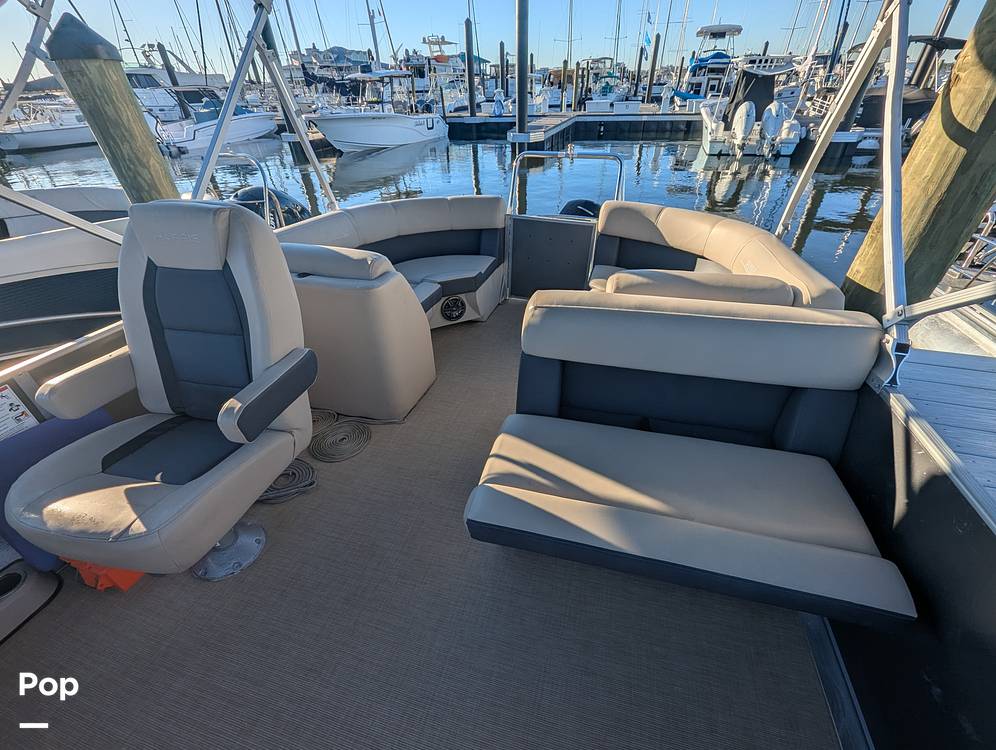 This 2024 Harris 230 Tritoon Boat is ready for fun in the Sun! It is equipped with a Mercury 150 HP four-stroke outboard engine, providing ample power for family water sports, heading out to the sandbar, or cruising with family and friends.