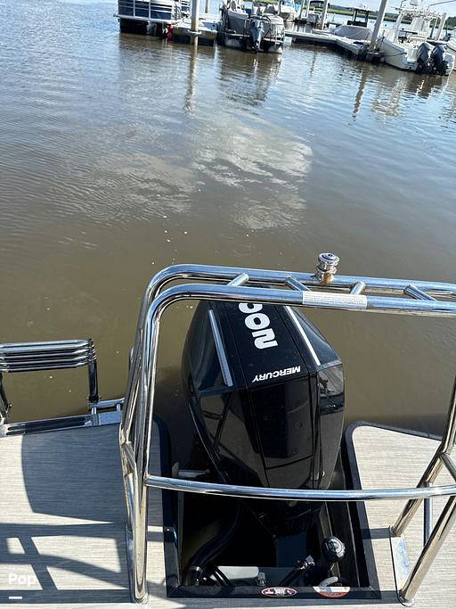 The efficient and powerful Mercury 200 outboard powers this 2024 Harris effortlessly through the water and to your destination.
