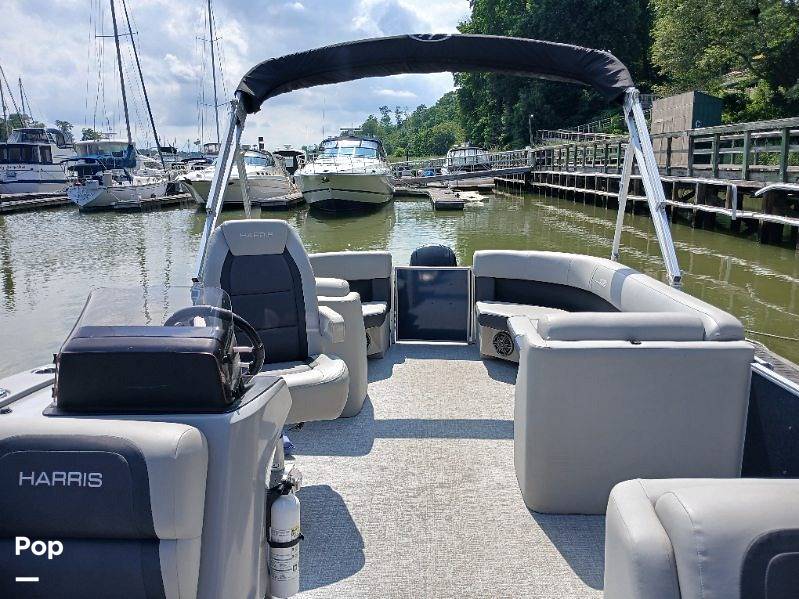 2024 Harris HCX23 Pontoon powered by a 115HP Mercury and 10 person capacity!