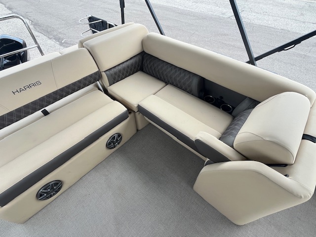 Premium Materials: Crafted with the finest materials, every detail of the Sunliner 210 exudes quality and durability. From the upholstery to the flooring, Harris ensures a boat that looks as good as it feels.